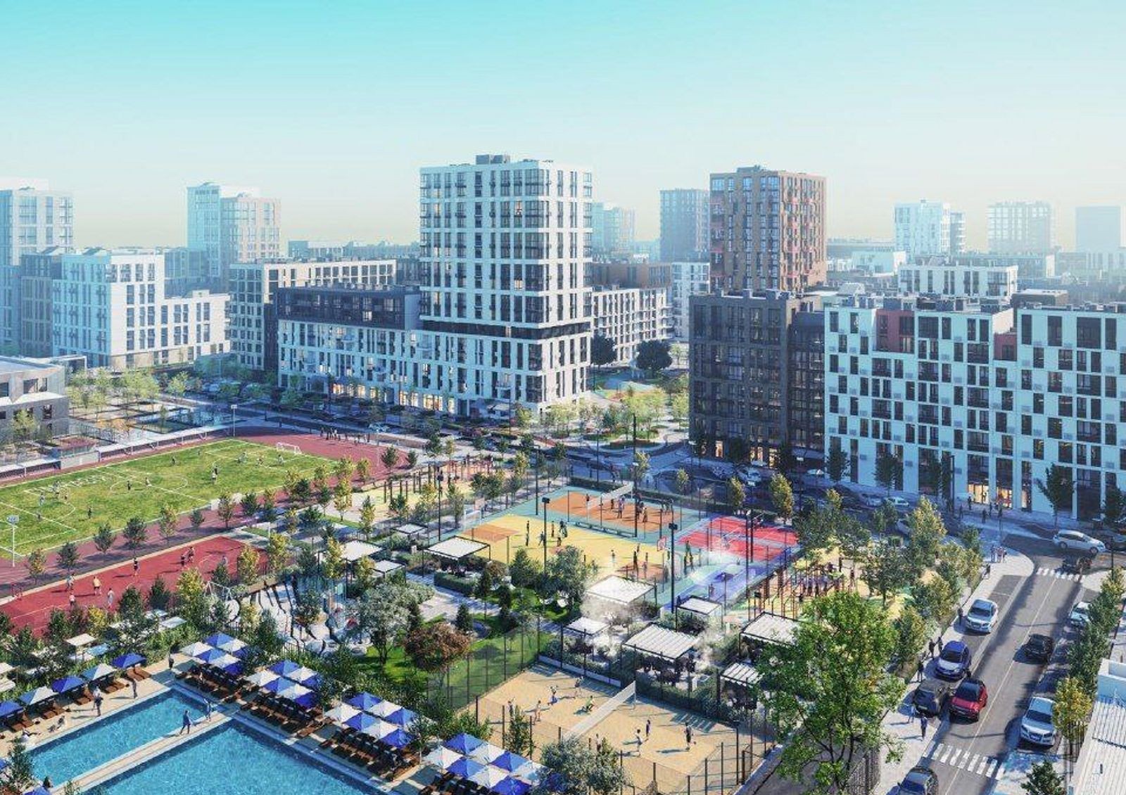 Предусмотрено открытие магазинов, почты, отделения банка, ресторанов, кафе, аптек и многого другого. Строится спортивная база с теннисными кортами, площадками для игры в баскетбол, волейбол и футбол, раздевалки для спортсменов и зоны отдыха для болельщиков.