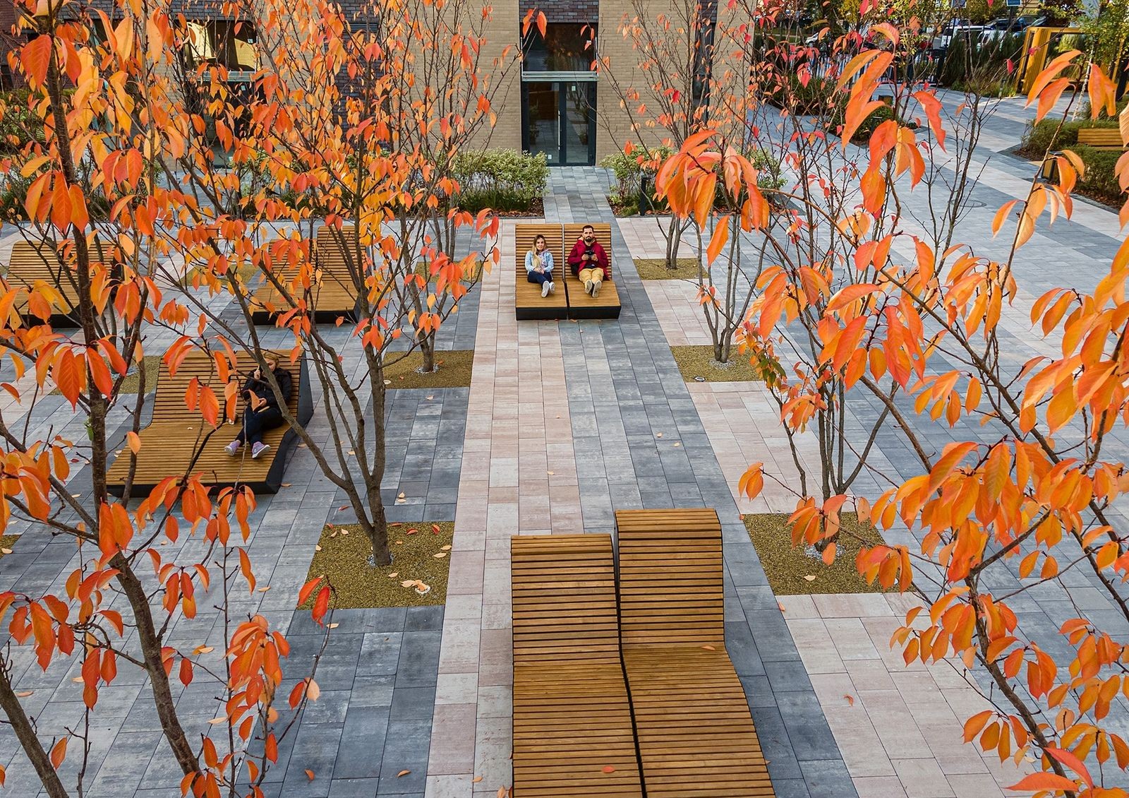 На территории комплекса в каждом квартале есть пешеходная зона с участками для досуга. Застройщик сохранил тенистую аллею с высокими взрослыми елями, переходящую в трехкилометровые кольцевые велодорожки. Сооружается два сухих фонтана, которым так радуются дети в жаркий летний день. Для проведения пикников специально оборудуется отдельный участок.