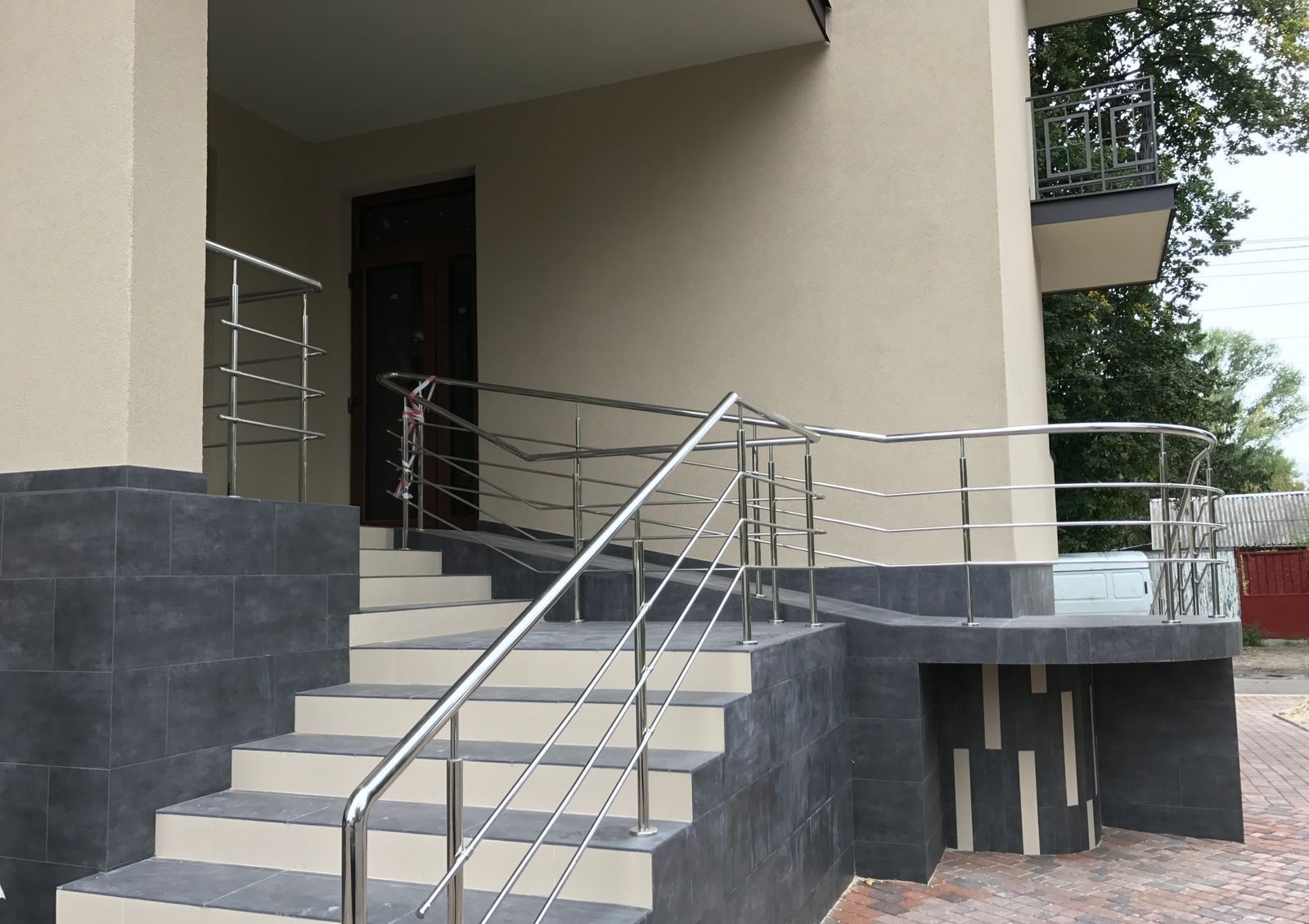 Возле здания предусмотрены парковочные места, строится подземная парковка, детская площадка и обустраивается место для отдыха. Территория огорожена и охраняется.