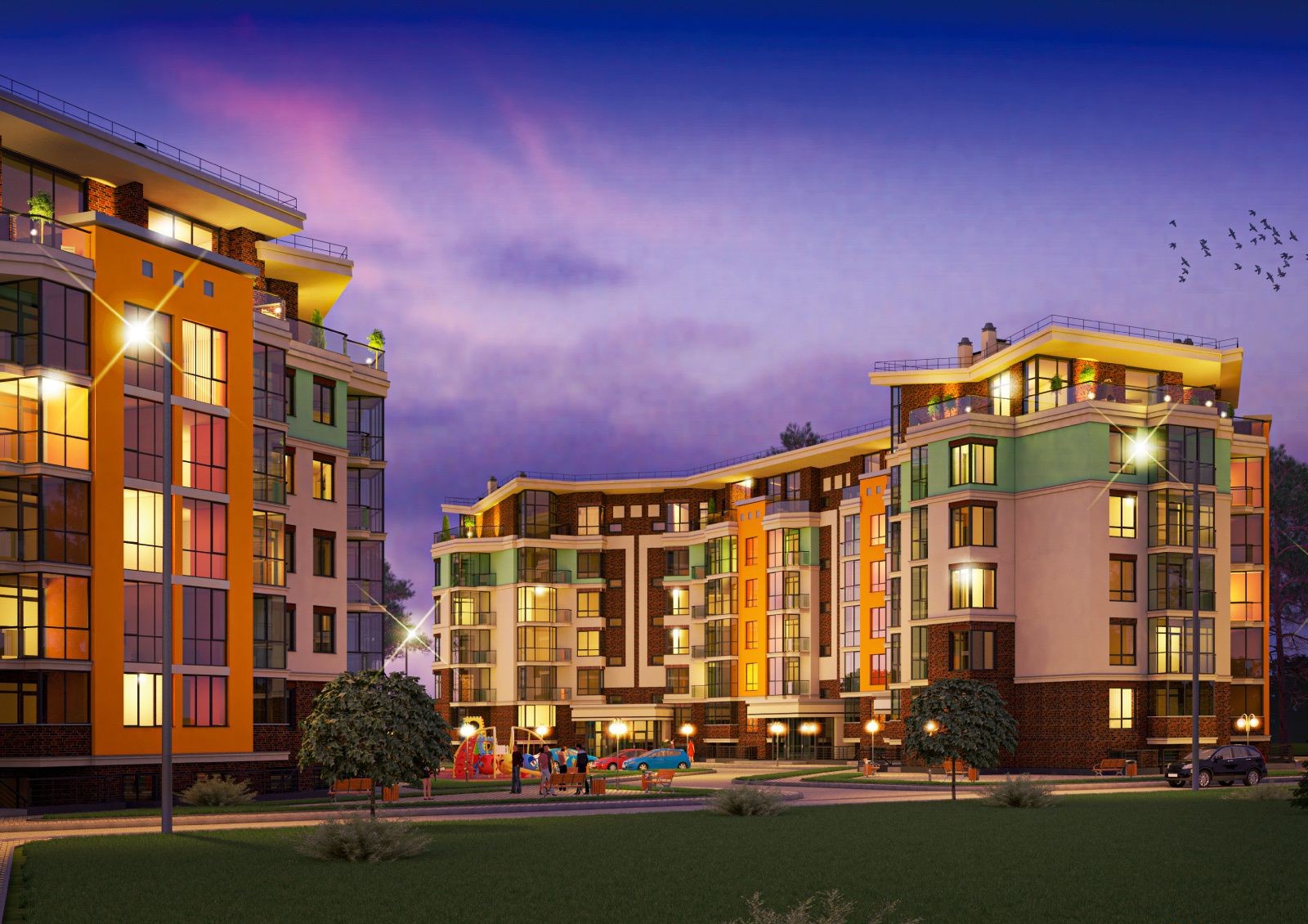 Планировки квартир – светлые, просторные и комфортабельные со стандартной комплектацией, панорамным остеклением, индивидуальным отоплением. Застройщик предлагает жилье с 1, 2, 3 комнатами. Сам комплекс состоит из четырех 5-этажных домов, построенных по монолитно-каркасной технологии. Они органично вписываются в природную среду ярким и креативным дизайнерским фасадом. Главное достоинство жизни в этом месте – тишина, покой, уют, чистый воздух и живописная природа вдали от городской суеты.