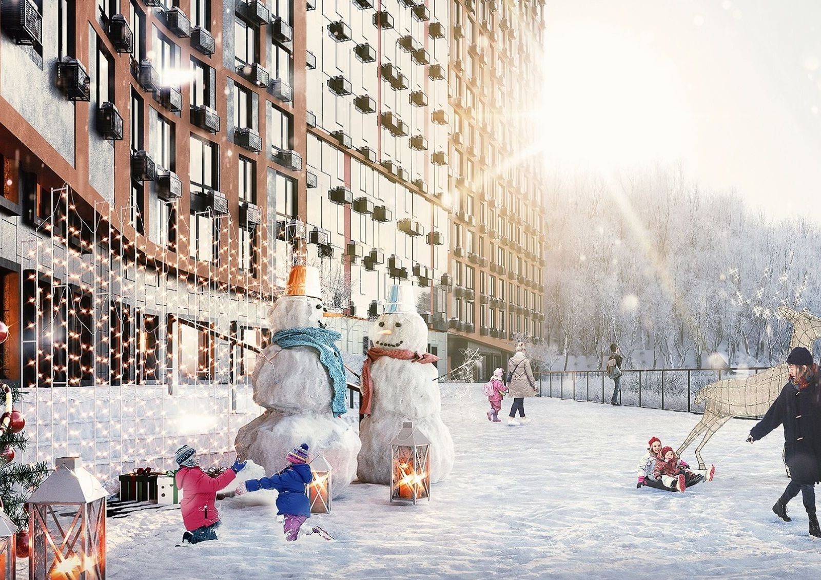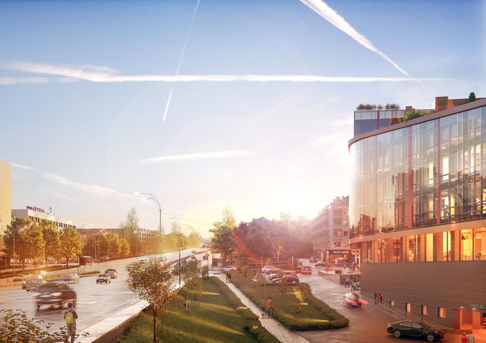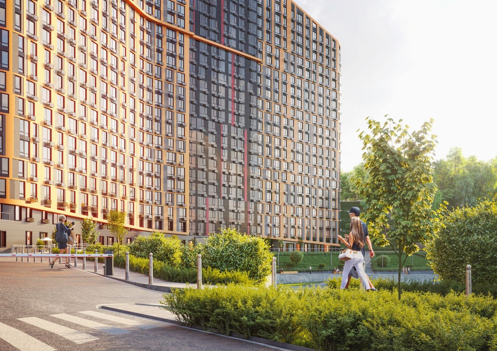 Внутренний двор комплекса будет недоступен для проезда автомобилей, поэтому жильцы смогут спокойно гулять по обустроенным площадкам и зеленым зонам отдыха. Также в проект входит обустройство набережной вдоль озера Глинка, ведь небольшое озеро во дворе — уже редкость.