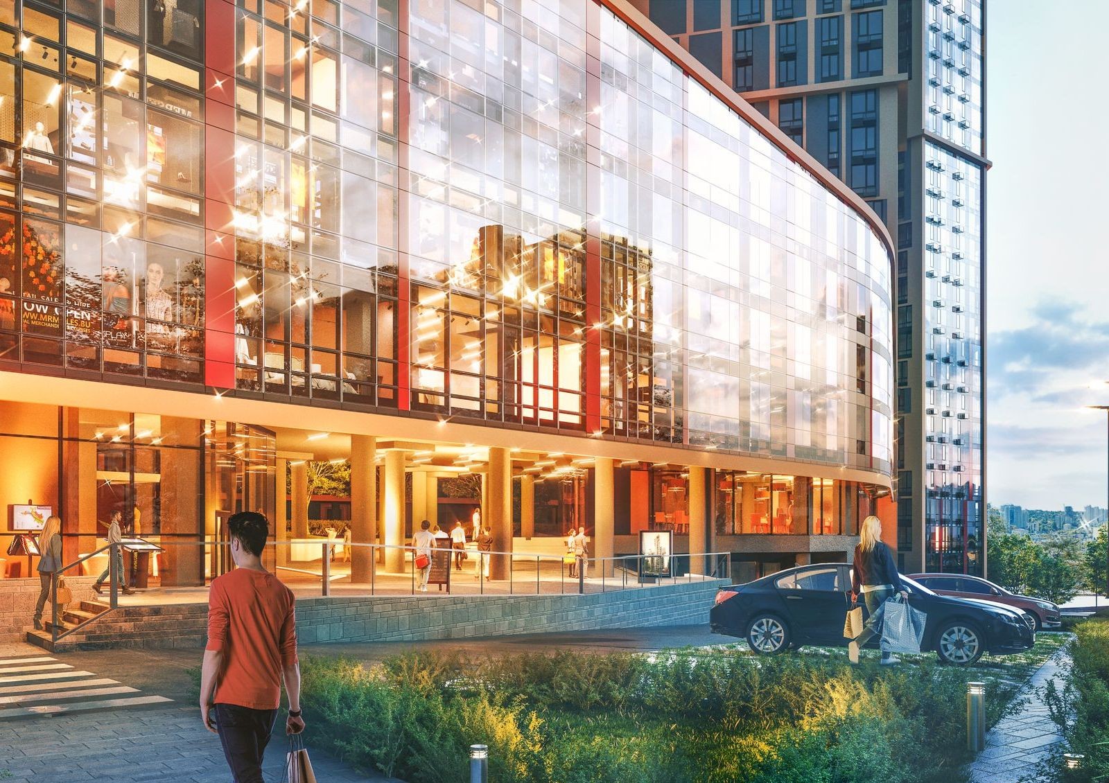 собственный торговый центр на первых этажах одной из башен