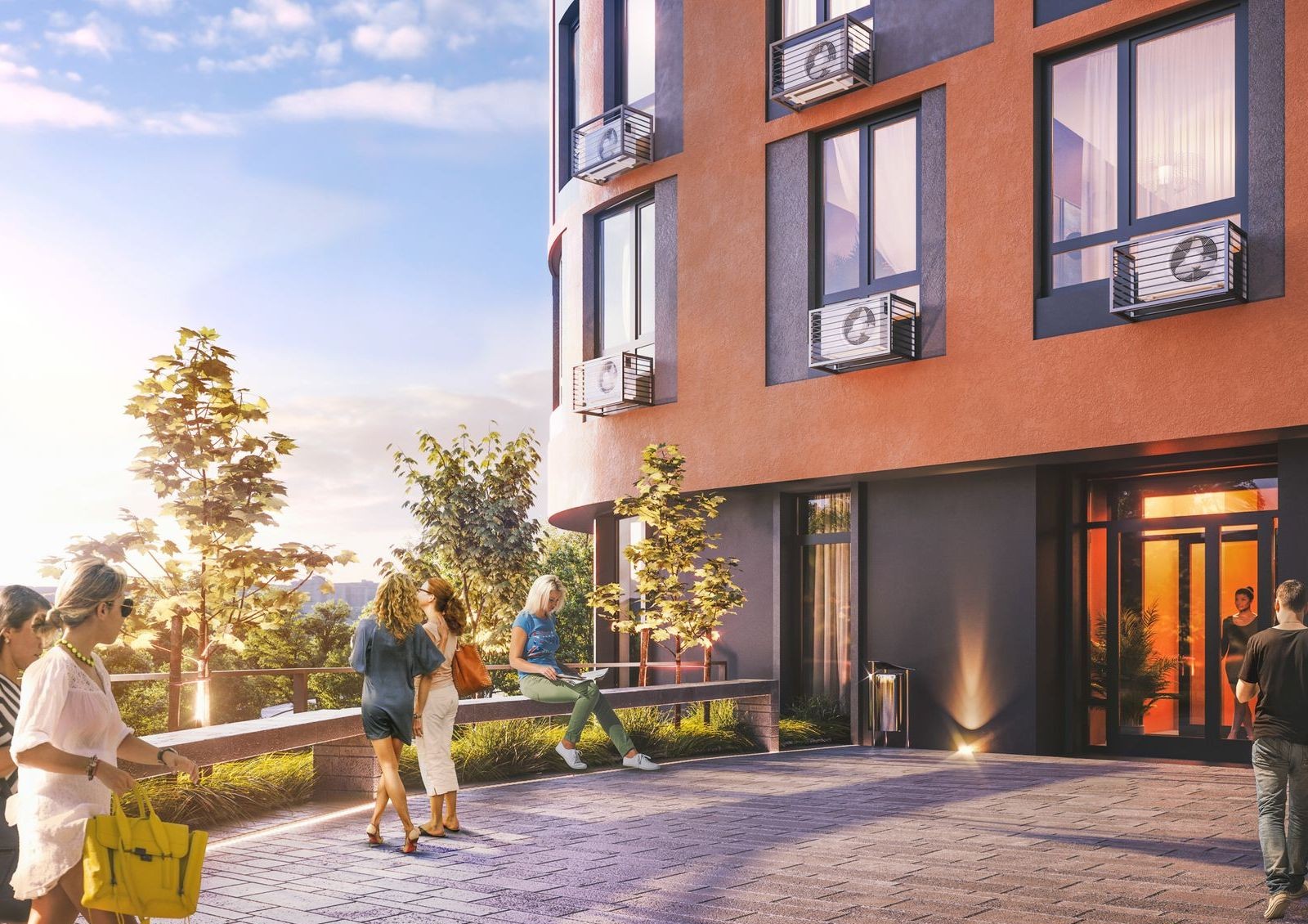 Позаниматься йогой можно будет на внутреннем дворе комплекса, а сходить на тренировку с тренером через дорогу в спортивные клубы «Ваш Тренер», Kiev Sport Club, в FitCurves или Sport Plaza.