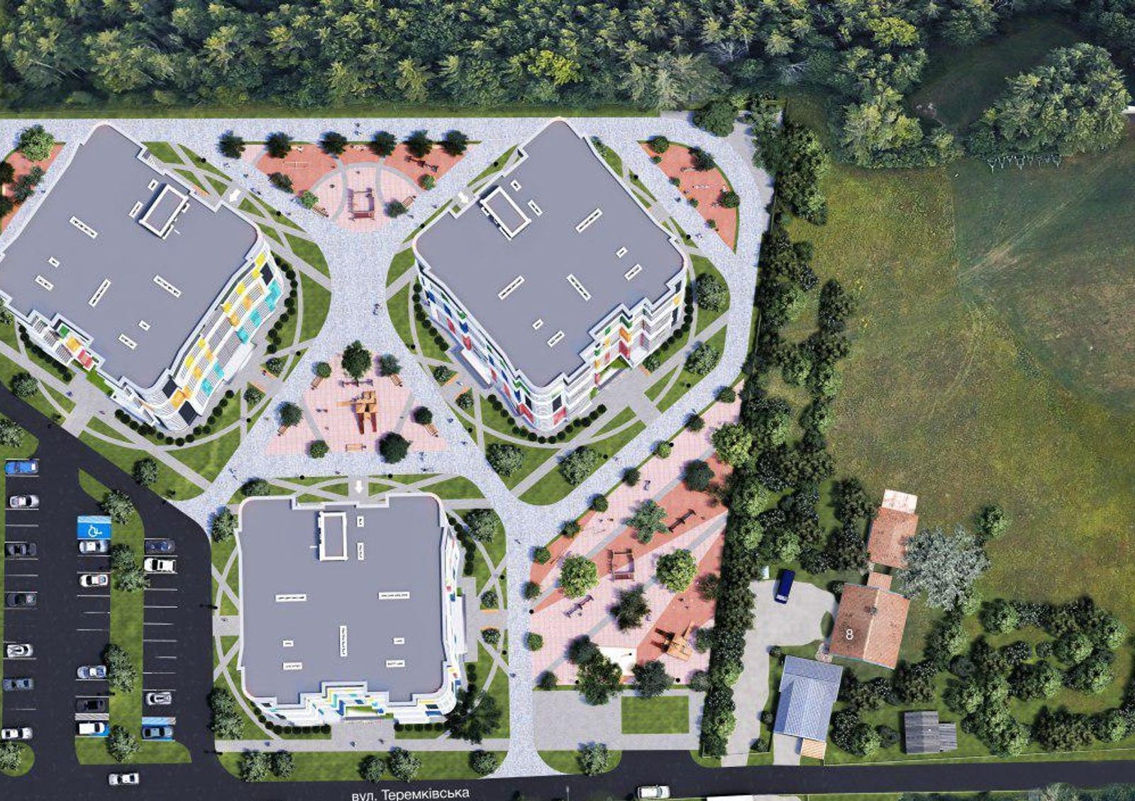 Теремки-3 не долго будут оставаться пустырями среди частного сектора — «Абрикосовый» один из тех комплексов, который будет представлять будущее района. Согласно плану развития, Теремки-3 будут преобразованы в полноценный жилой район с новыми домами, школами, детскими садами, поликлиниками и диагностическими центрами. Но несмотря на новую застройку, парк Урочище Теремки будет сохранен и станет зеленым уголком нового района.