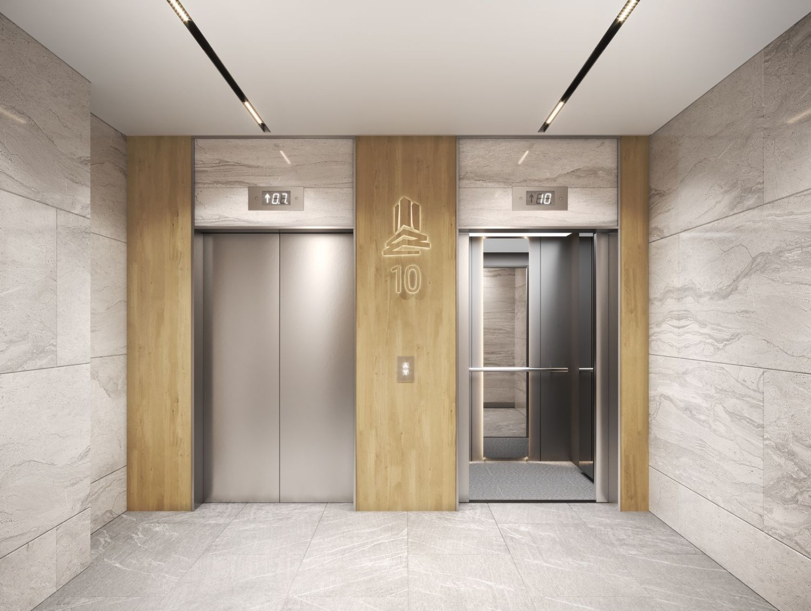 Жилая часть комплекса начинается с 5-го этажа — на 10 жилых этажах запроектирована 71 квартира-студия, а на последних этажах есть двухуровневые пентхаусы с панорамными окнами и собственными лаунж-террасами на крыше.