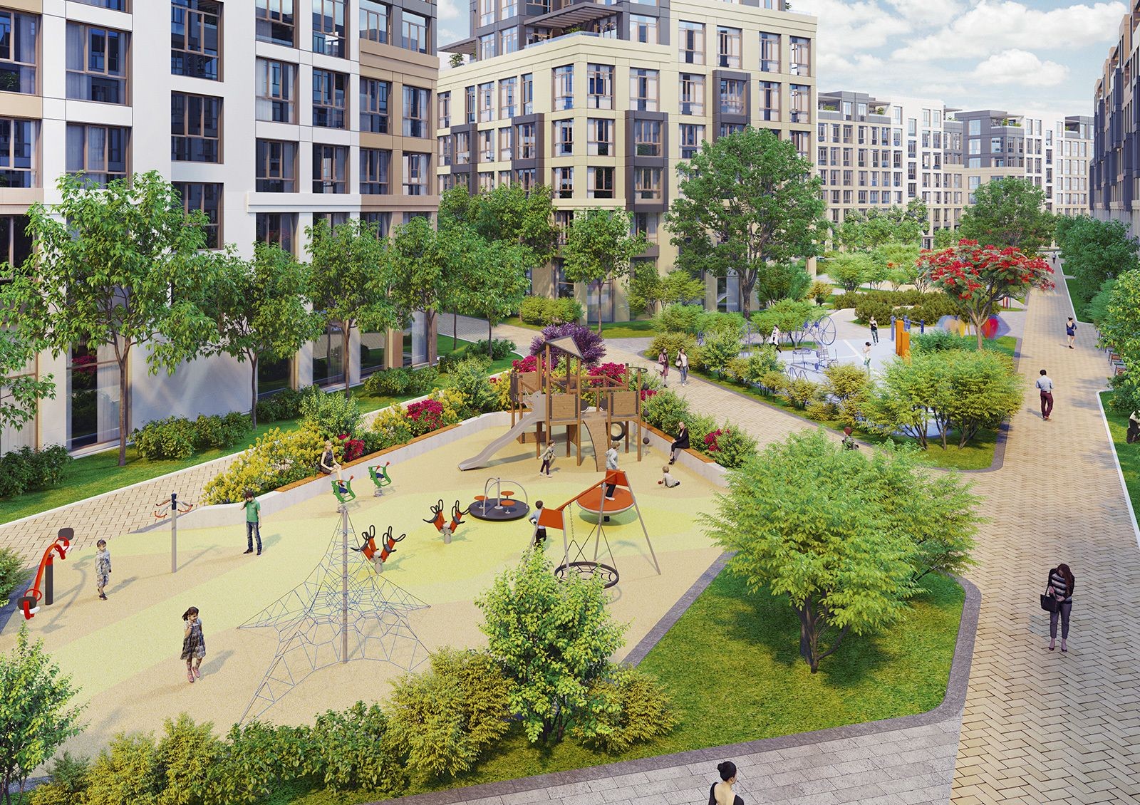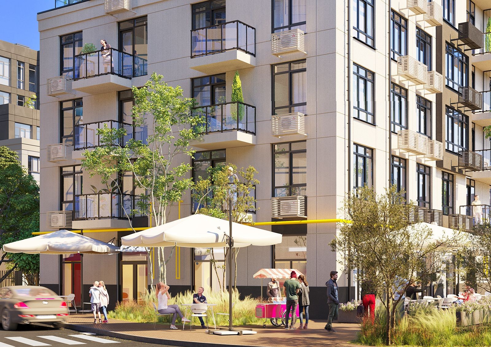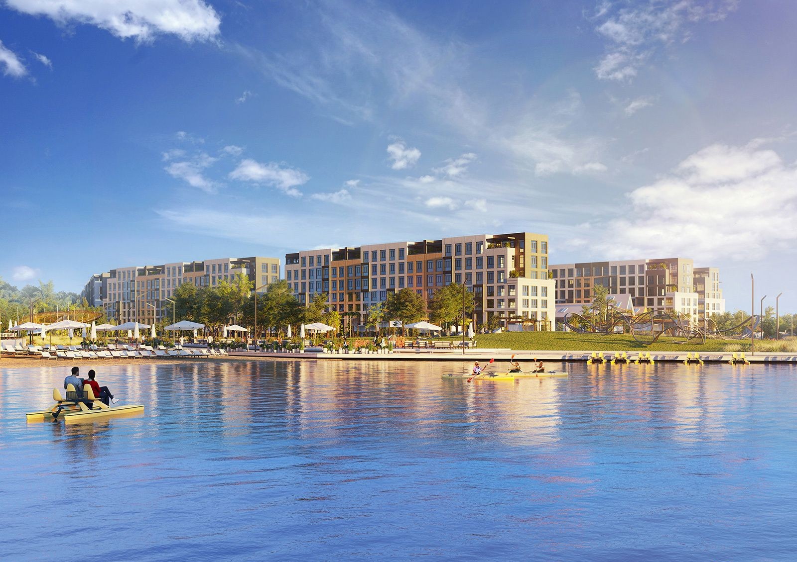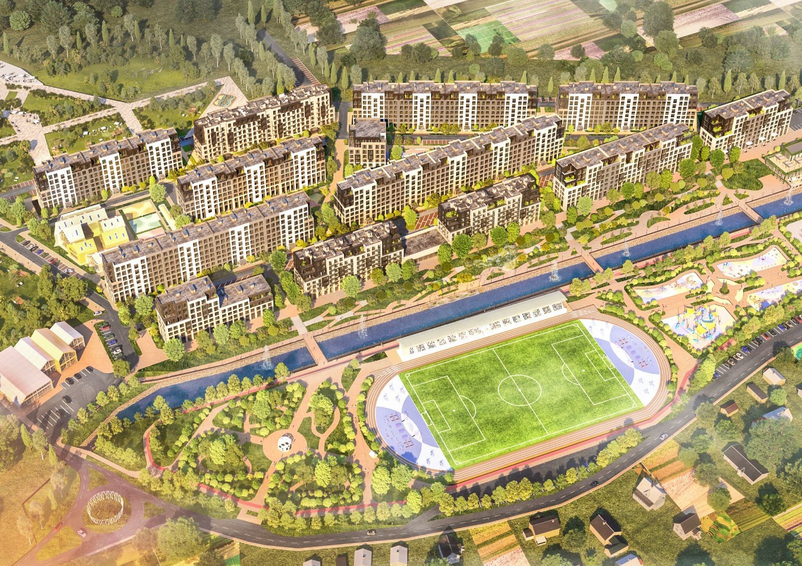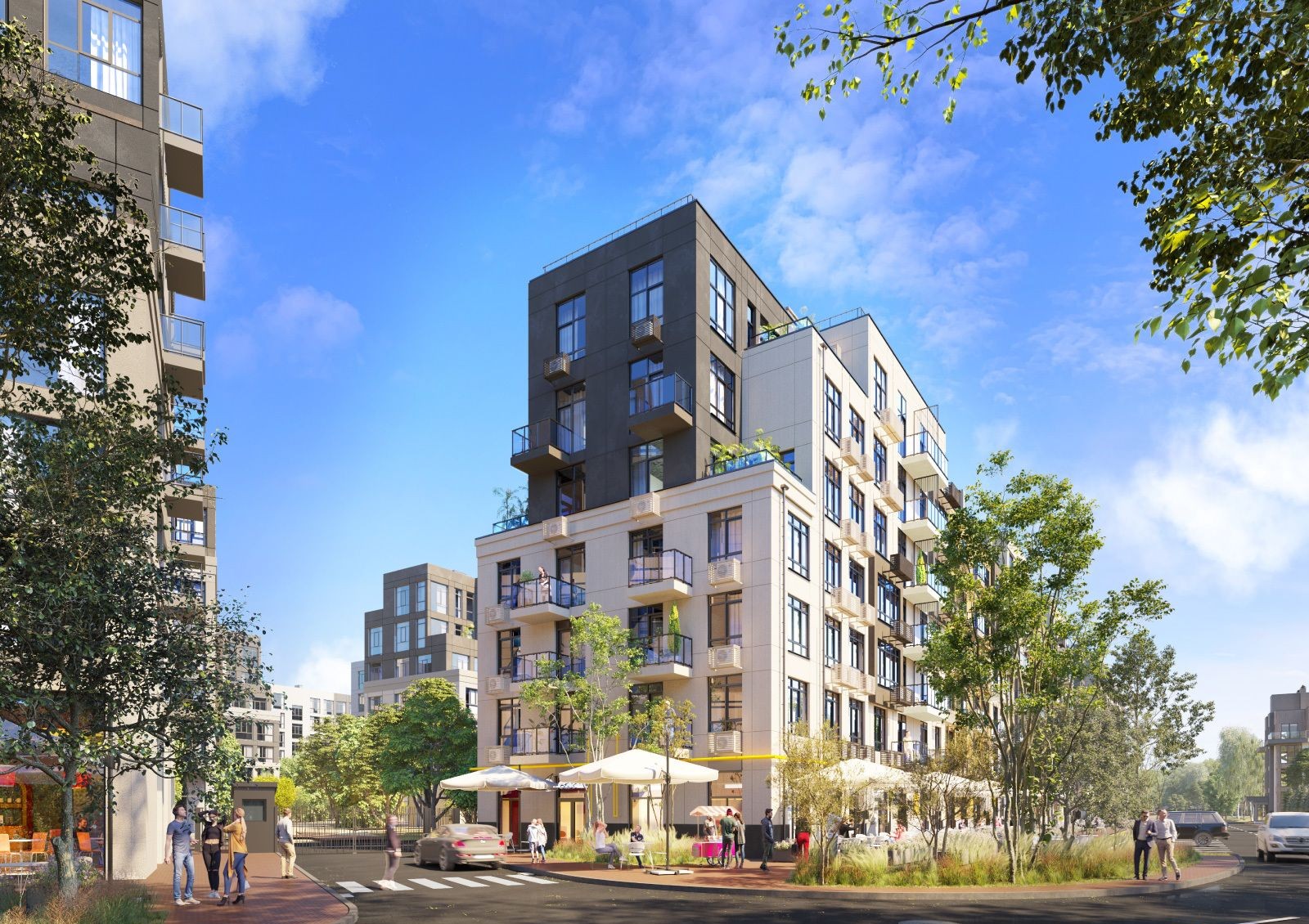 Чтобы жителям не приходилось покидать комплекс, проектом предусмотрено развитие собственной инфраструктуры: построят торговый центр, спортивный комплекс, общественный центр и детский садик на 120 мест.