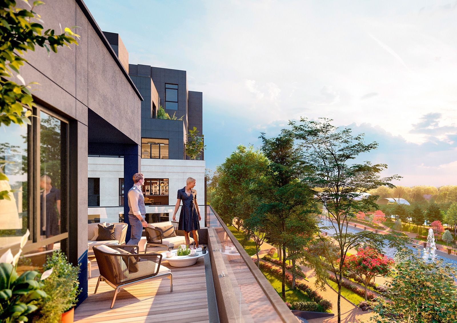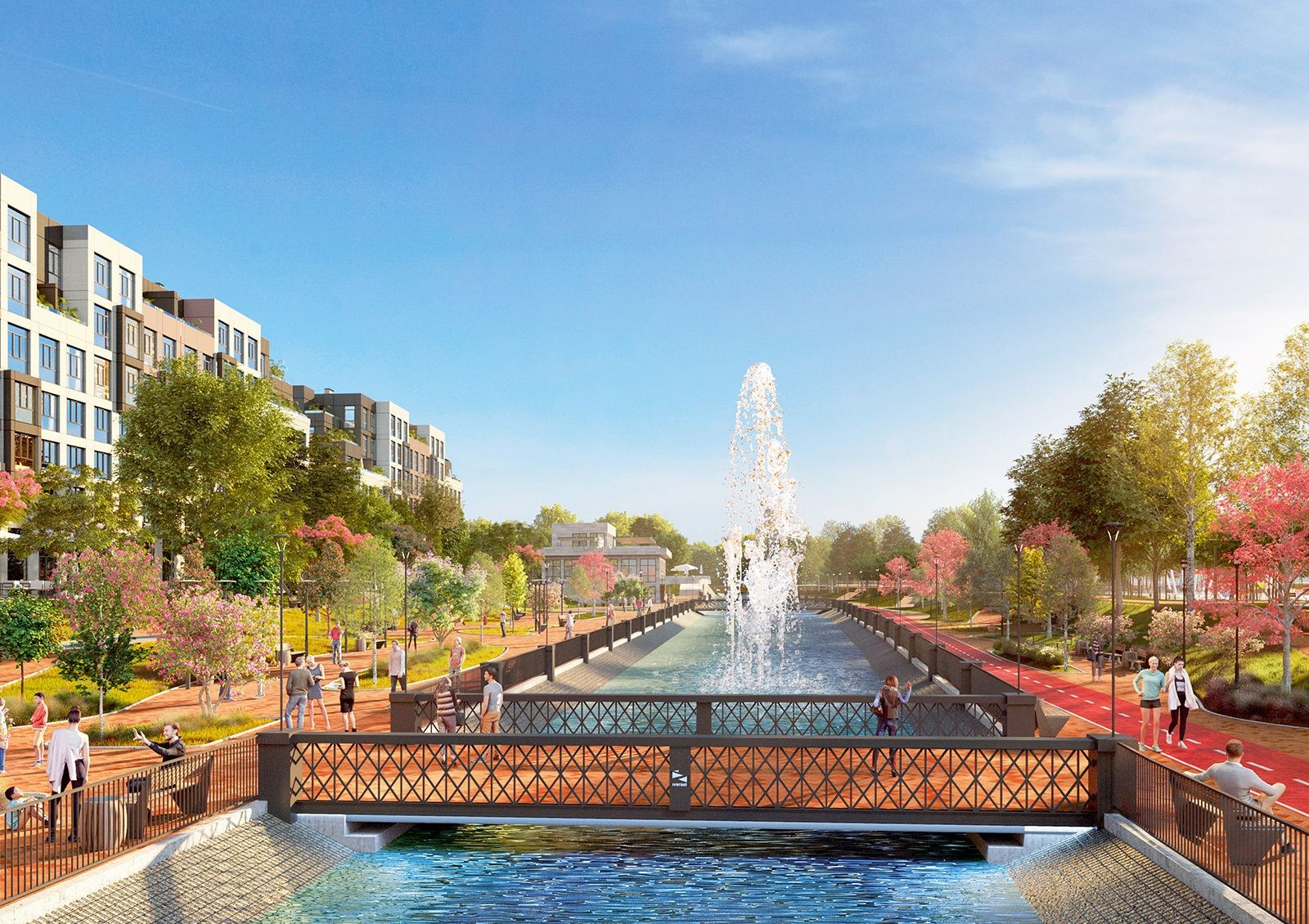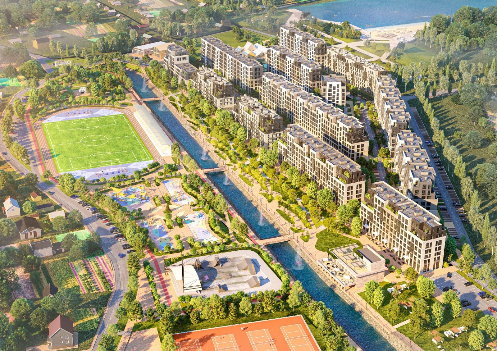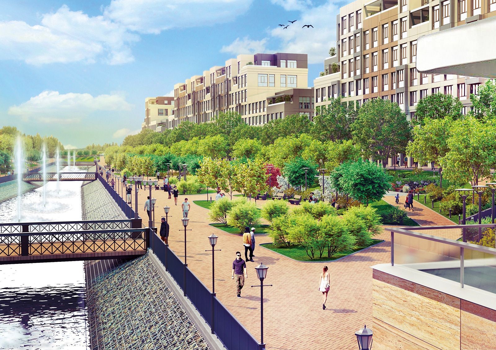 Идея проекта Riverside — создание уютного загородного комплекса, интегрированного в эко-систему пригорода Киева.Территория комплекса будет напоминать парк благодаря местам для отдыха, прогулочным аллеям и водному каналу с системой мостиков. Также для жителей комплекса будет обустроена променада вдоль канала с кафе, рестораном и пляжной зоной.