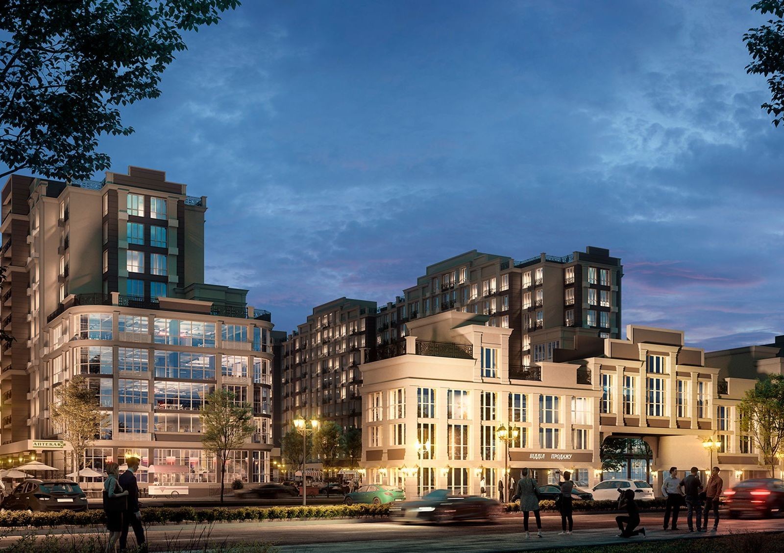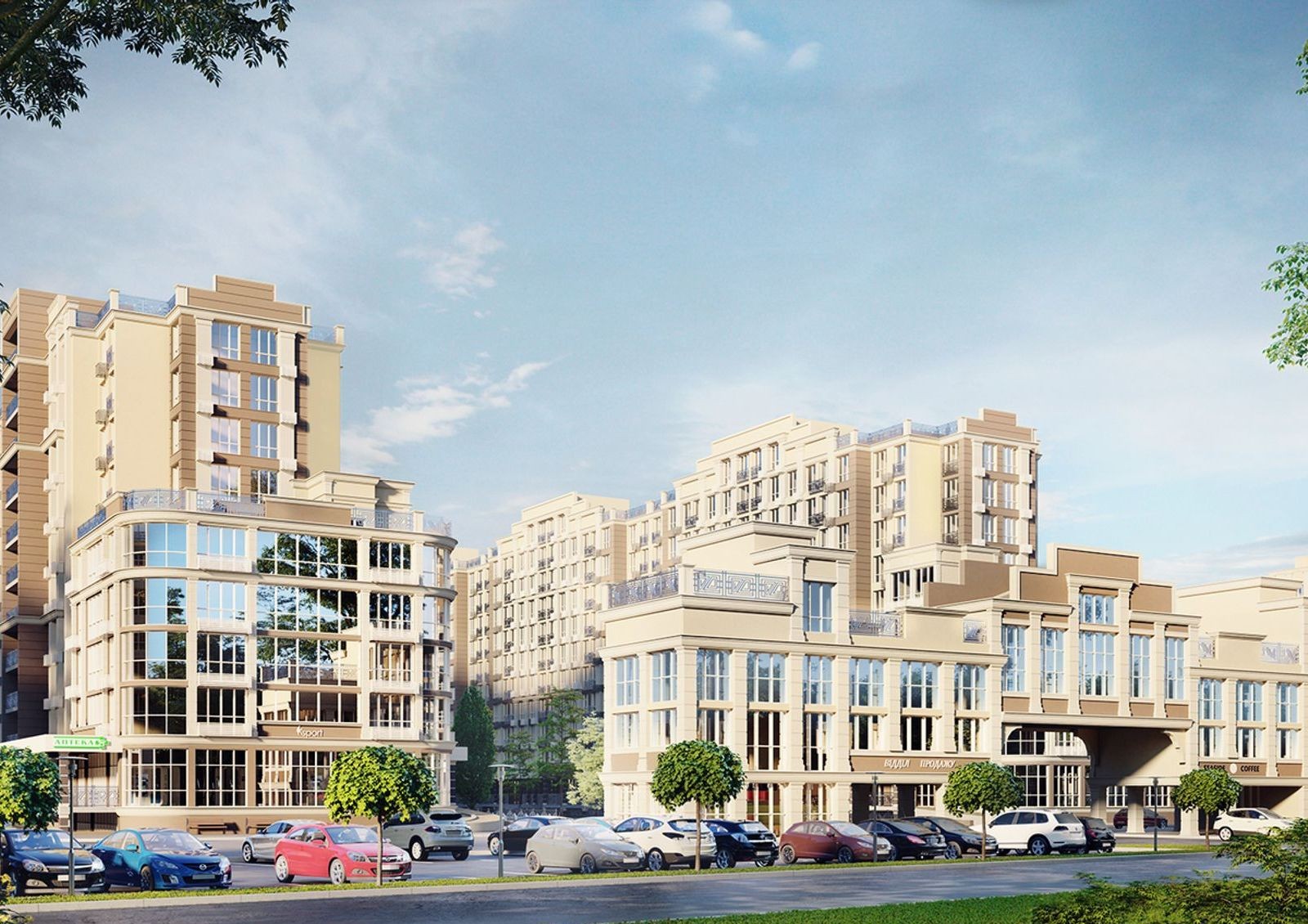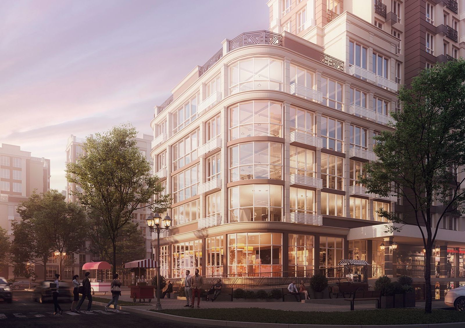 ЖК «Благород» создает все возможности для ведения бизнеса. Первые этажи комплекса и пристройки отводятся под коммерческие помещения и торговые площадки.