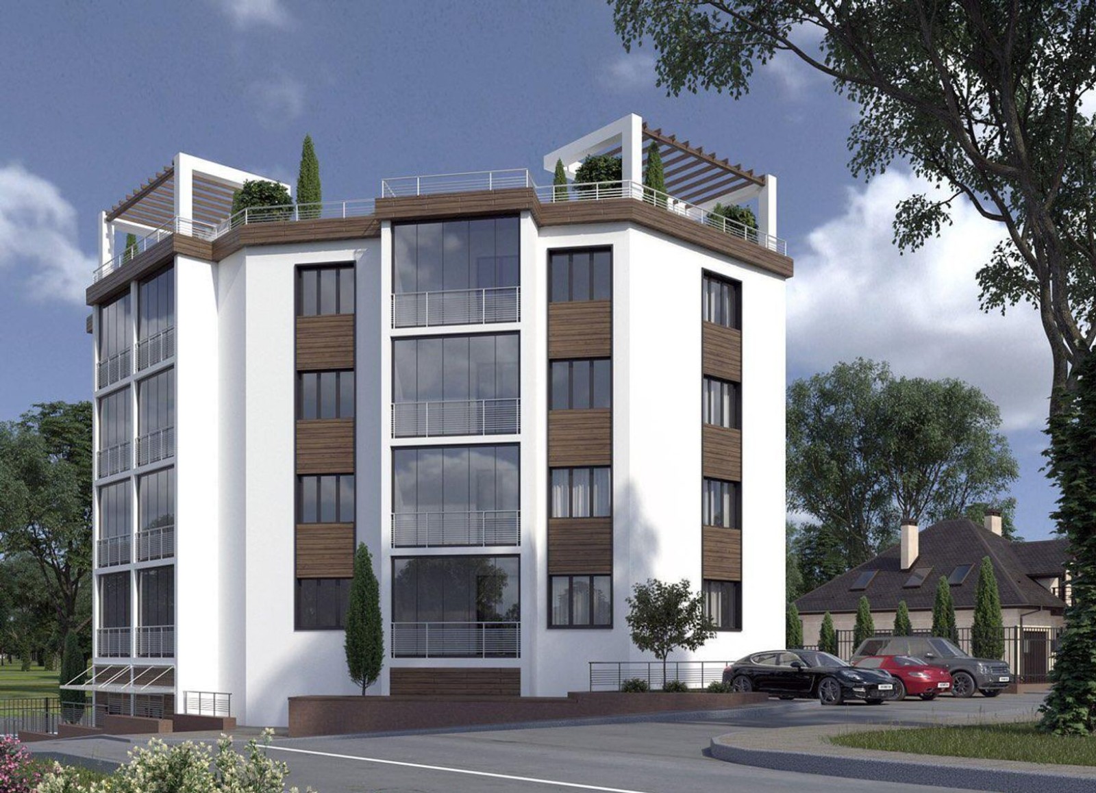 Жилой комплекс «Колибри» — клубный дом рядом с лесом, панорама на который открывается с обустроенной на крыше лаунж зоны. По проекту цокольный этаж дома займут различные коммерческие помещения, а на закрытом от автомобилей и посторонних дворе обустроят парковку для жильцов и их гостей.