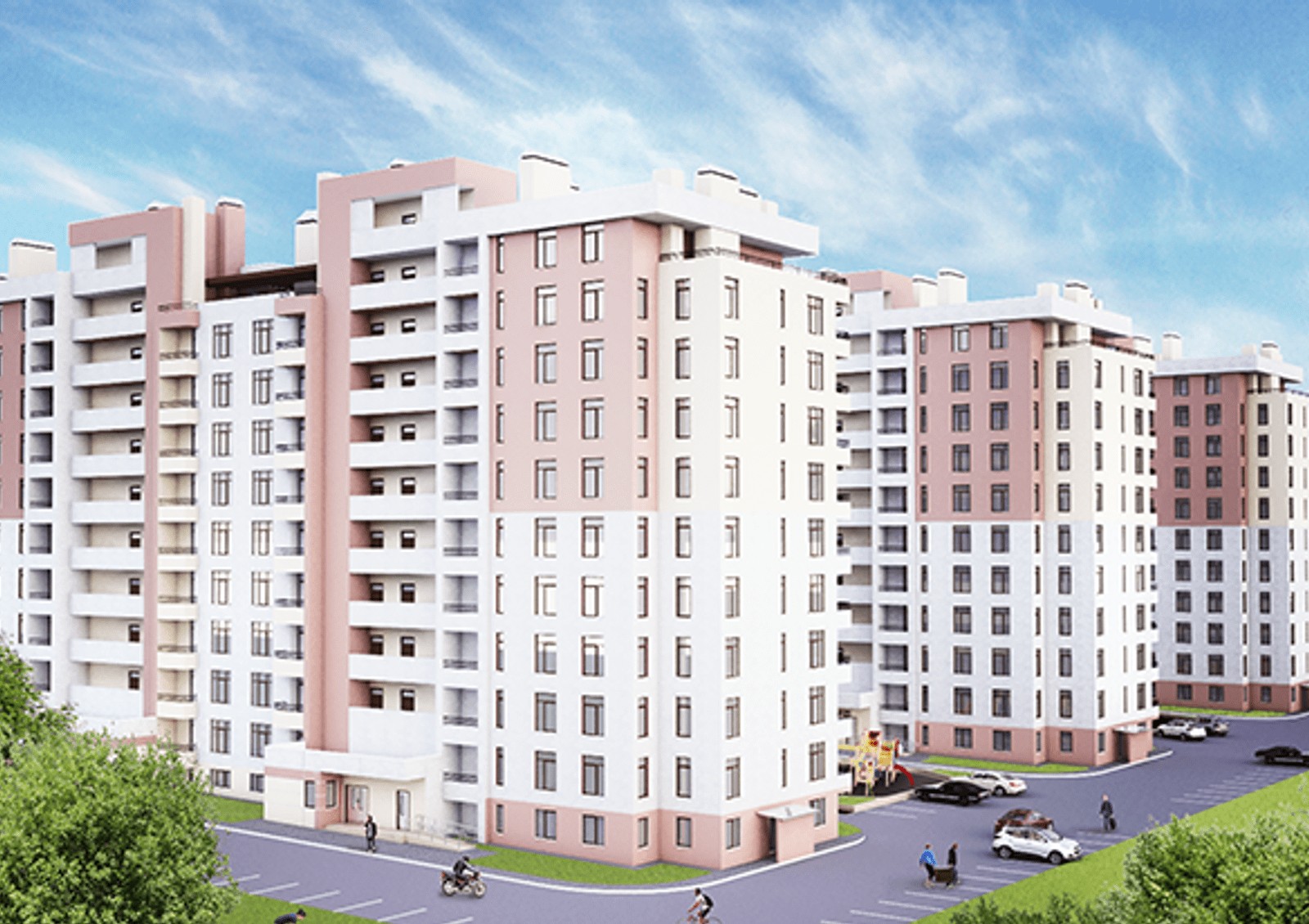 Новостройка состоит из трех домов в девять этажей. Наружные стены здания сооружаются из газоблока и утепляются эффективным теплоизолятором. Большие окна гарантируют высокую степень освещенности помещений и остекляются двухкамерными стеклопакетами. В подъездах устанавливаются бесшумные лифты.