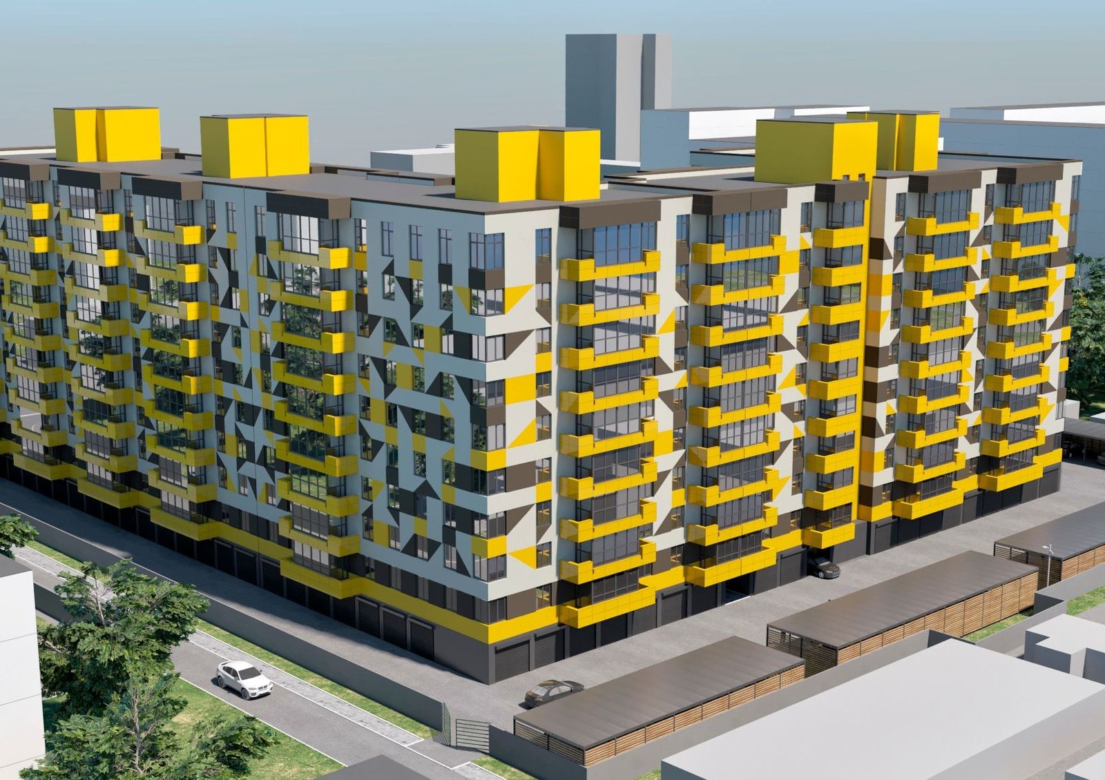Территория ЖК закрыта от посторонних людей и автомобилей. Охрана дома предусматривает установку видеонаблюдения. Владельцы квартир могут парковать свои машины на открытых стоянках с навесом или приобрести индивидуальный гараж с установленными роллетами.