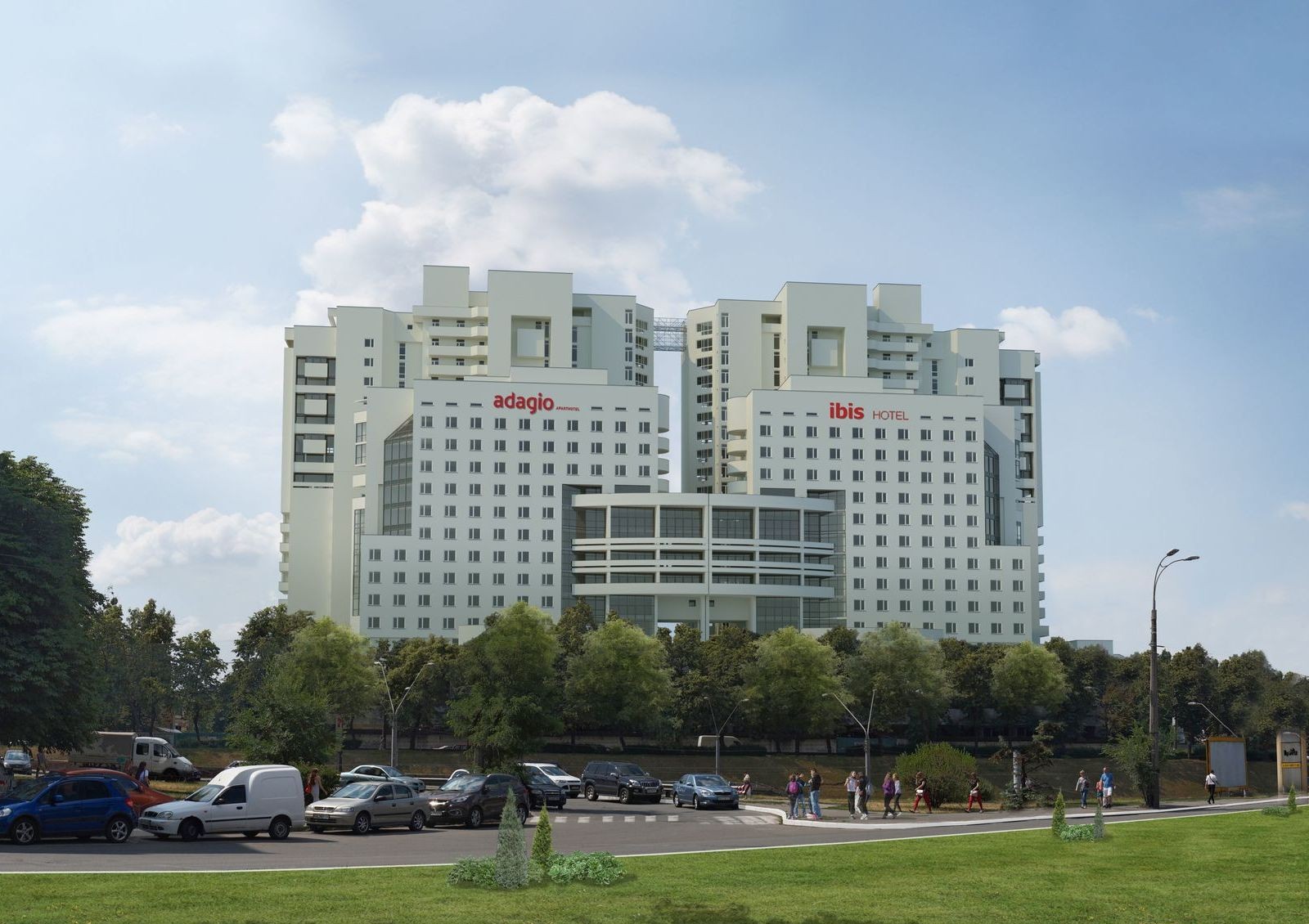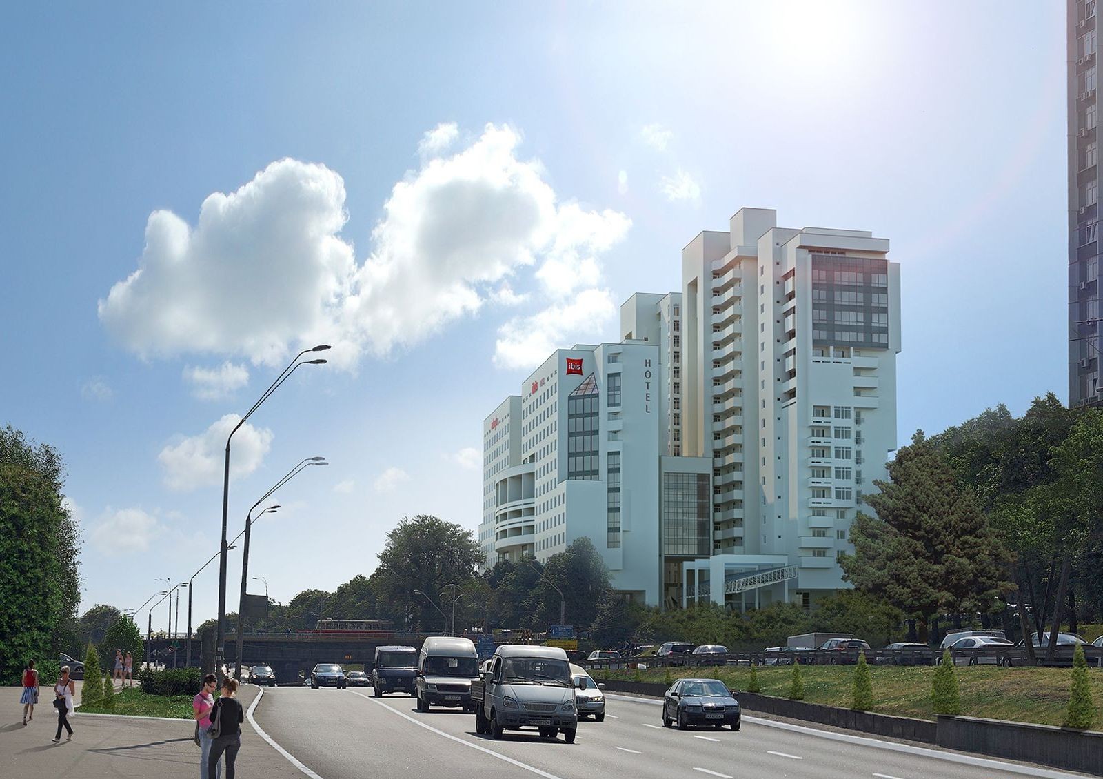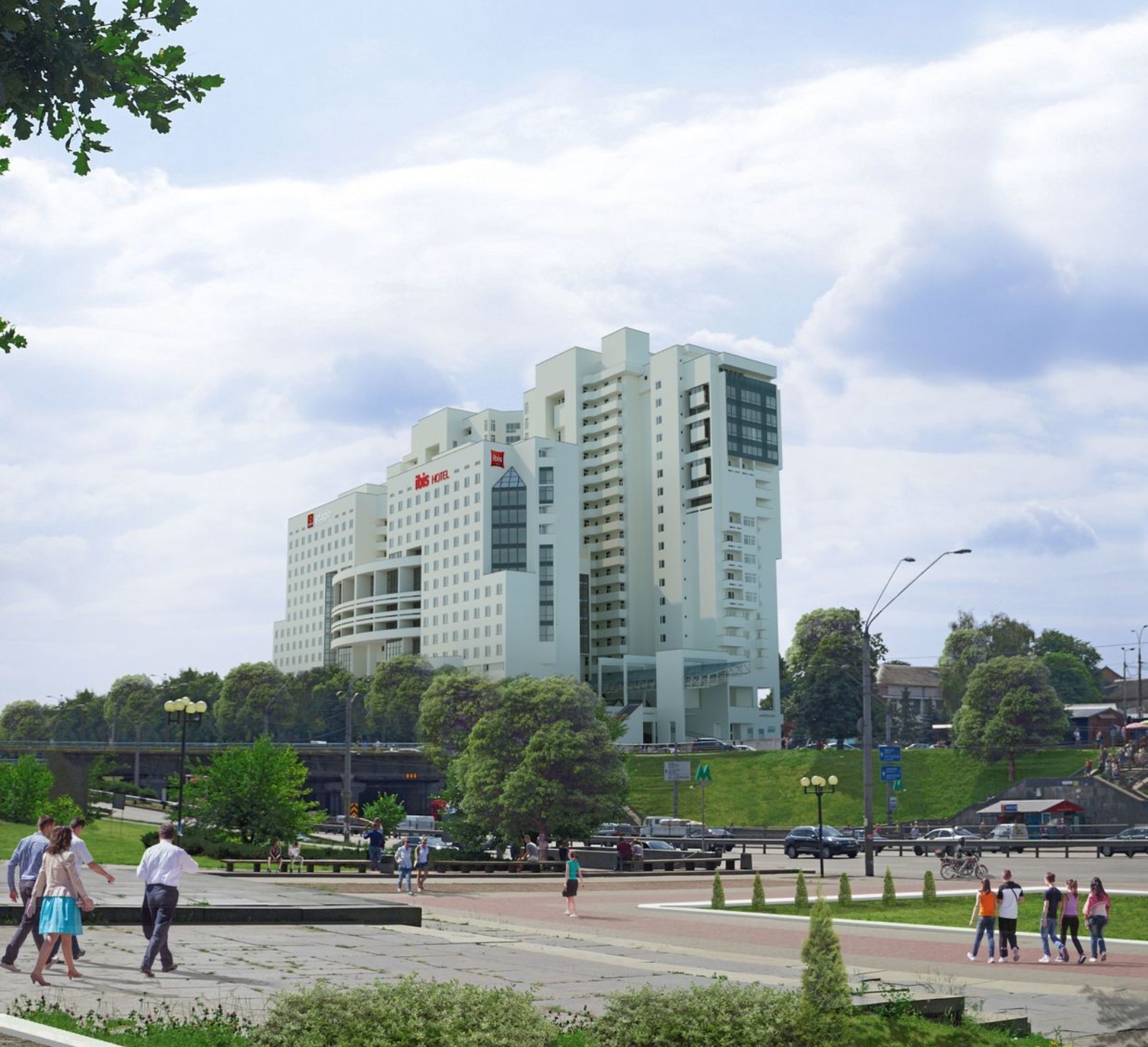 Окна жилых секций не выходят на сторону проспекта, что защищаешь будущих жильцов от шума проезжей части. На втором этаже ЖК «Берестейский» будет обустроена рекреационная зона для жильцов с пешеходной террасой-эспланадой местами для отдыха, элементами обустройства и озеленения территории.