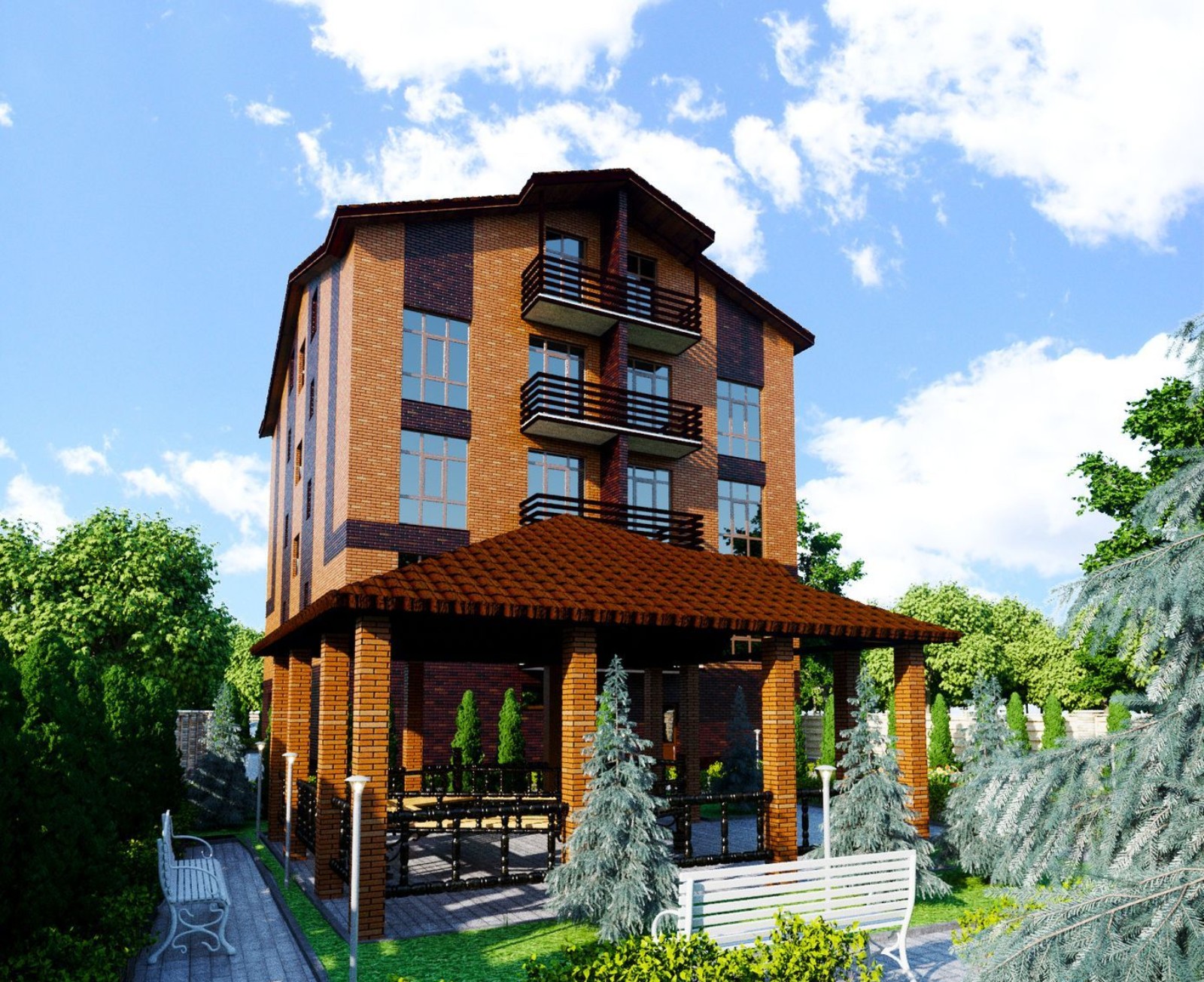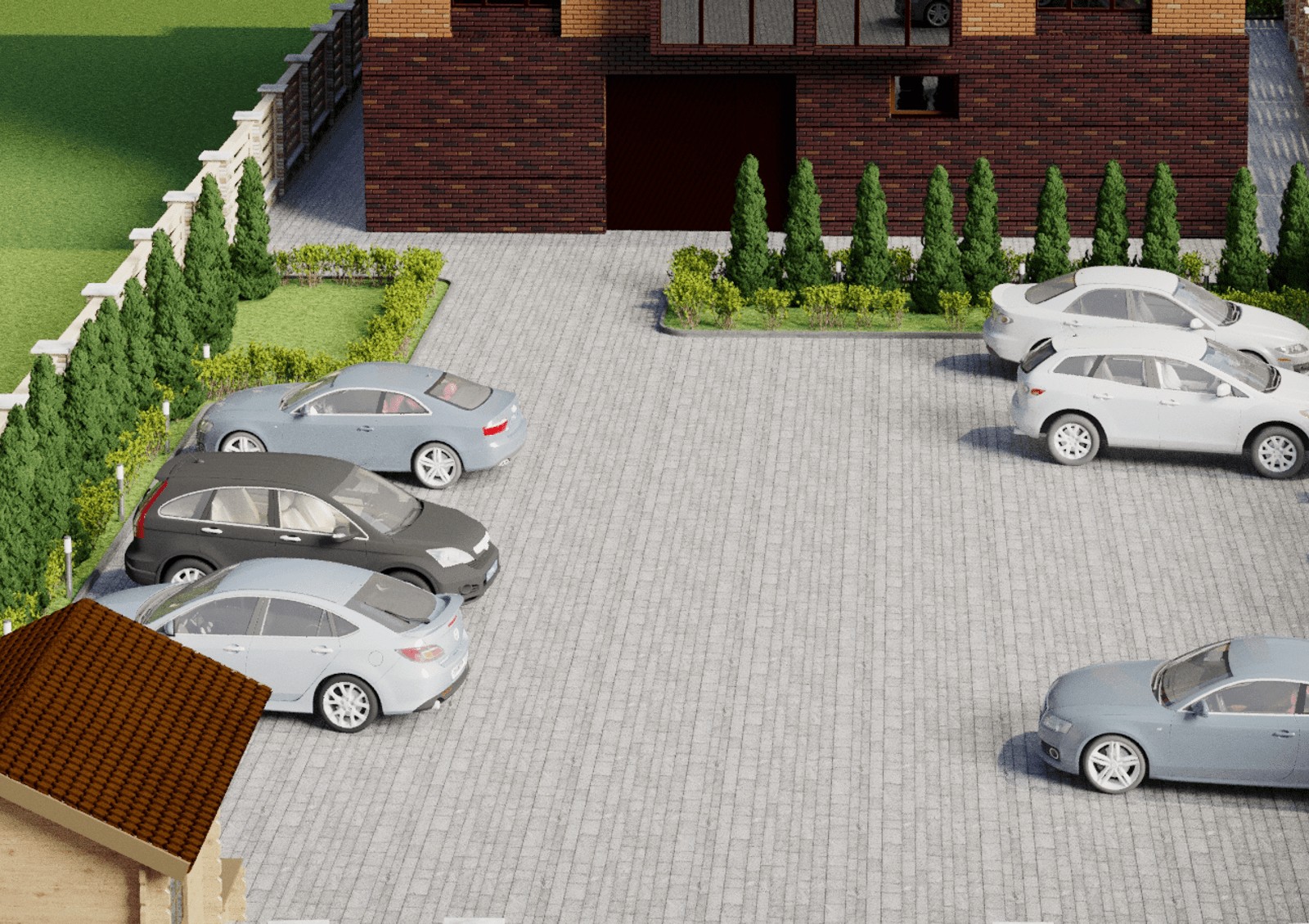 Территория клубного дома занимает площадь 15 соток и является закрытой для посторонних. Зеленые газоны, клумбы, фруктовый сад, благоустроенная зона для барбекю с большой беседкой – здесь есть все для комфортного отдыха с семьей или друзьями. Для авто предусмотрено два паркинга – закрытый и гостевой.