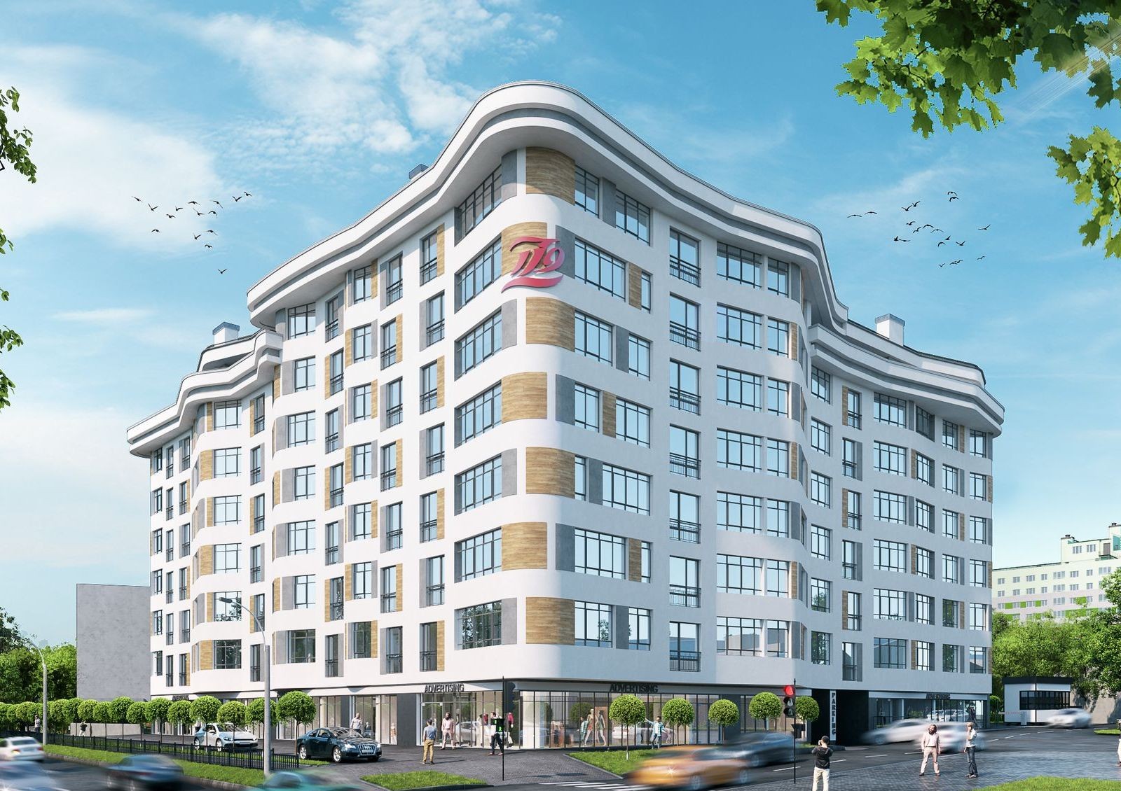 Z-119 — недвижимость в формате клубного дома. Для оформления выбраны светлые тона отделки, а волнистые фасады помогут дому выделяться на фоне архитектуры района. С лицевой стороны балконы уже застеклены, поэтому внешний вид фасадов не изменится в будущем. Формат клубного дома предусматривает среднюю этажность и небольшое количество квартир, поэтому плотность заселения дома также будет низкая.