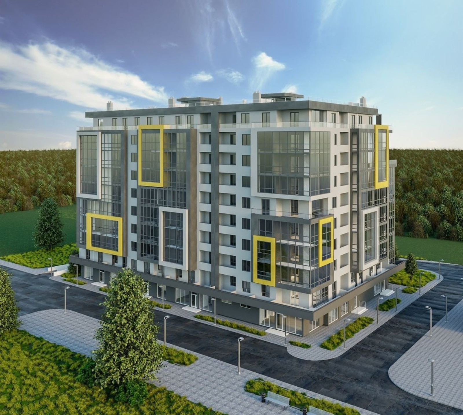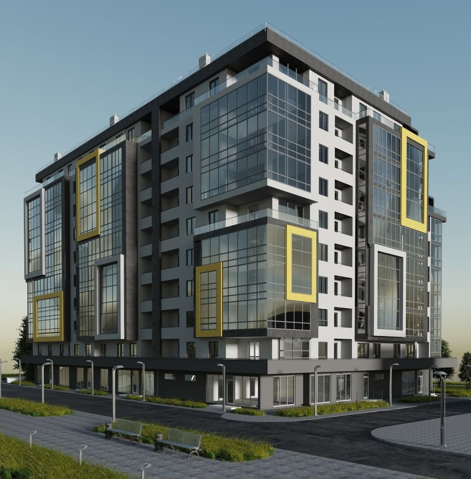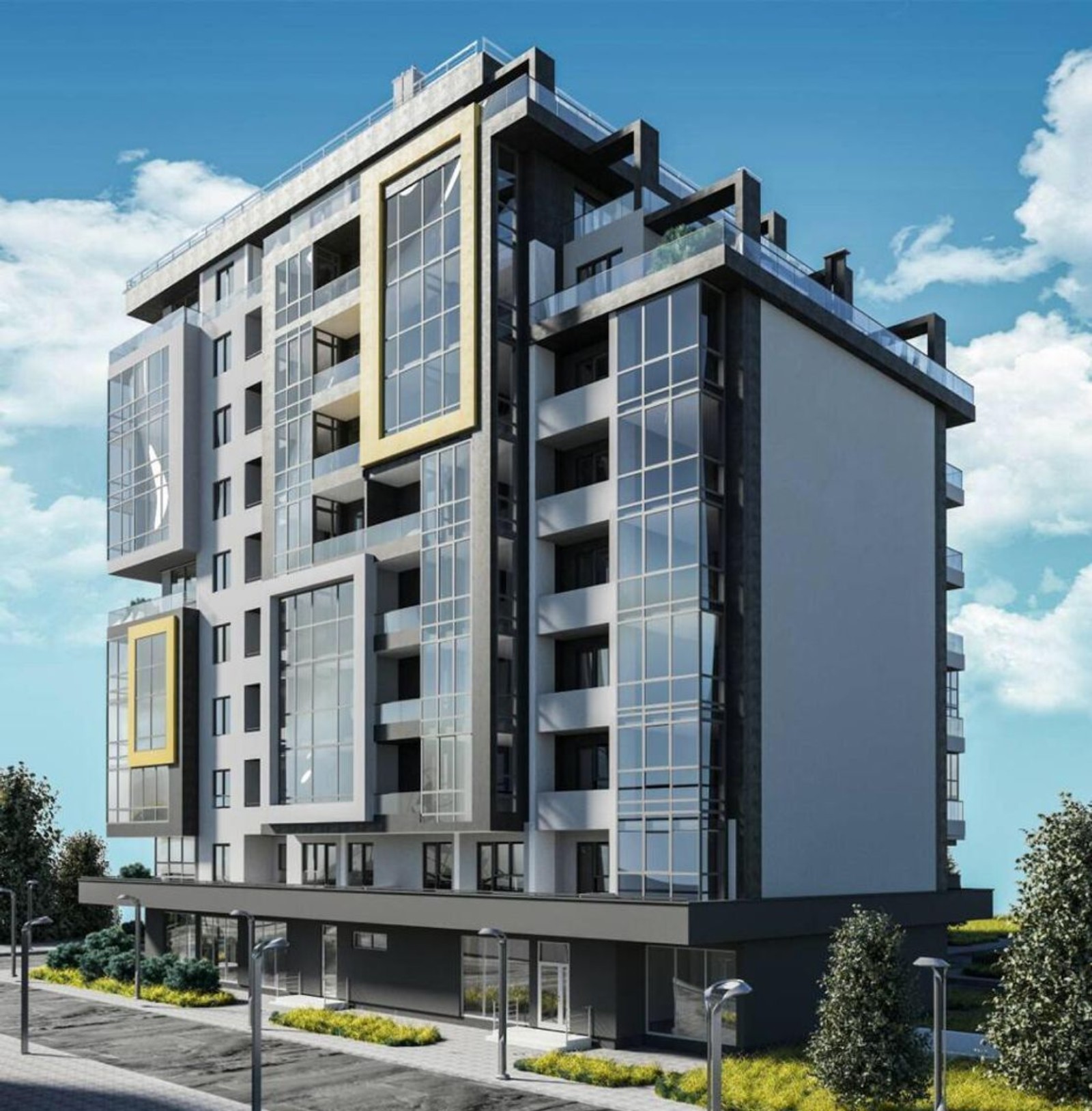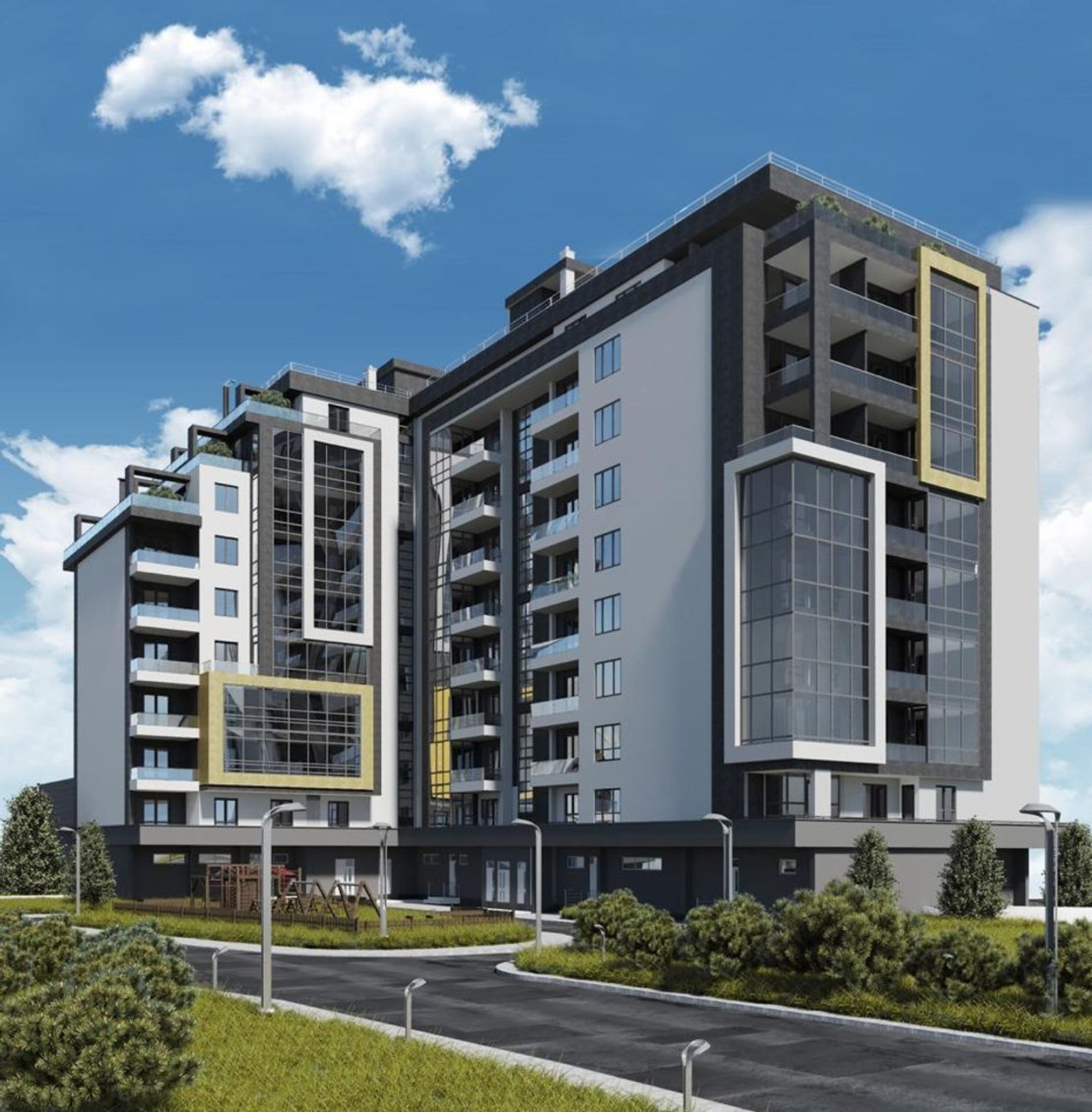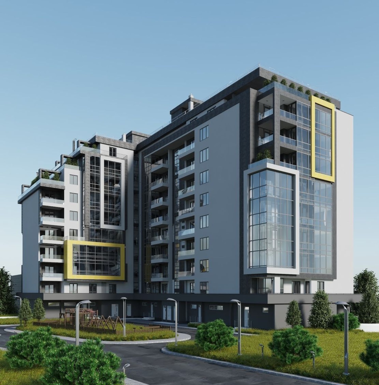 собственная инфраструктура — центр развития ребенка, детская площадка, коммерческие помещения, подземный и гостевой паркинги