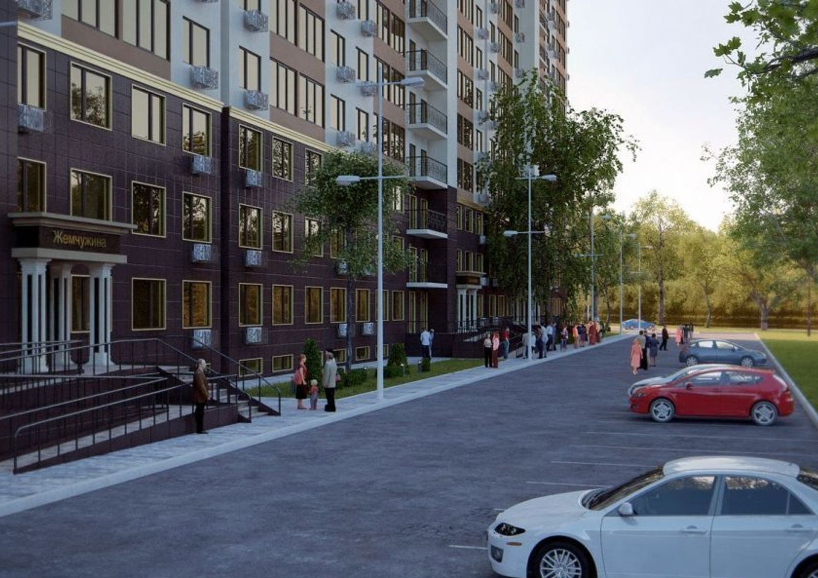 Придомовая территория «Тридцать седьмой жемчужины» реализована по принципу целевого зонирования. Проектом предусмотрены игровые и спортивные площадки, а также зеленые зоны для отдыха. Для автомобилей жильцов предусмотрена открытая наземная стоянка. Рядом с домой парковые зоны, морское побережье и удобная транспортная развязка.