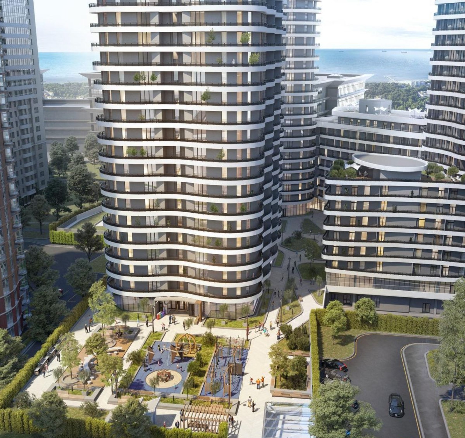 Комплекс составляют три башни в двадцать пять этажа, размещенные на едином стилобате высотой в два уровня. По периметру территория закрыта семиэтажными секциями, которые образуют уютный и тихий двор.