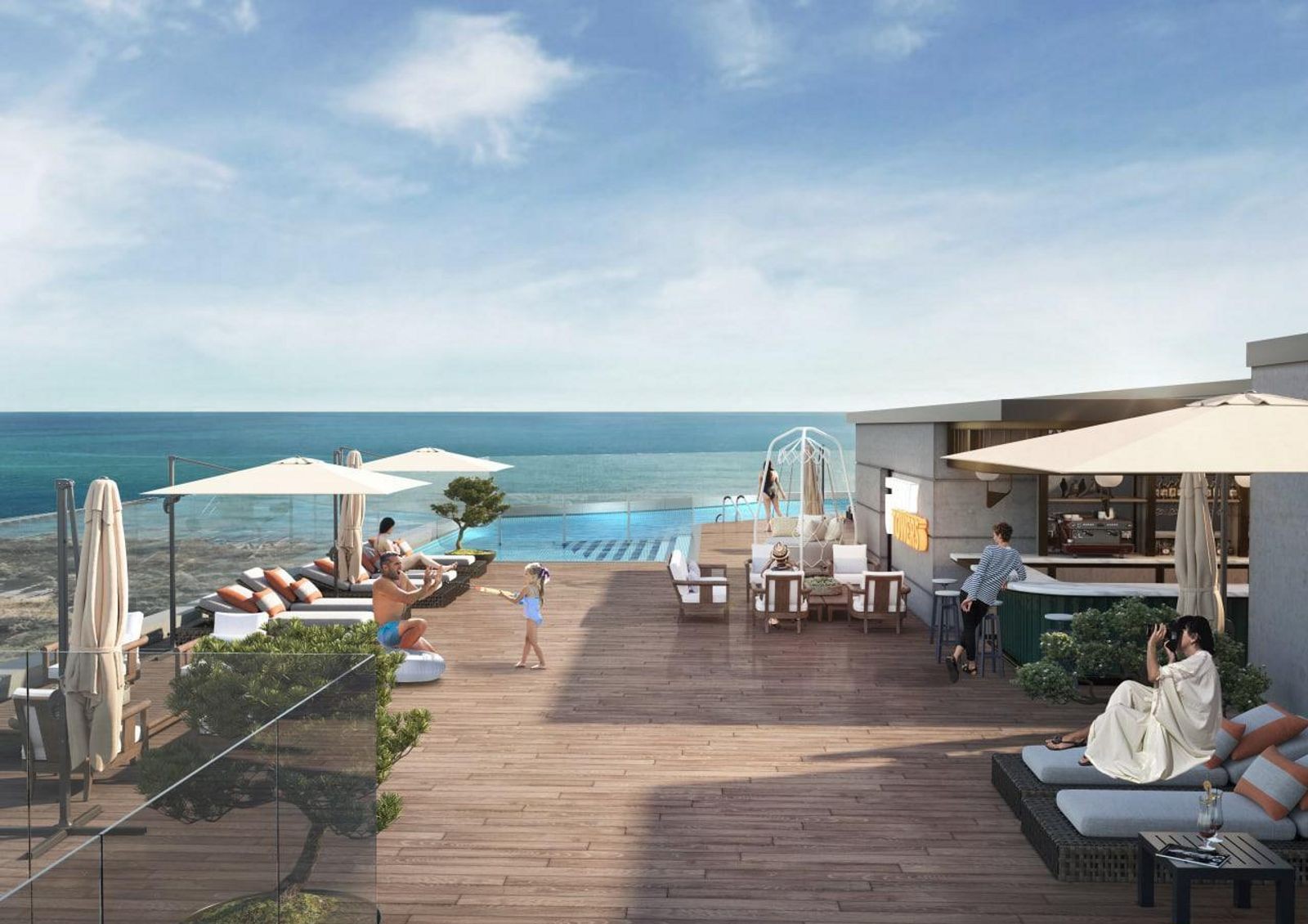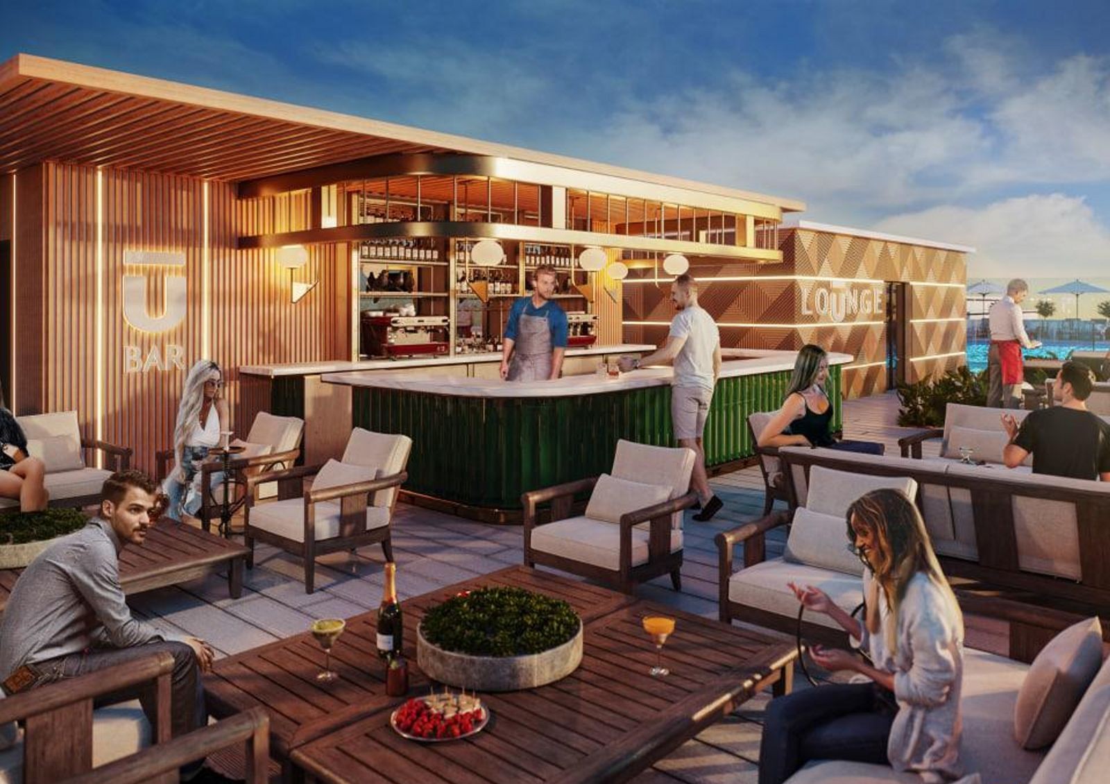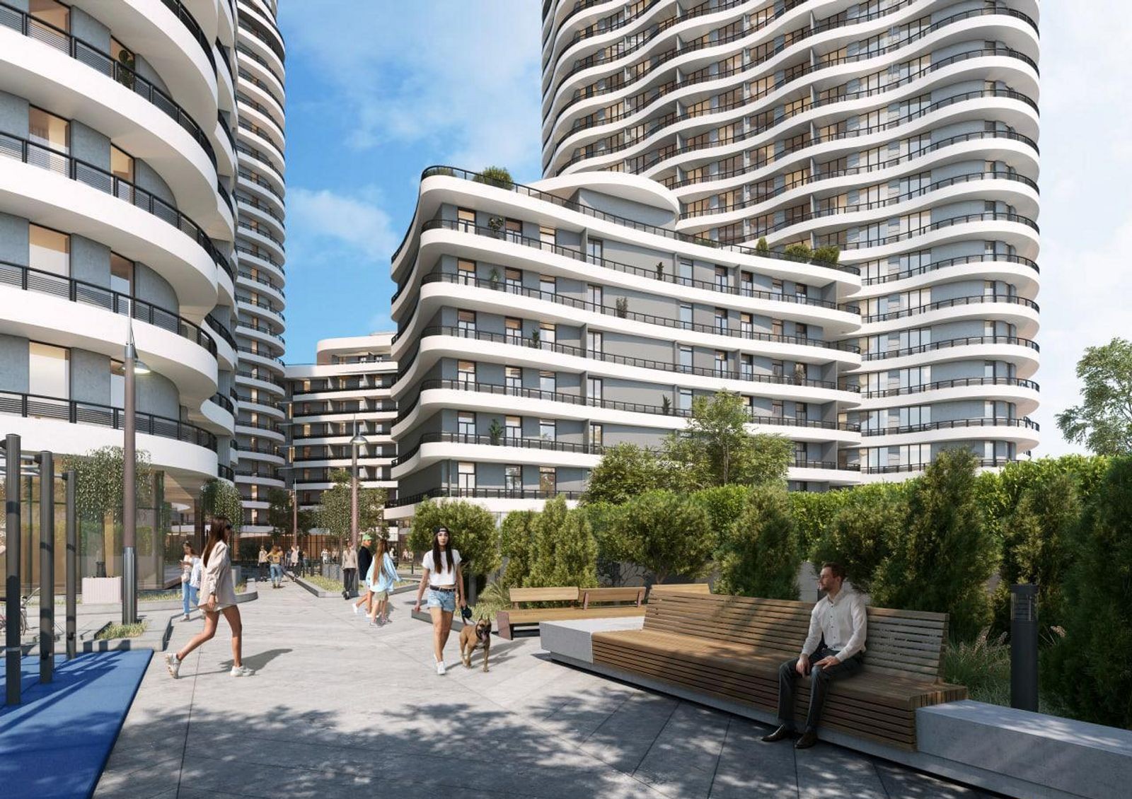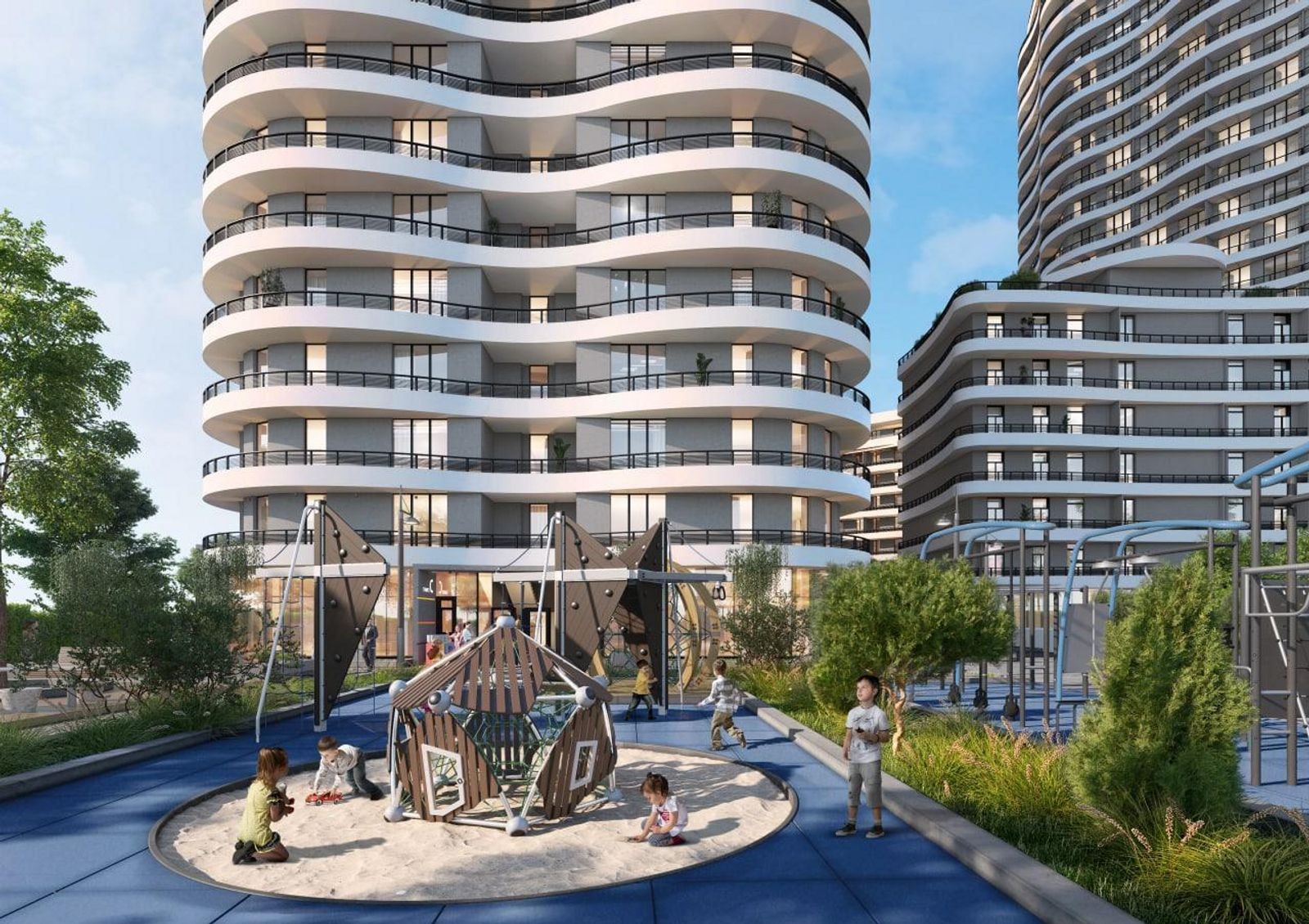 Рядом с комплексом расположен торговый центр, несколько гостиниц, аквапарк, аптека и ресторан быстрого питания. В непосредственной близости находится Аркадийский дворец, возле новостройки имеются магазины разного профиля и кафе.