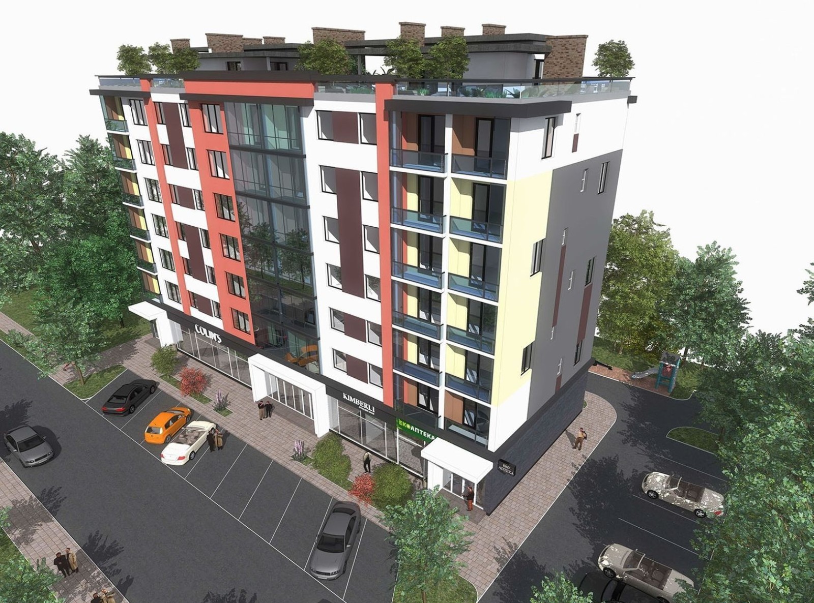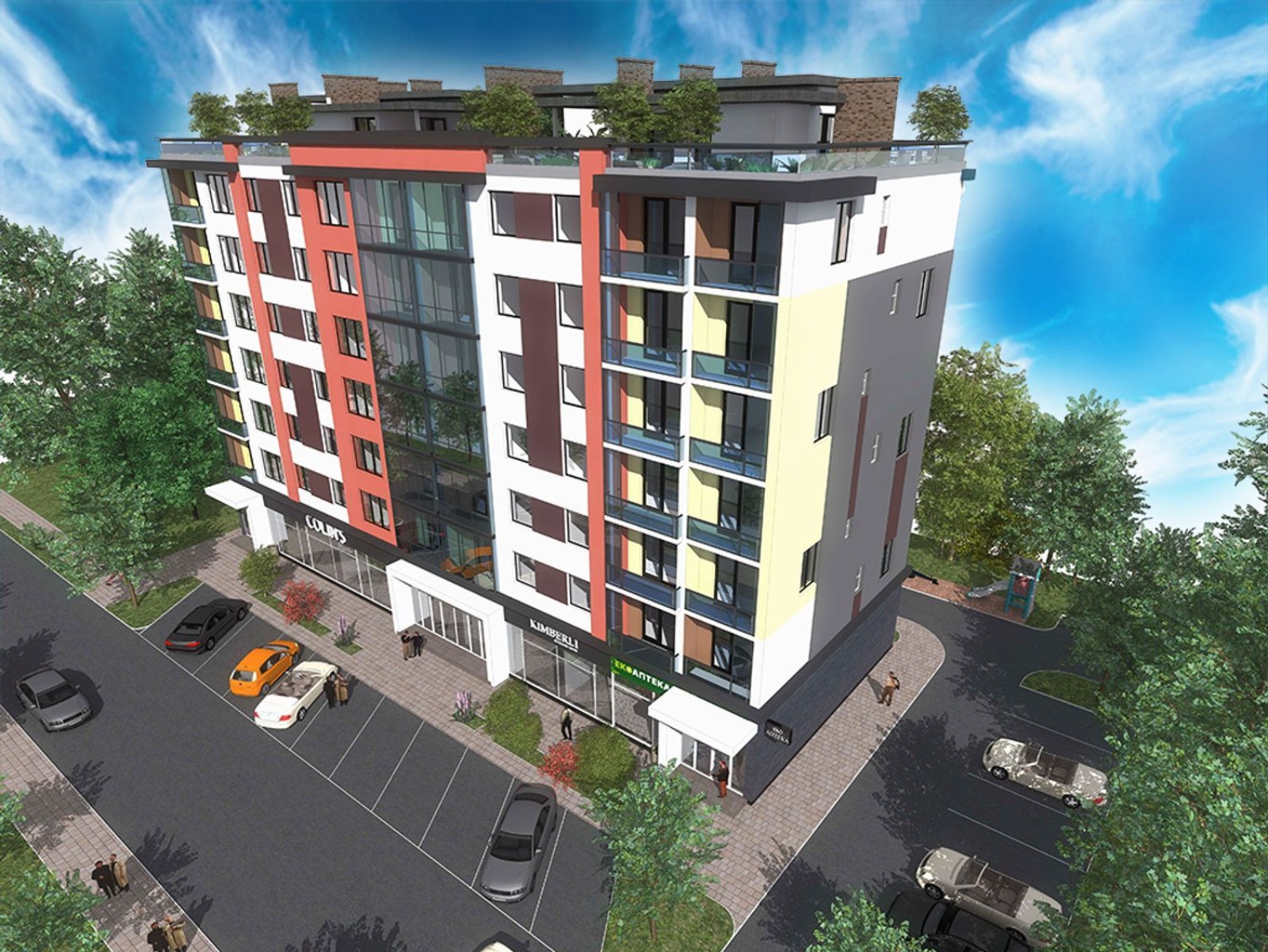 Купить продукты в 8 минутах ходьбы от комплекса можно в супермаркете «Ассорти», продуктовых магазинах «АВС» и Avs Zina, а также в магазине деликатесов Lera’s ADC, гипермаркете «Велмарт», двух супермаркетах «Вопак» и «Сильпо», потратив на дорогу на автомобиле 3-6 минут. До «Минайского» или «Пьяного» рынков за домашними или фермерскими продуктами на автомобиле можно доехать за 7-8 минут. Товары для ремонта можно купить в гипермаркетах «Эпицентр» и «Новая линия», до которых 6 и 9 минут пешком соответственно. Если привыкли начинать день с чашки свежего кофе — рядом с домом кафе «Гармония», а в 5 минутах ходьбы кофейня Medelin.