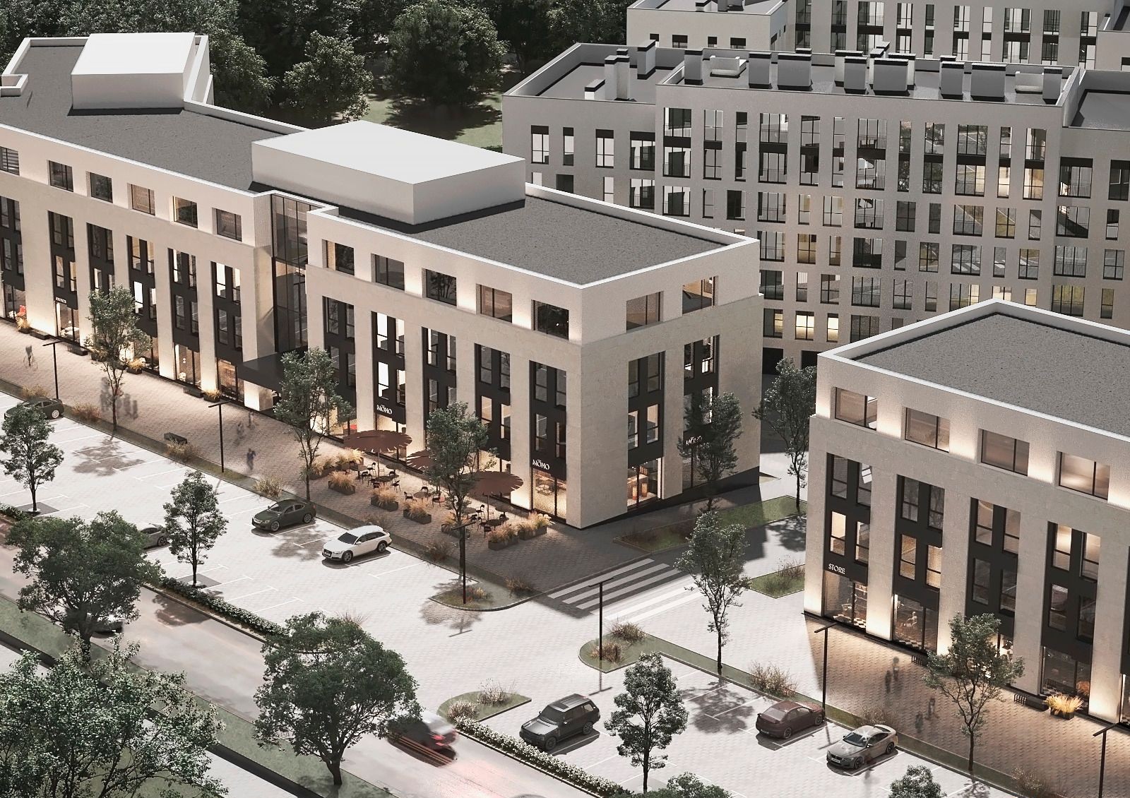 На коммерческих площадях комплекса откроют продуктовый супермаркет, салоны красоты, аптеки, медицинские учреждения, кафе и семейный ресторан, что поможет развить инфраструктуру района, а жильцам не нужно будет далеко ездить за покупками или медицинскими услугами.