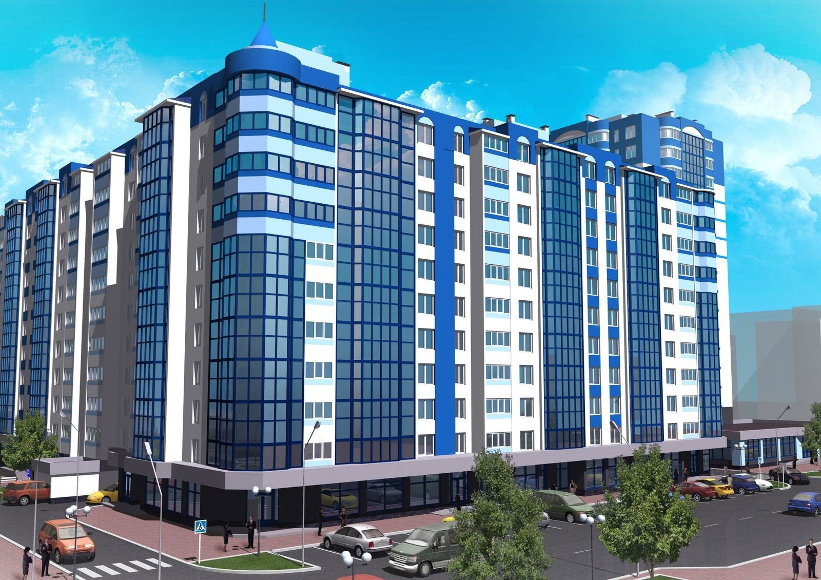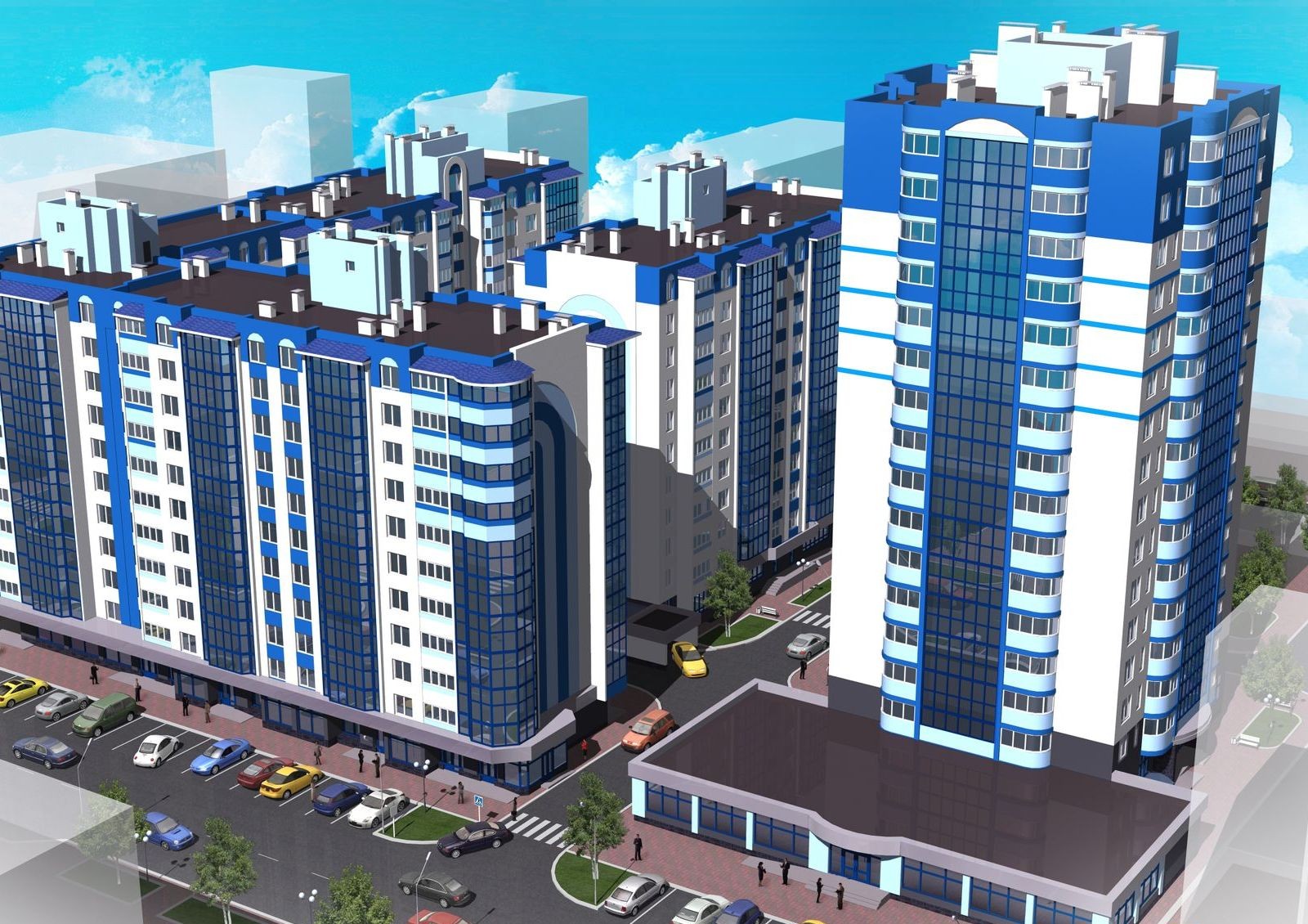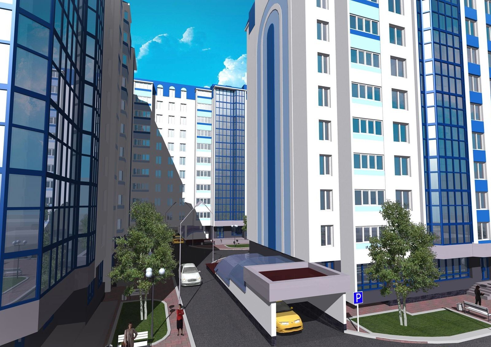 Новостройка имеет не очень большую, но благоустроенную территорию. Проектом предусмотрено строительство подземного автопаркинга и наземной парковки.