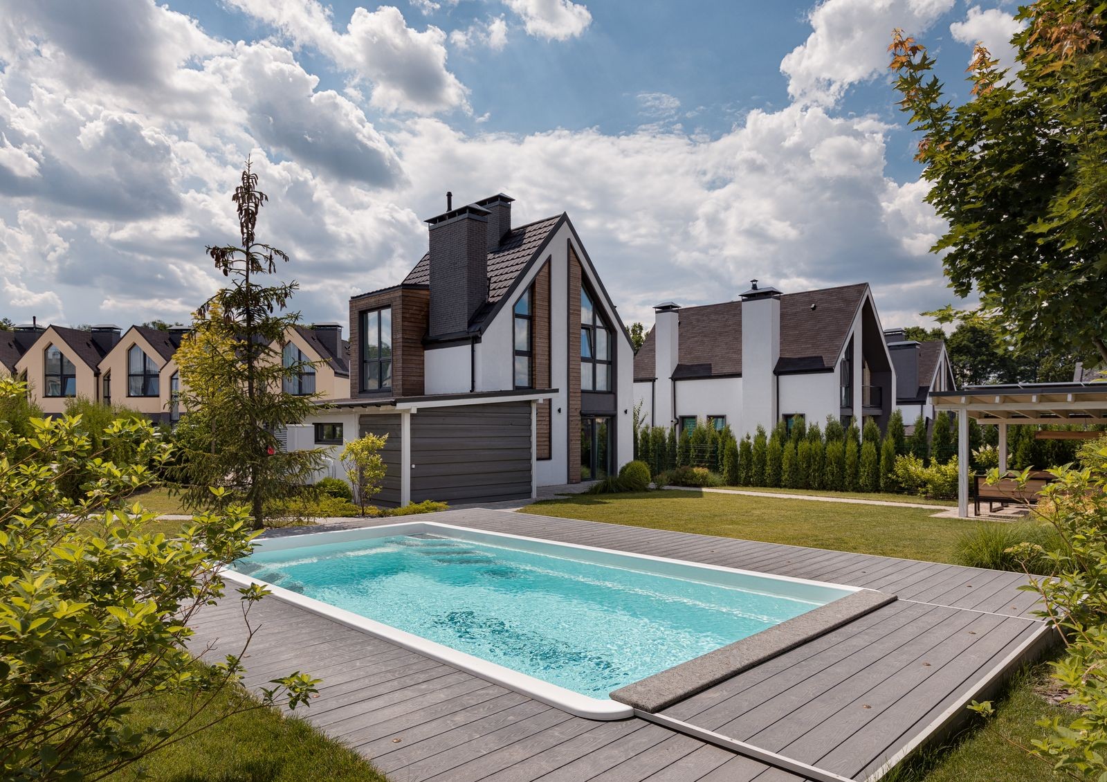 Коттеджный городок VILLAGGO в Белогородке находится в четырех километрах от Киева в районе с прекрасной экологией, рядом с лесами и озерами. Особенно городок понравится тем, кто стремится жить на природе, пользуясь при этом городским комфортом. Все 195 домов выполнены в едином скандинавском стиле, а концепция городка продумана так, чтобы не создавать лишней визуальной нагрузки, при этом организовав больше открытого пространства.