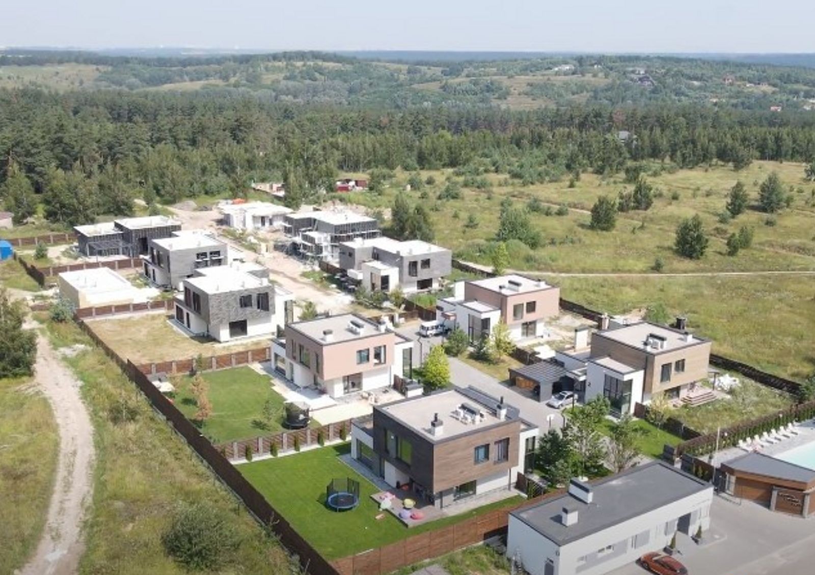 Планировка коттеджей и их размещение на территории городка позволяют в полной мере насладиться уединением и комфортом загородной жизни. Сквозь панорамные окна в комнаты проникает больше солнечного света и открывается вид на лес. Сидя на своей террасе можно будет любоваться окружающими пейзажами.