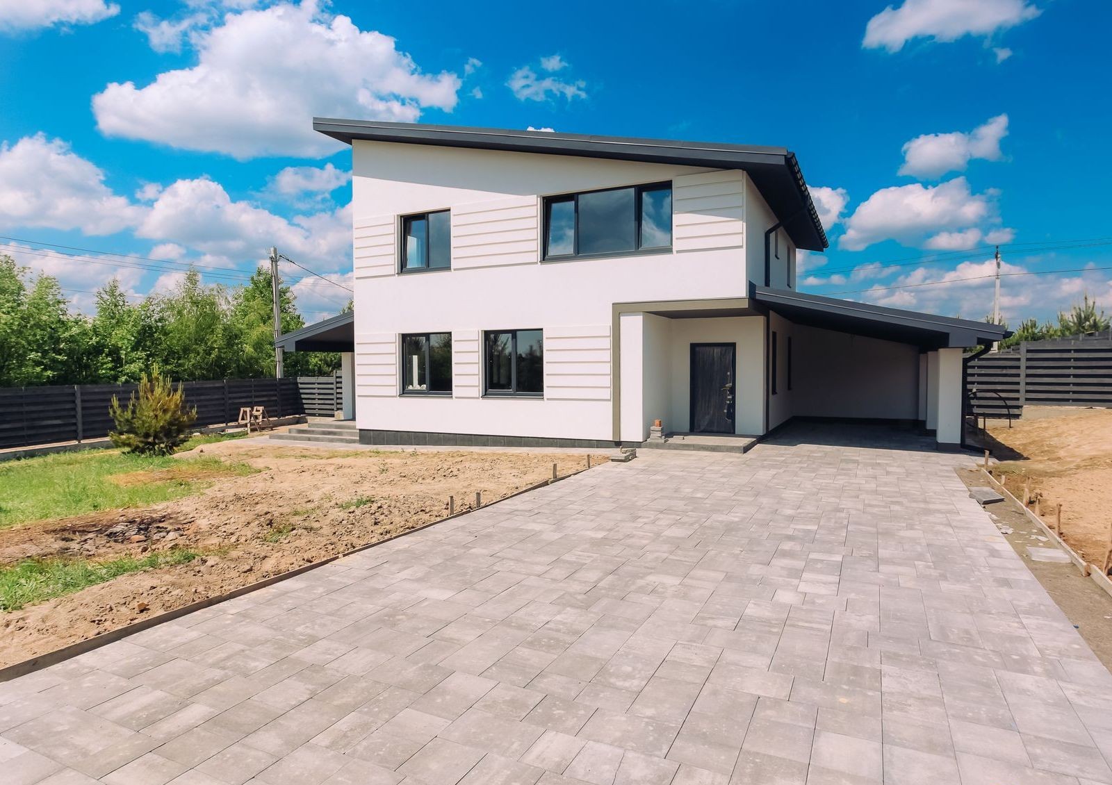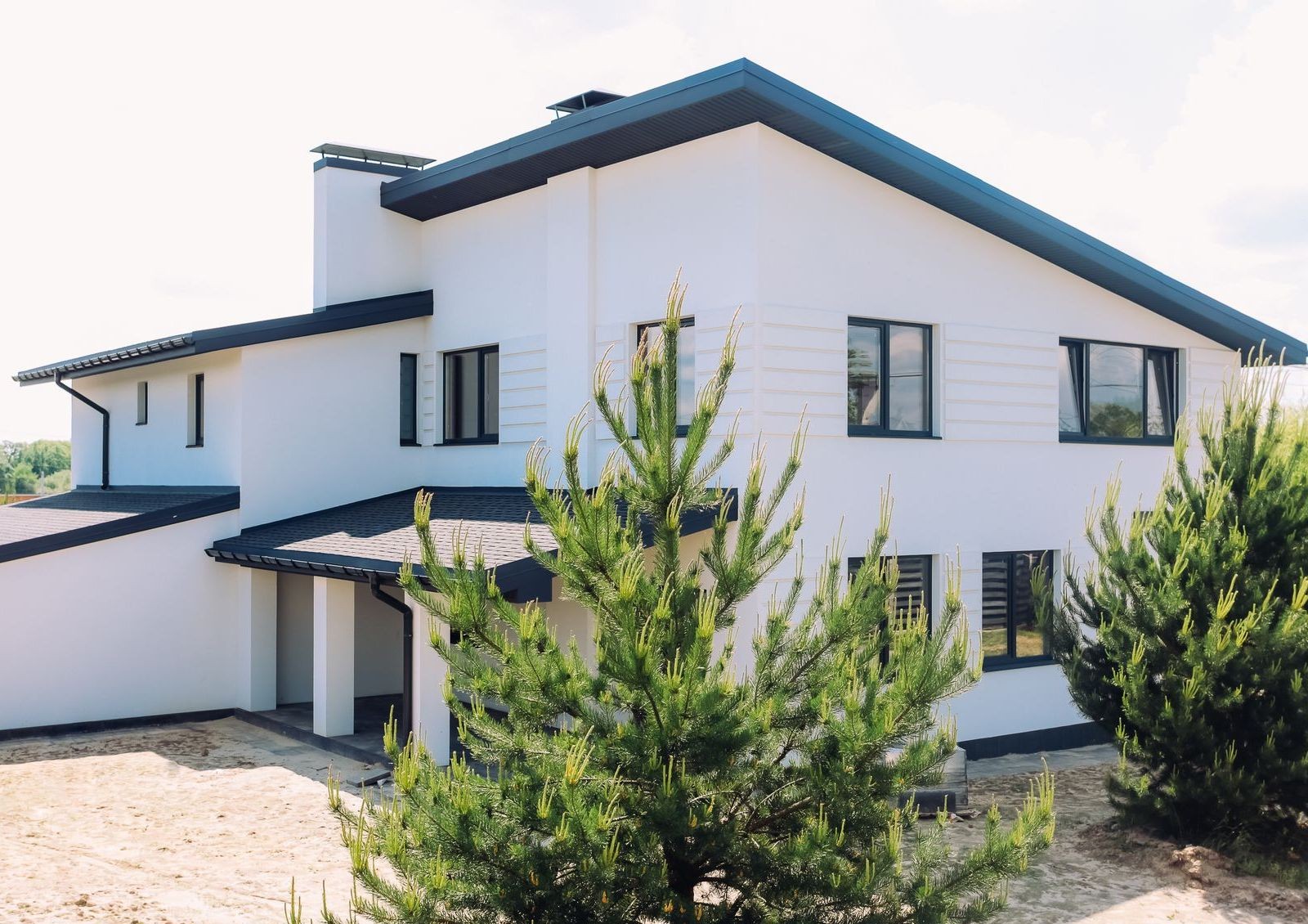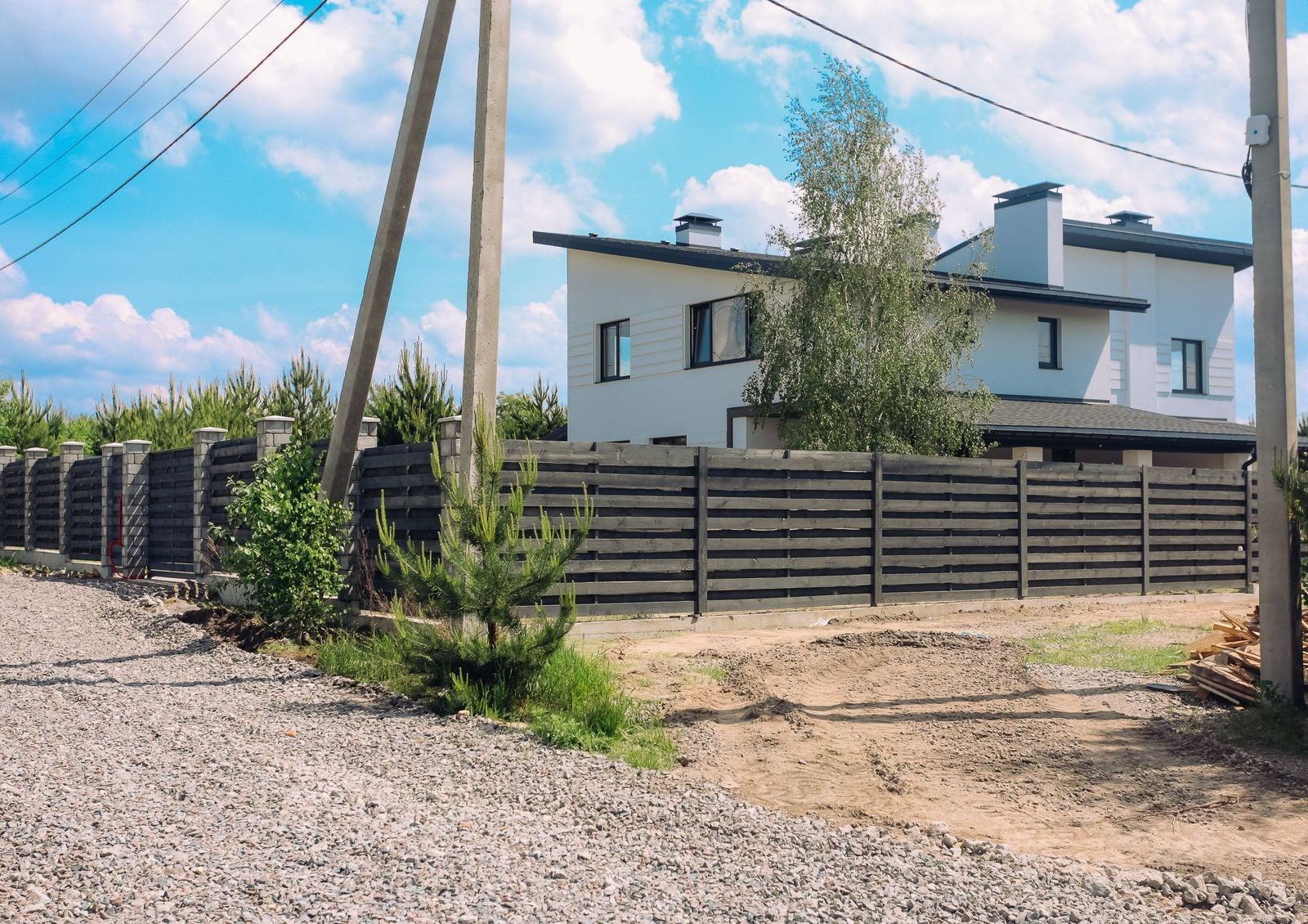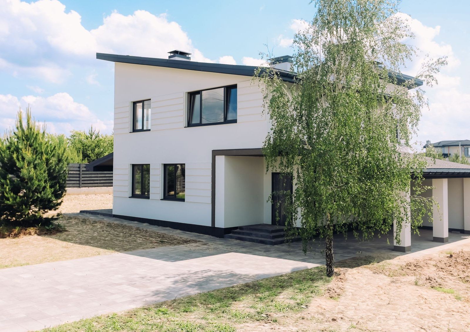 Дома продаются с земельными участками разной площади, на которых высажены молодые сосны.Для авто во дворе предусмотрено место для парковки с навесом.