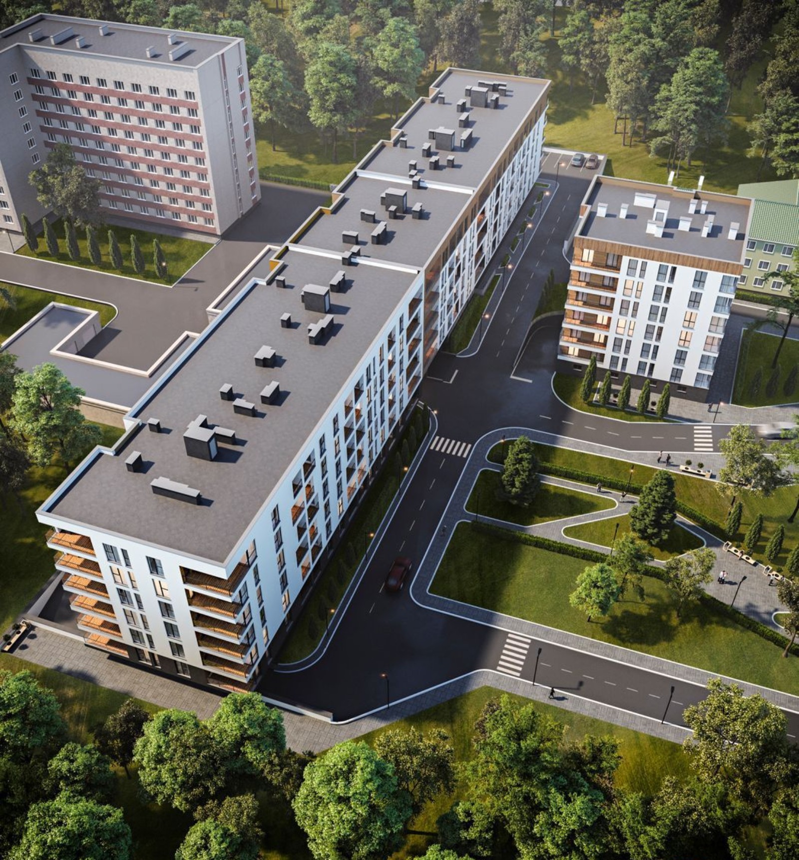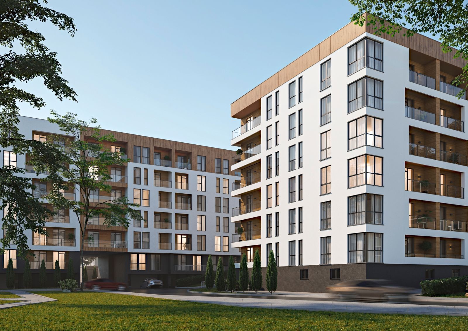 Жилой комплекс Globus Central Park — это два 6-этажных дома премиум-класса. Архитектура зданий примечательна прямыми линиями и многоуровневостью фасада, а также классическими тонами отделки — черным, белым и коричневым. Темные профили окон будут гармонично смотреться в общей картине, а стеклянные ограждения на балконах добавят легкости и воздушности. Придомовую территорию облагородят для прогулок и отдыха, а благодаря удаленности комплекса от трасс и дорог здесь не будет шума и пыли.