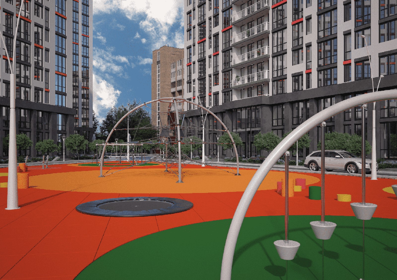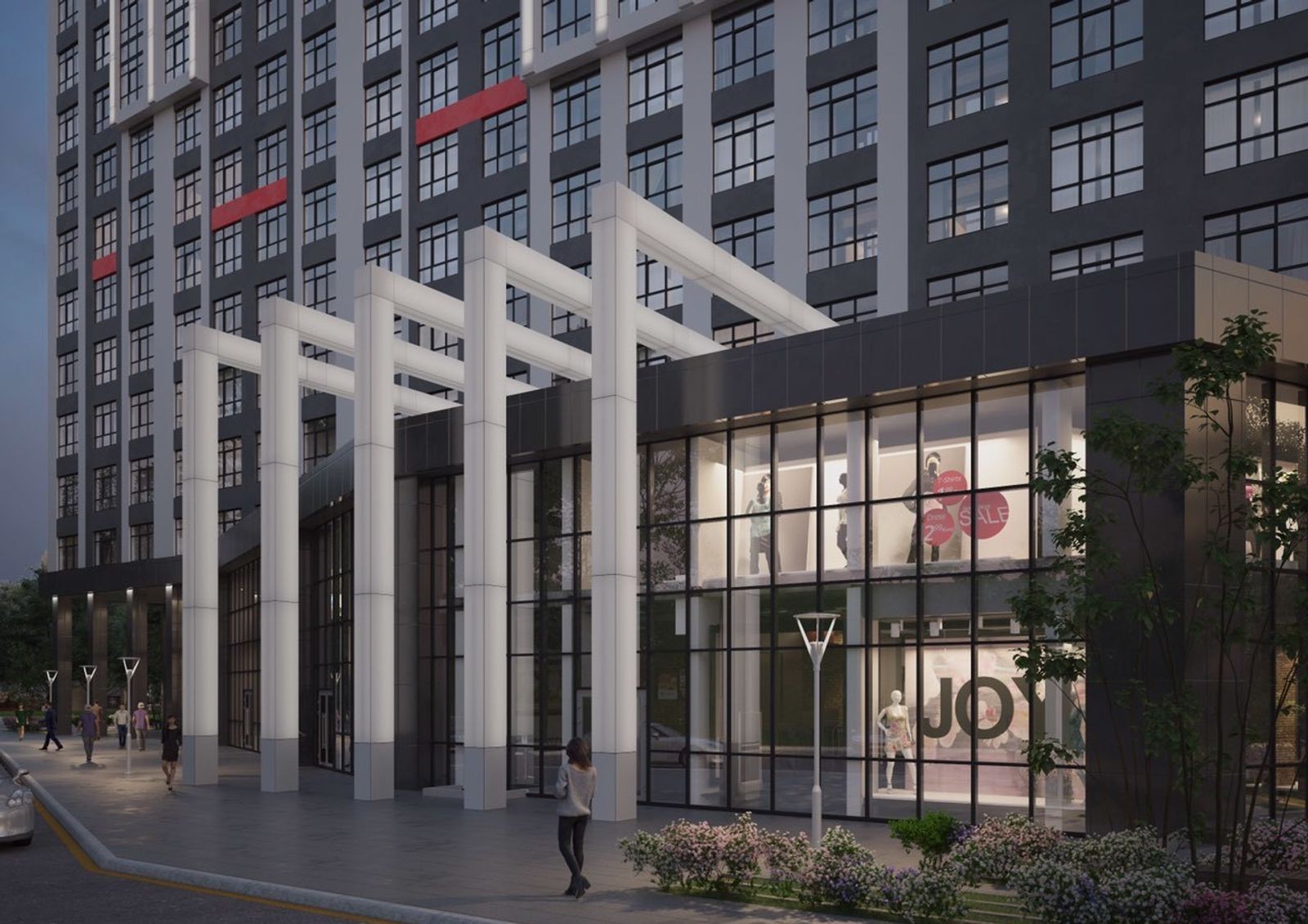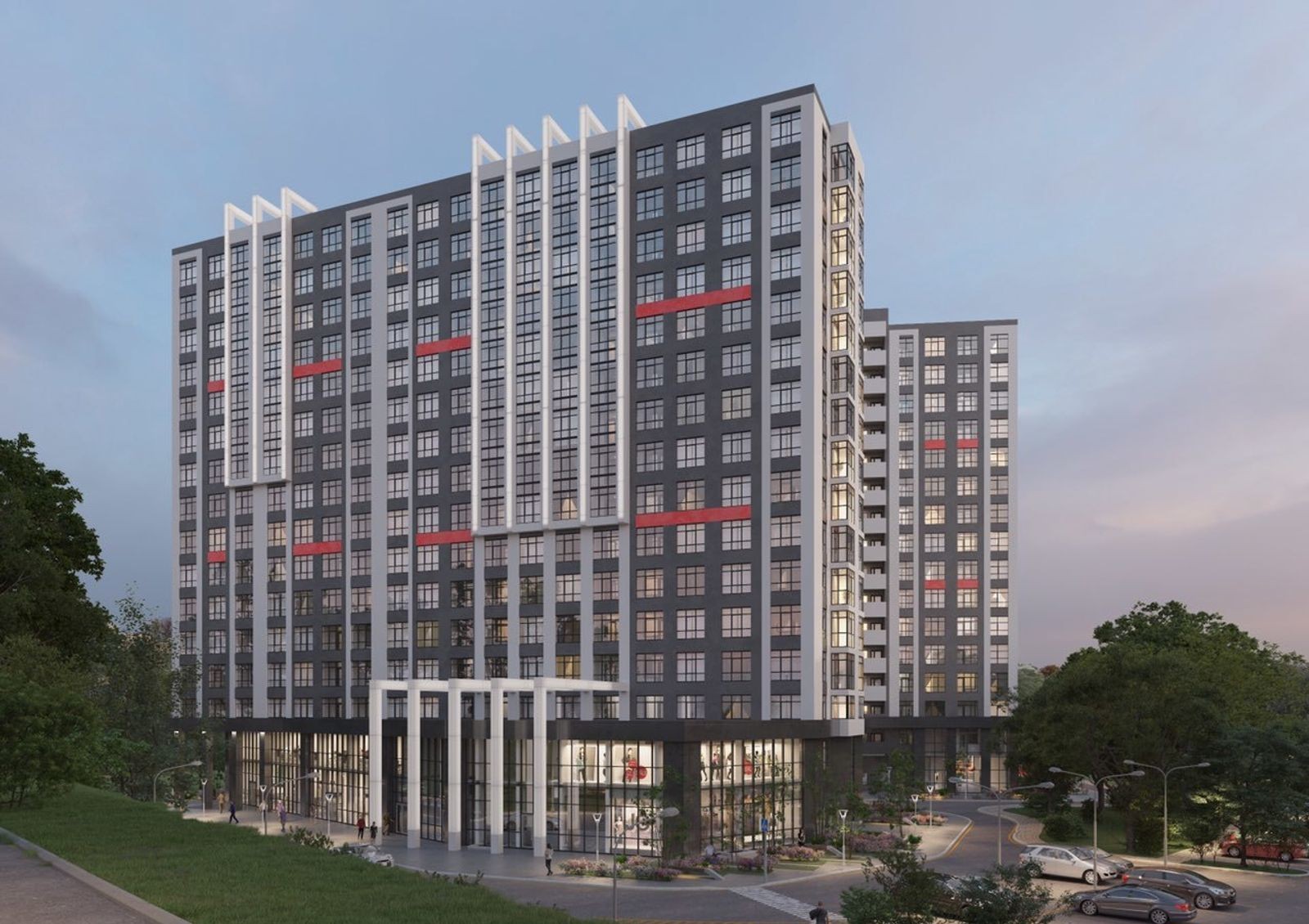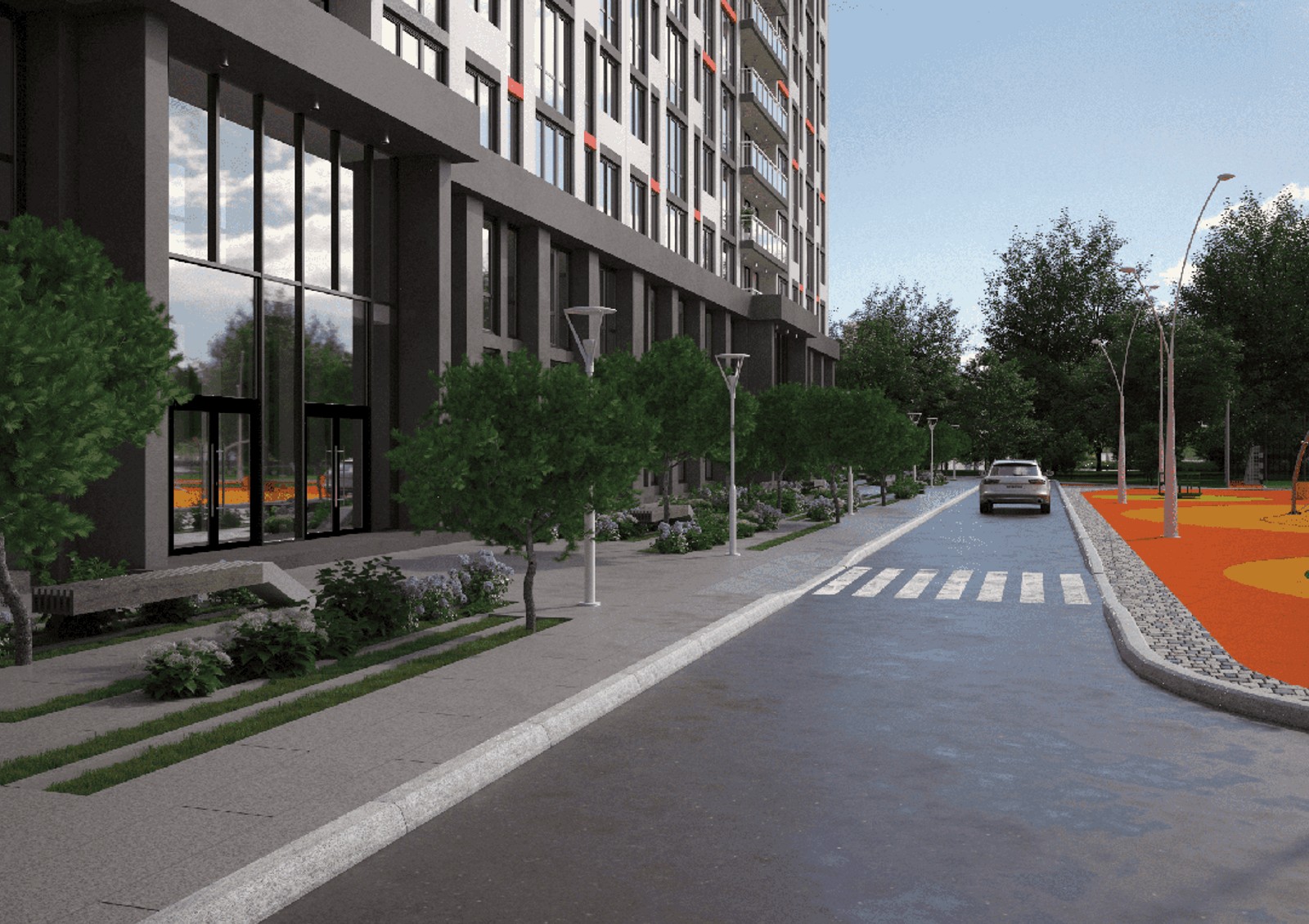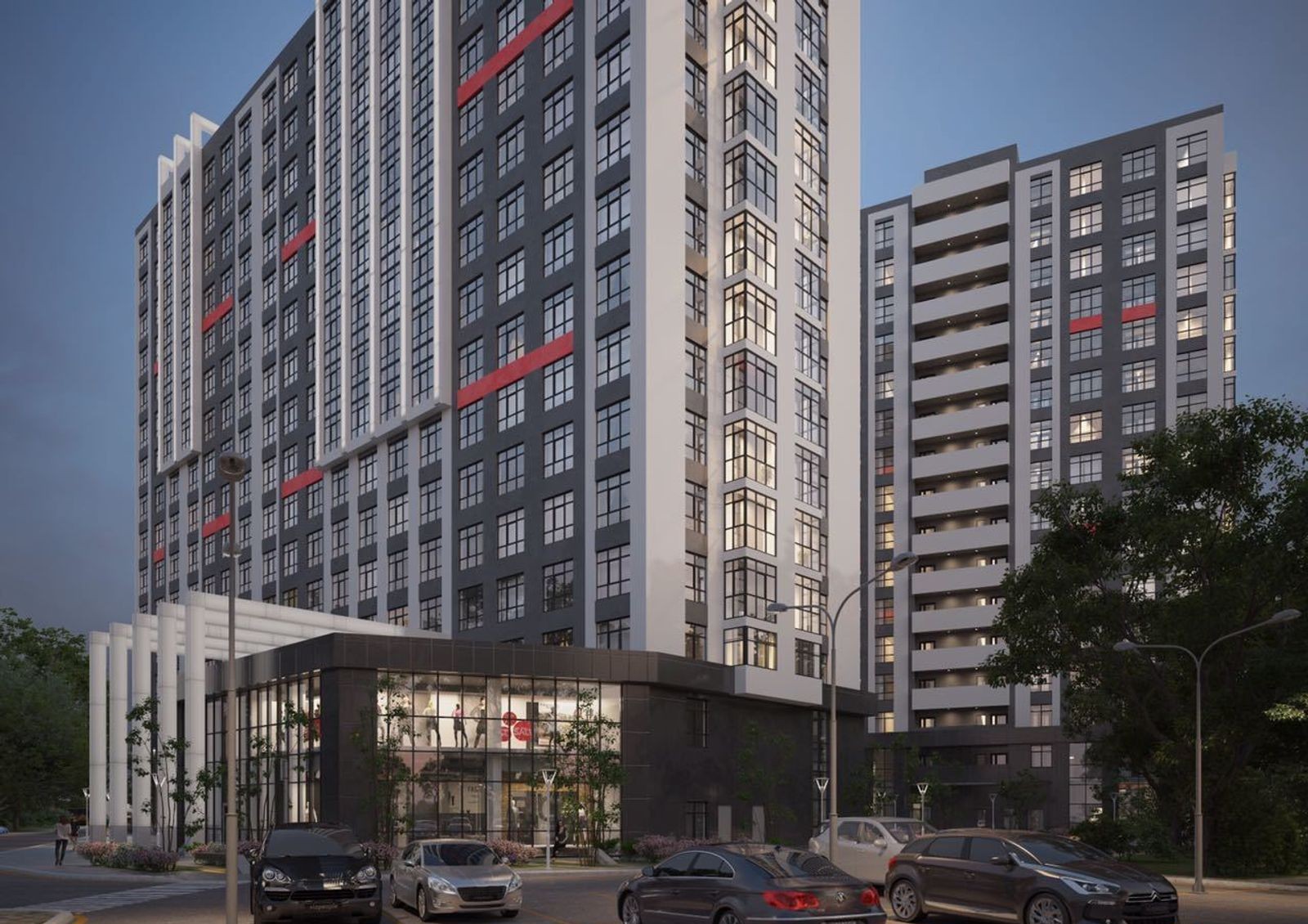 собственная инфраструктура с коммерческими помещениями на первых этажах домов