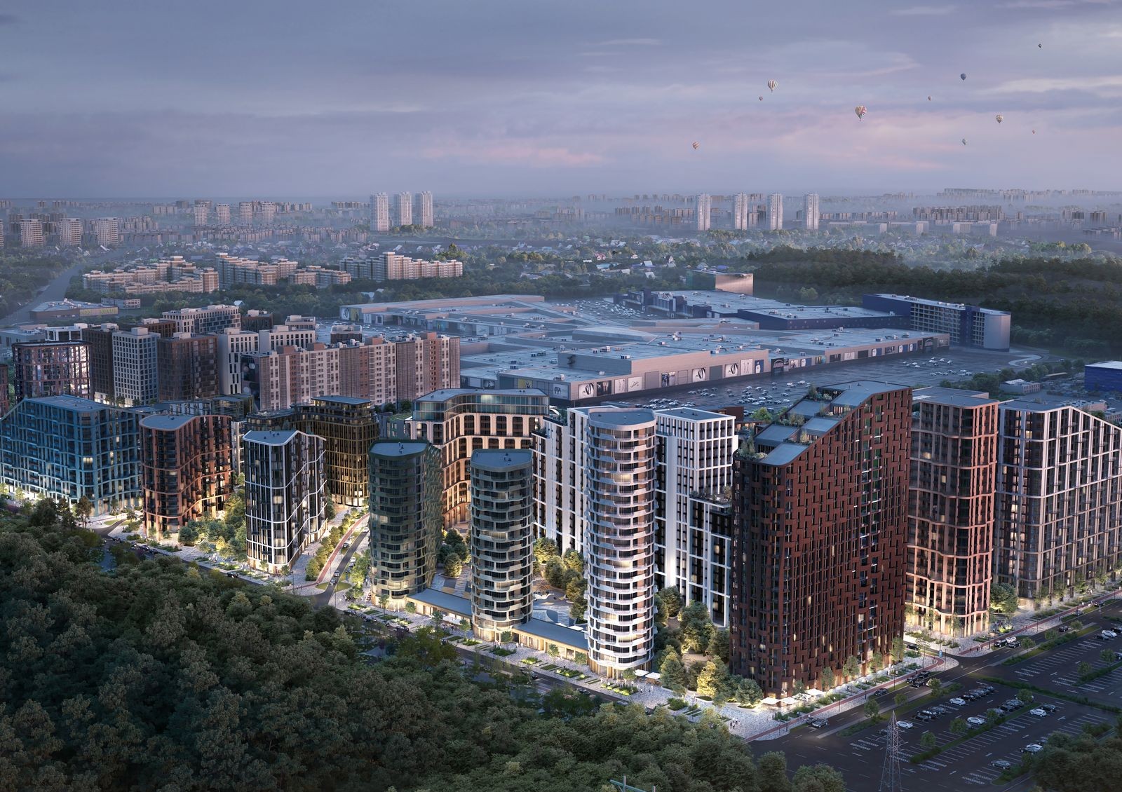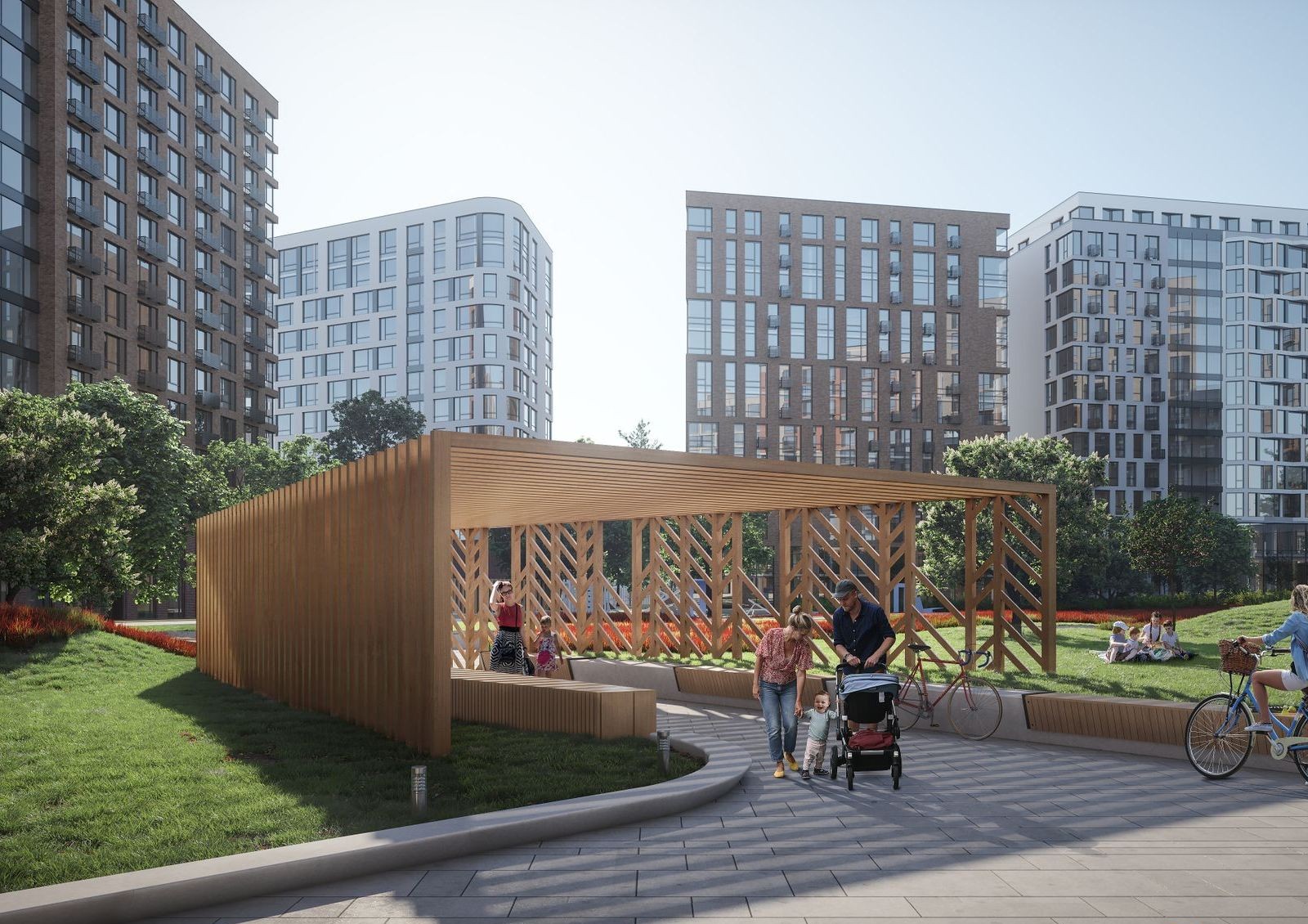 Cемь кварталов жилого комплекса класса комфорт+ расположены на территории площадью 28,5 га с собственной развитой внутренней инфраструктурой и образуют полифункциональный район в формате live-work-play, что полностью удовлетворит ежедневные потребности жителей.