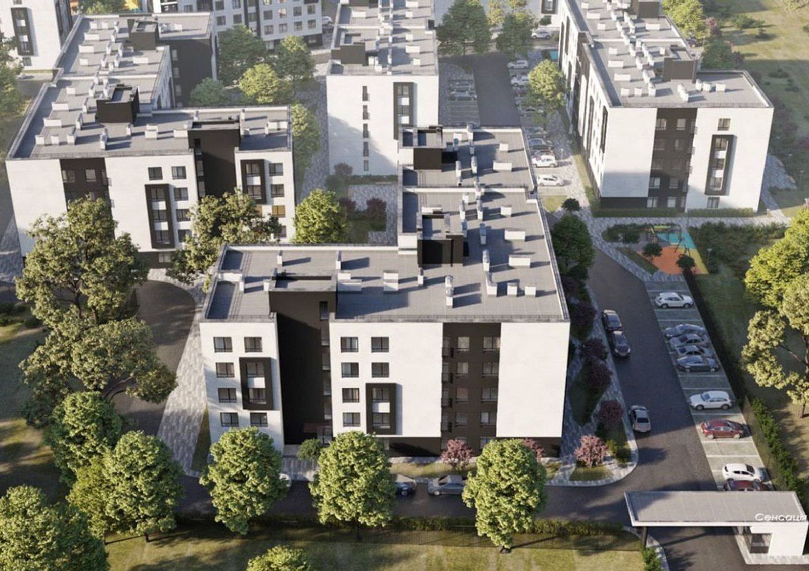 Жилой комплекс «Сенсация» несет в себе идею одновременно доступного и качественного жилья. Застройщик выбрал для данного проекта экологически чистое место возле парковой зоны, озера и вдали от пыльных автобанов. В комплексе будет восемь 5-этажных домов, благодаря чему создается атмосфера уюта, а широкое пространство между домами сделает каждую квартиру укромной и недоступной для глаз соседей. Территория ЖК будет закрытой от посторонних, чтобы войти необходим специальный ключ. Преимуществом «Сенсации» являются дворы без машин, благодаря чему дети и взрослые смогут спокойно гулять возле дома. Общественные зоны облагородят с помощью ландшафтного озеленения, удобных лавочек и беседок. Для детей установят детские площадки, для спортсменов — workout-комплексы, а чтобы расслабиться для жильцов предусмотрена сауна и BBQ-зоны.