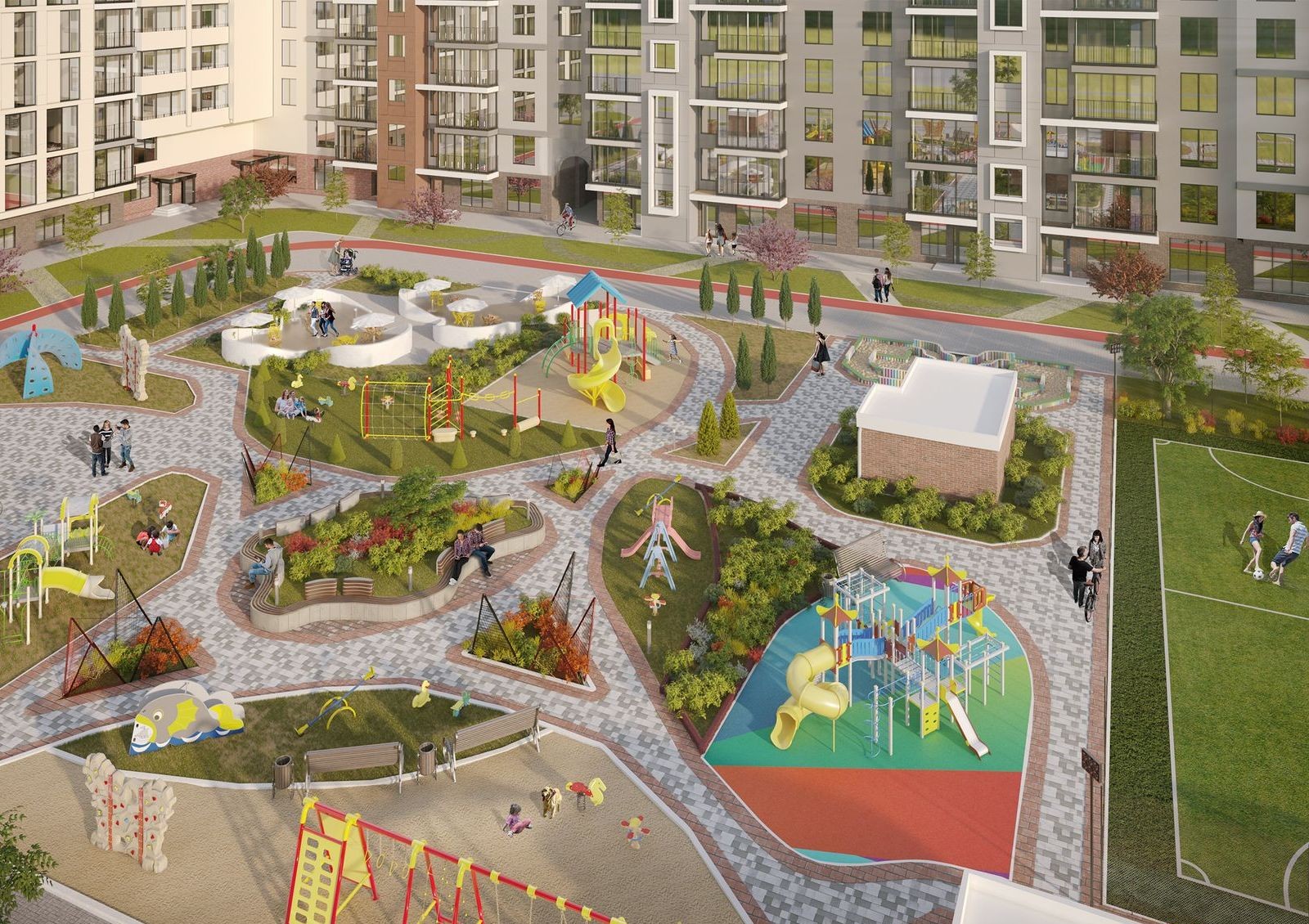 Wellspring — это жилой комплекс в центре Вишневого и в 2 километрах от Киева. Согласно проекту комплекса, дома расположены по периметру участка, благодаря чему внутренняя придомовая территория будет доступна только жильцам. Внутри обустроят детскую игровую зону, спортивные площадку, места для отдыха и беседки, барбекю зону и бювет с артезианской скважиной.