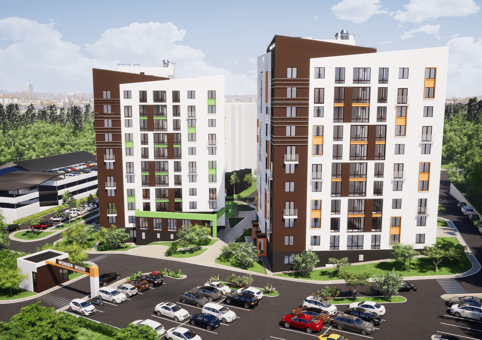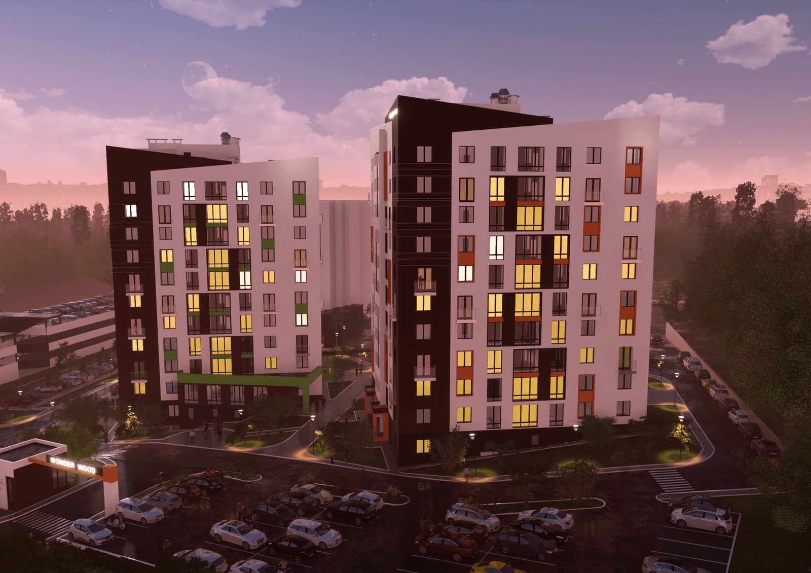 Wonderwood — это жилой комплекс в окружении лесопарковой зоны. По проекту дома комплекса создадут закрытый мини-квартал с озеленением, барбекю зоной и детскими площадками. Особенностью Wonderwood станет собственное озеро возле дома с небольшой променадой, местами для отдыха и шезлонгами у водоема.
