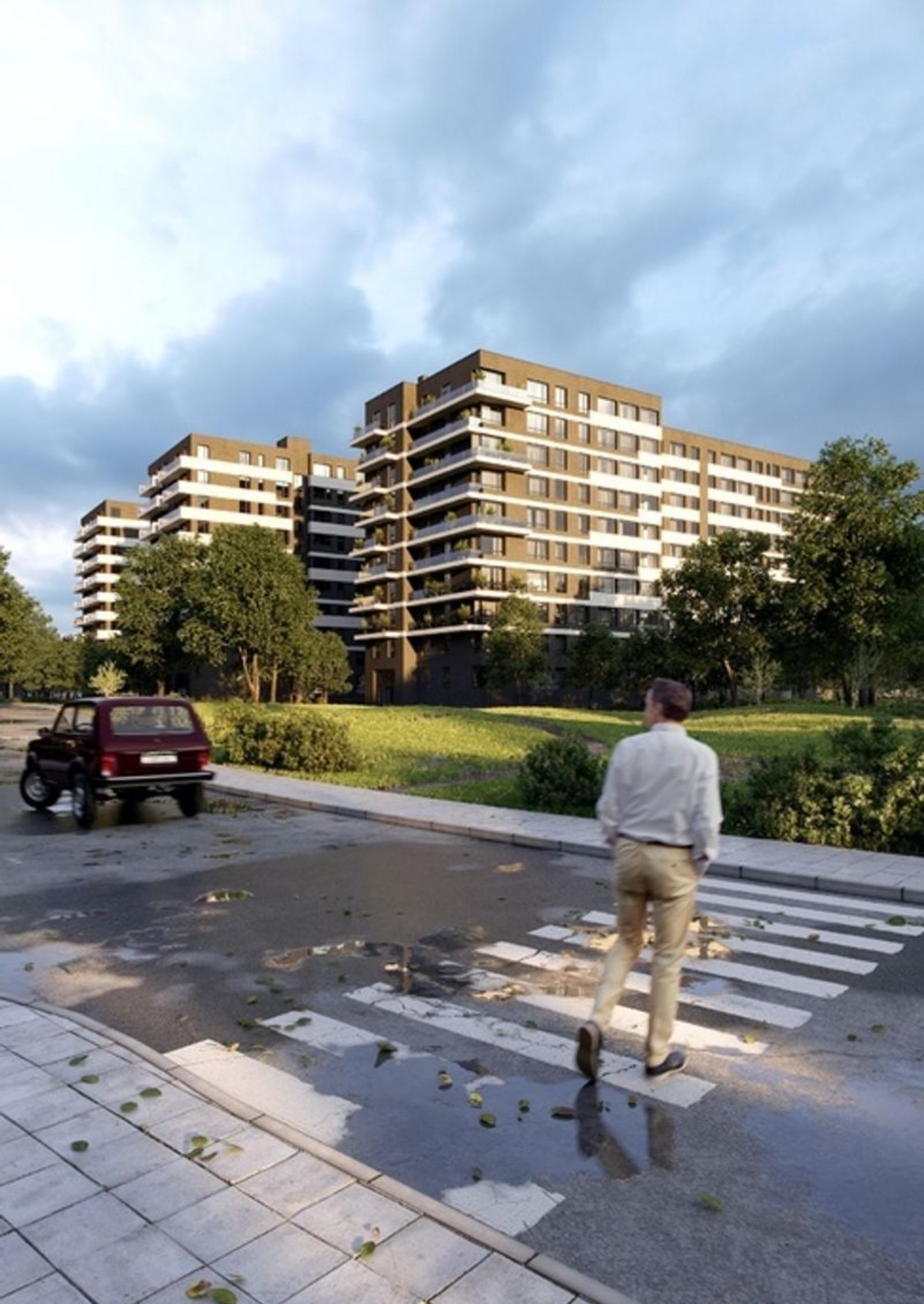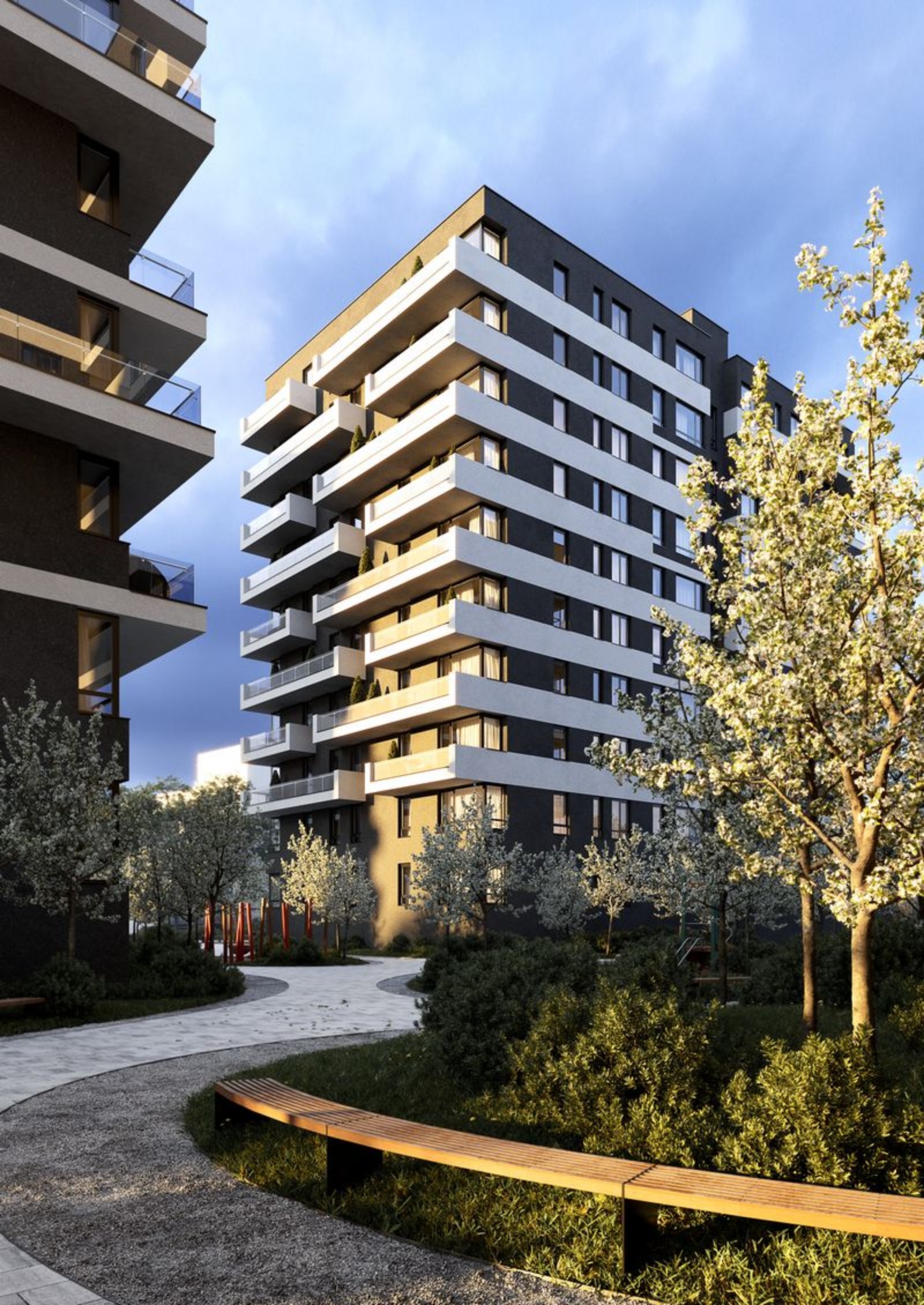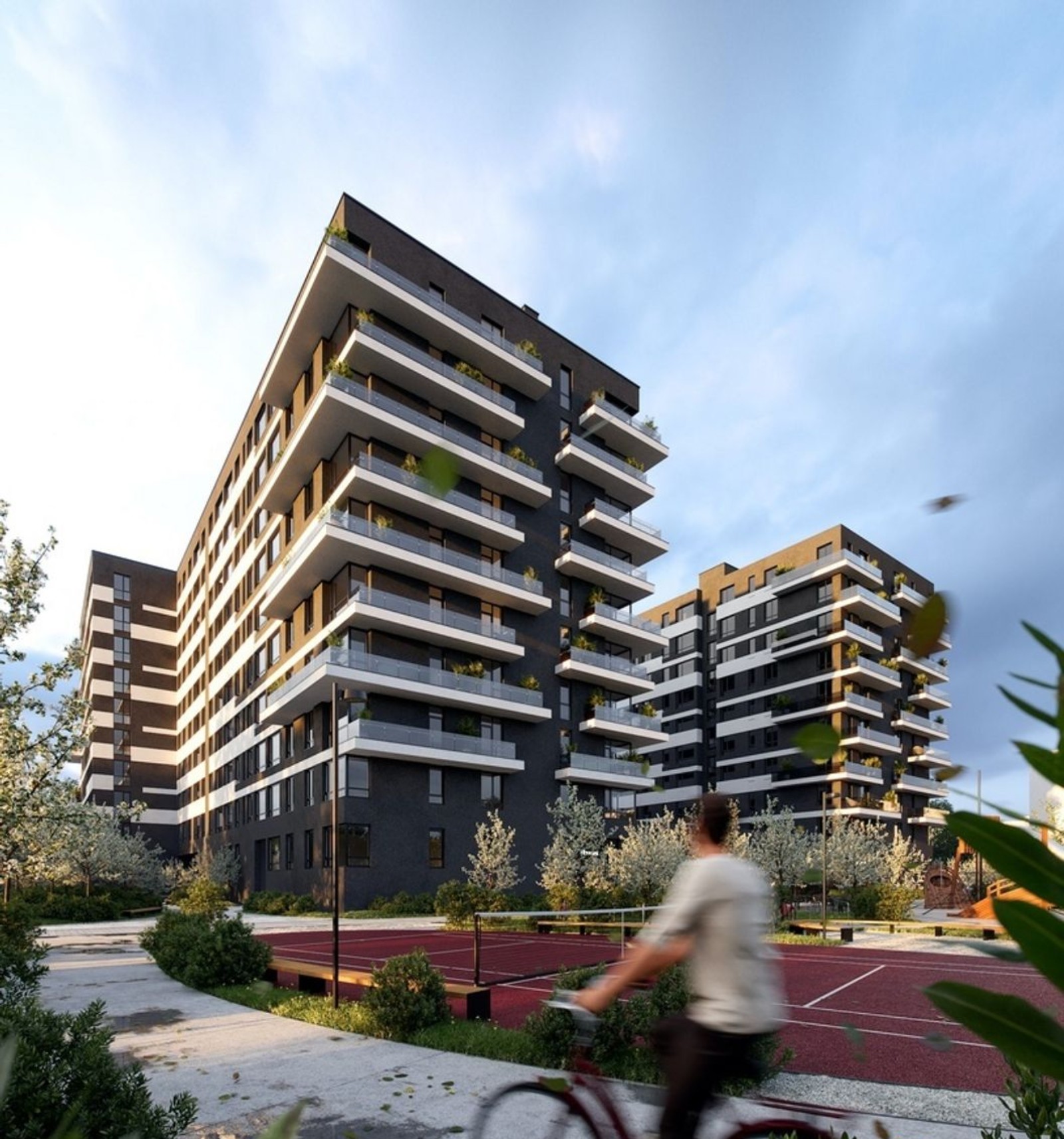 Avalon FLEX будет выделяться на фоне окружающих построек своей минималистической архитектурой: симметрия, простые, формы и сдержанная палитра оформления фасадов. В каждом доме будут открытые террасы со стеклянными ограждениями, которые придают фасадам комплекса ощущение легкости, а террасам — просторности. Бонус южной части фасадов Avalon FLEX — это вид на искусственное озеро во дворе, где также будет зона отдыха для будущих жителей.