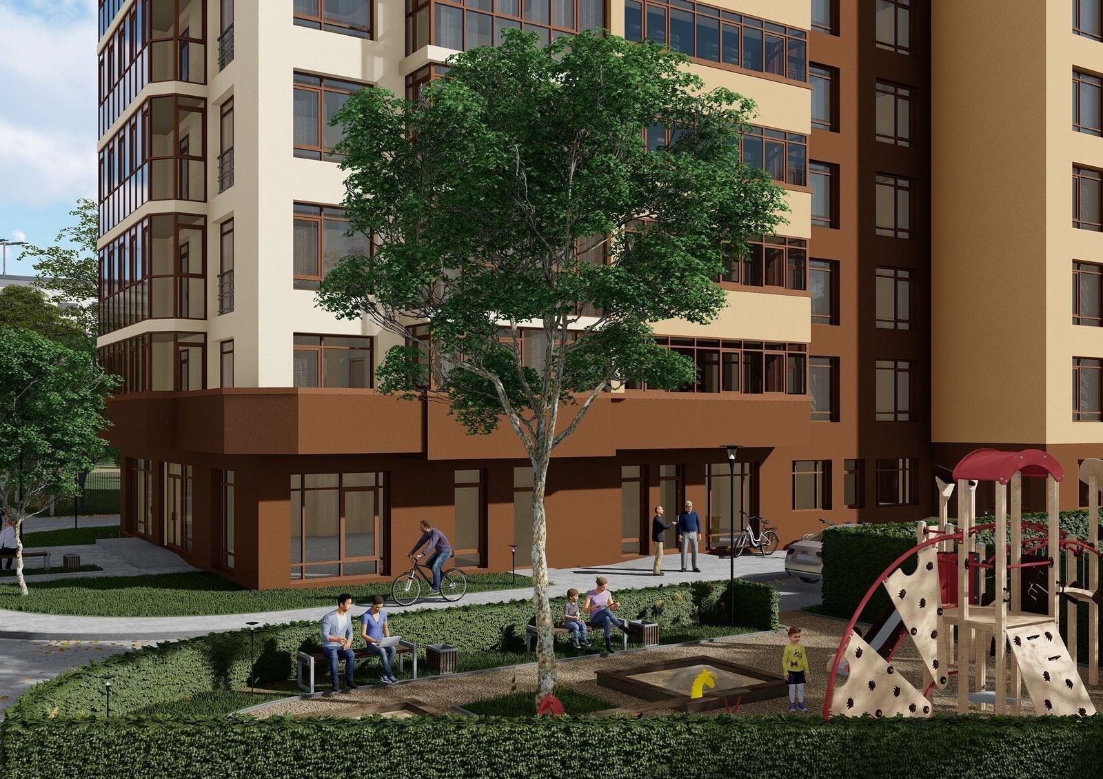 собственная инфраструктура — на первом этаже дома предусмотрены коммерческие площади, в доме откроют магазины, кофейни, салоны красоты