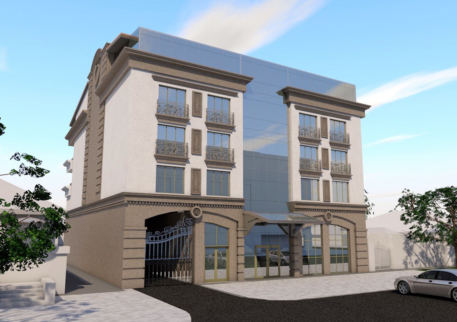 закрытый двор с круглосуточной охраной, видеонаблюдением и системой сигнализации