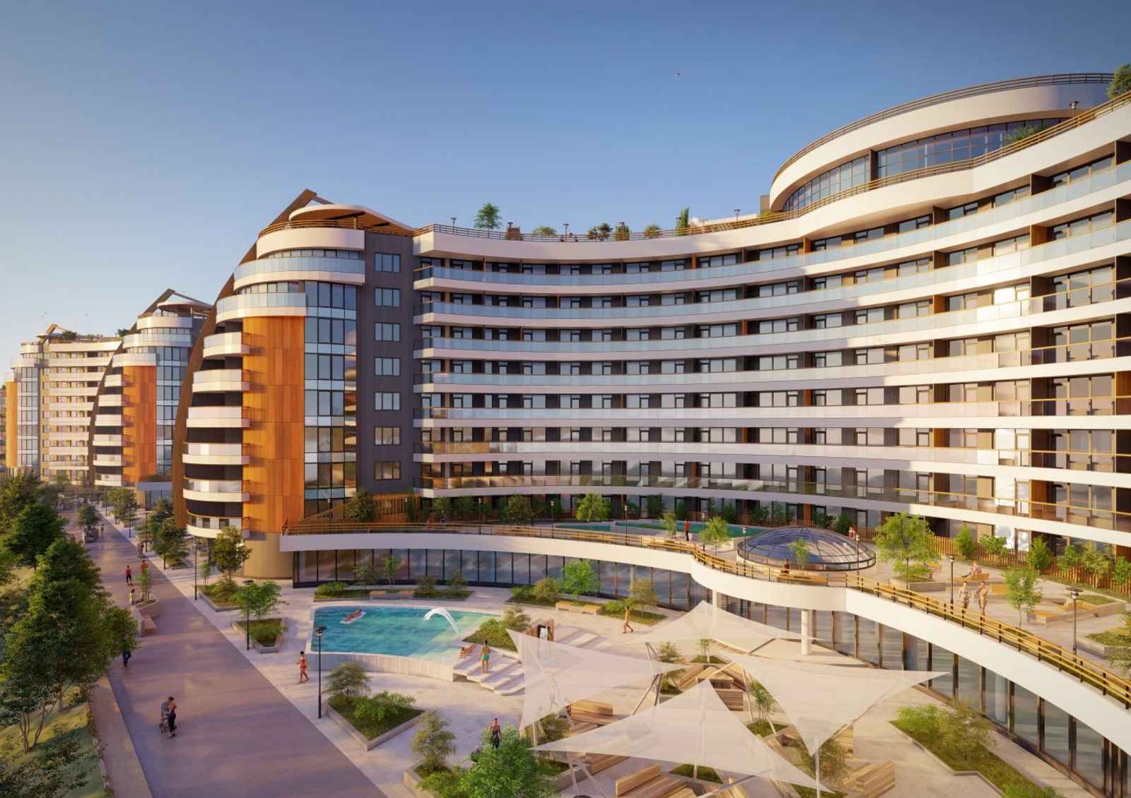 Для занятий спортом на территории будет расположен спортивно-оздоровительный комплекс с аквазоной из четырех бассейнов открытого и закрытого типа, а еще спа-салоны. Для прогулок в сезон подойду улочки старого города или песчаный берег пляжа, а в холодное время года — зимние сады под стеклянным куполом La Mer.