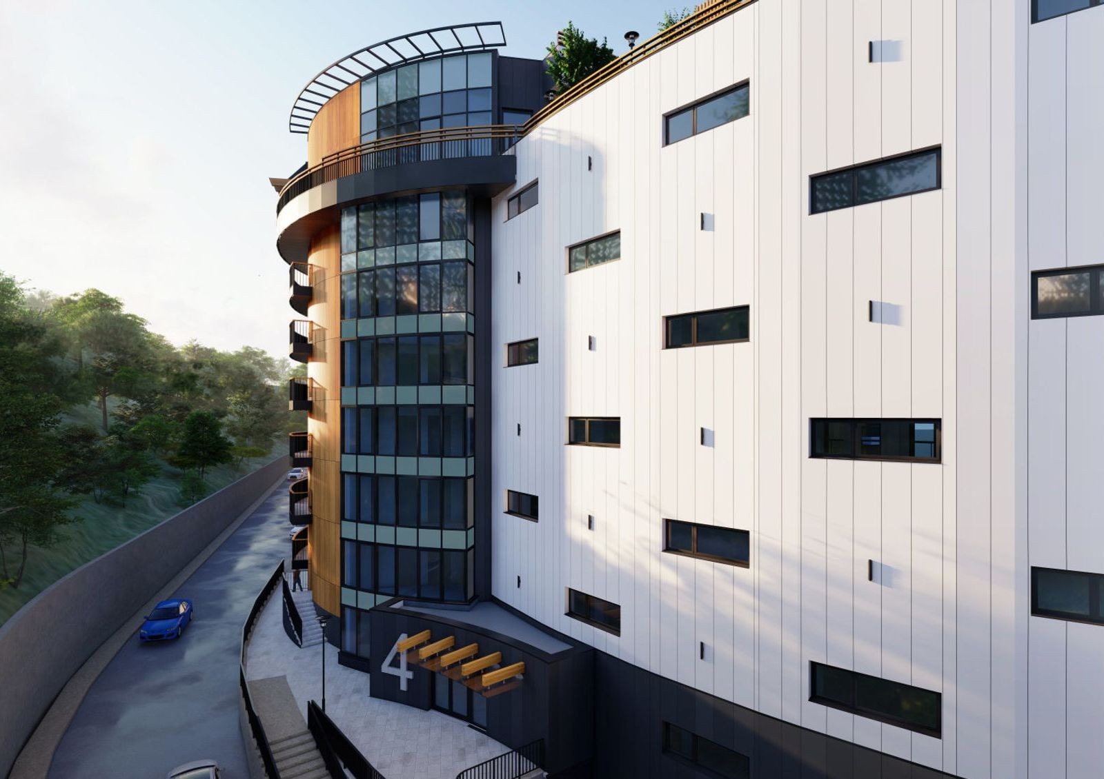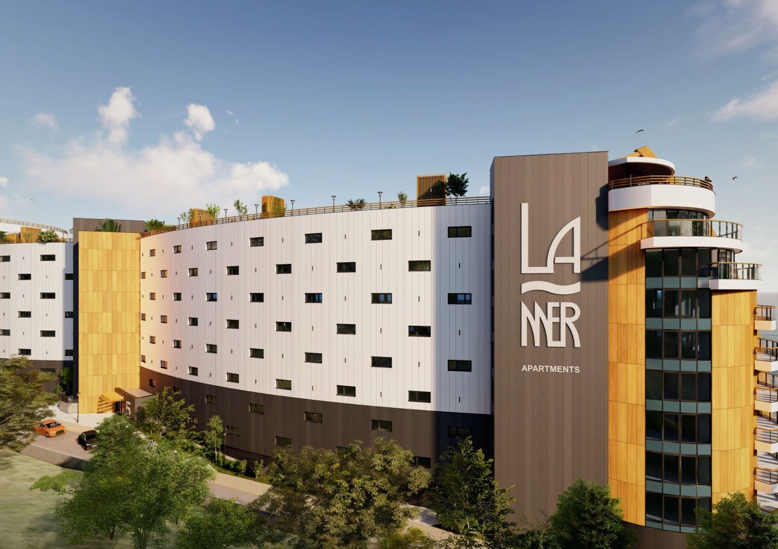 La Mer — комплекс апартаментов прямо на берегу Черного моря. Расположение на первой линии отражено в архитектуре комплекса, который похож на круизный лайнер: плавные линии фасадов, панорамные окна, открытые видовые террасы.