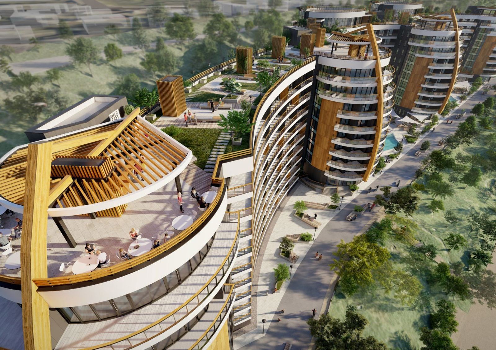 Первый уровень комплекса — это коммерческая инфраструктура: магазины, бутики, рестораны с кухнями разных стран мира и медицинские учреждения. На территории также будут открыты бары и кофейни. До ближайших супермаркетов «Сильпо» и «Таврия В» можно доехать на авто за 5 минут.