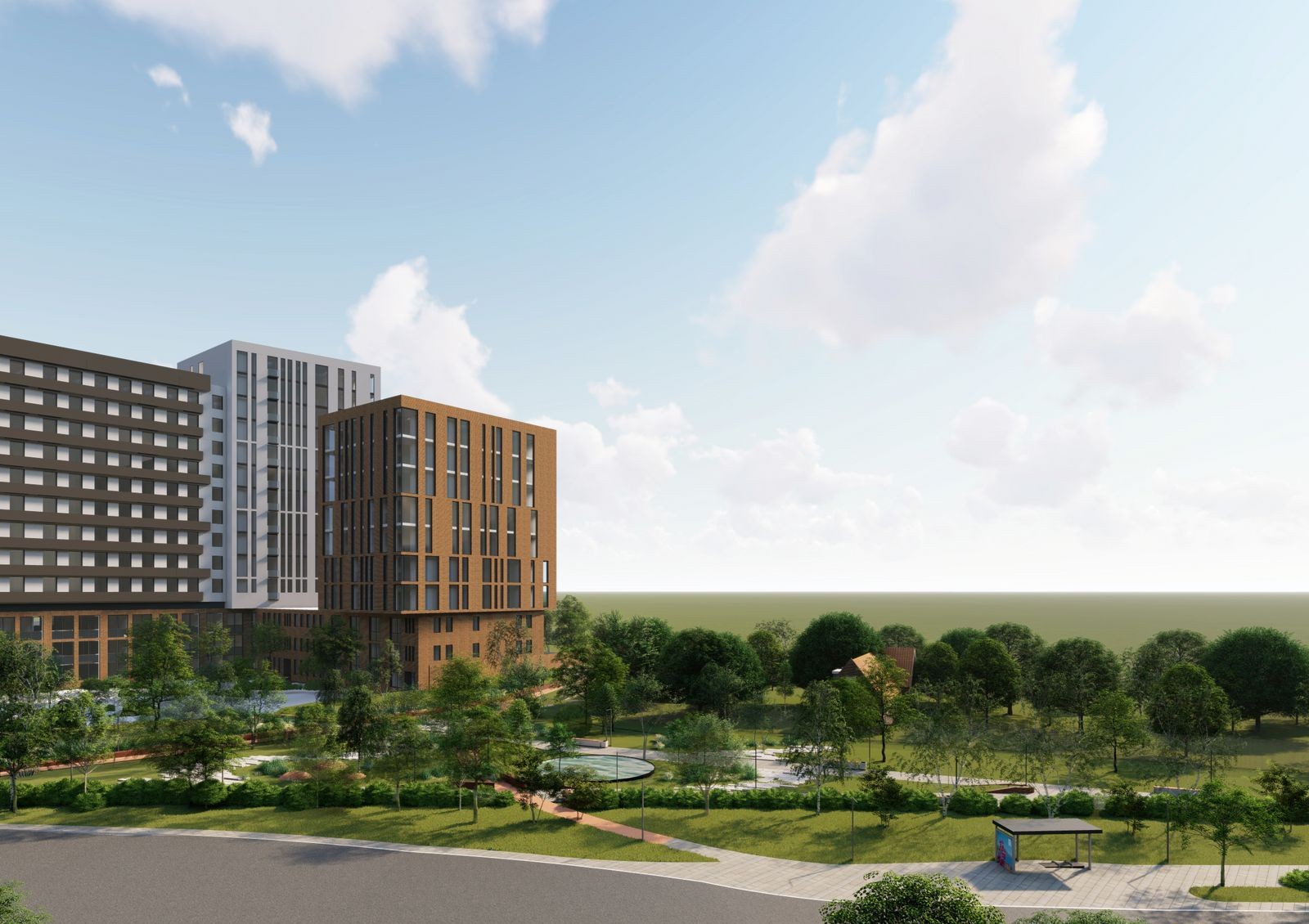 «Пространство на Раскидайловской» расположено близко к парку Дюковский сад, но по проекту возле дома будет и своя парковая зона. Внутренний двор комплекса будет недоступен для проезда автомобилей и разделен на функциональные зоны: зону тихого отдыха, детскую игровую зону, спортивную зону, зону барбекю для встреч с друзьями, зону для кафе, а в центре — амфитеатр площадью 280 квадратных метров.