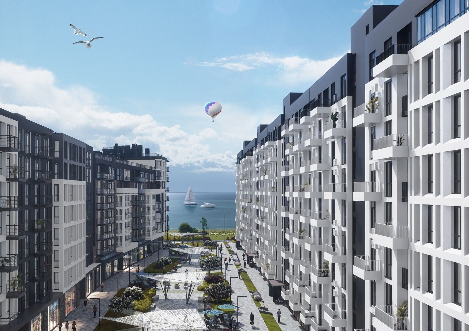 Жилой комплекс «Кокос Авеню» сочетает в себе эстетику, функциональность и комфорт. Проект состоит из четырех многосекционных домов с каскадной этажностью и многоуровневой архитектурой. Преимуществом квартир в «Кокос Авеню» является панорамный вид на Черное море благодаря окнам в пол и открытым балконам и террасам.