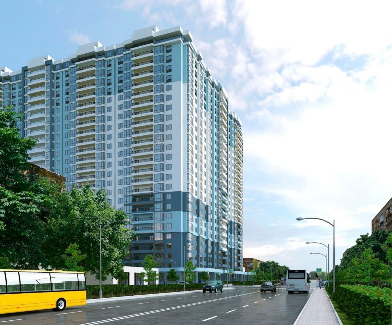 Жилой комплекс «Аврора» расположится в уютном спальном районе Одессы — Черемушки. По сравнению с рядом расположенными «хрущевками» 24-этажное здание будет выглядеть масштабно и современно. Внешне комплекс привлекает множеством панорамных окон, которые также обеспечат хорошую инсоляцию в квартирах, и контрастной отделкой фасада в синем, белом и кораллового-бежевом оттенках.