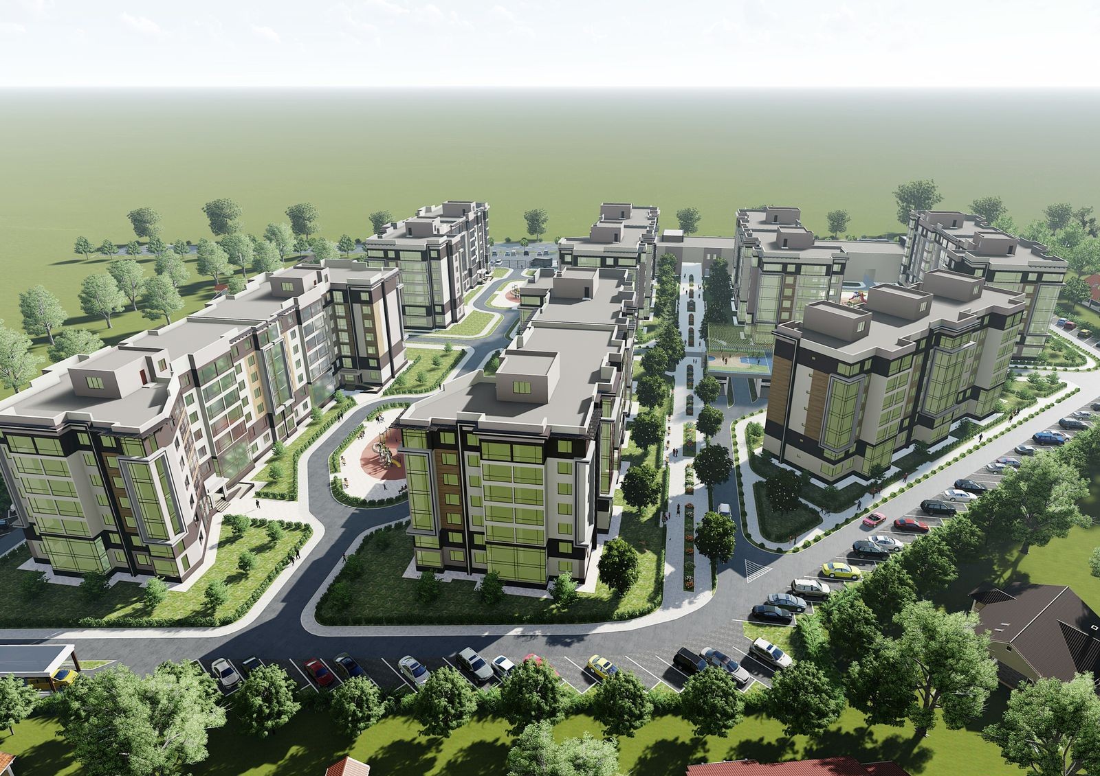 Еще одной особенностью комплекса является наличие собственной инфраструктуры. Здесь построят торгово-развлекательный центр с магазинами и кафе, детские развивающие центры и спортивные учреждения.