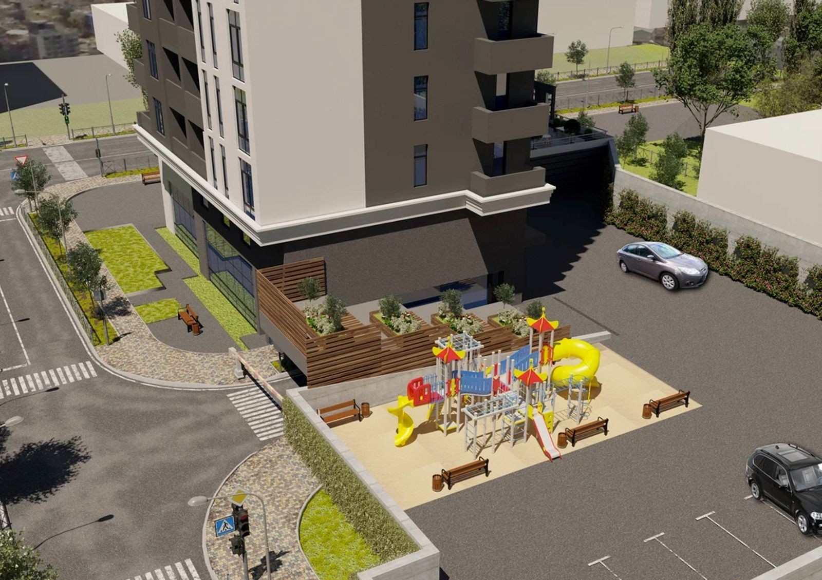 закрытая территория с концепцией «двор без авто и посторонних», круглосуточной охраной и видеонаблюдением