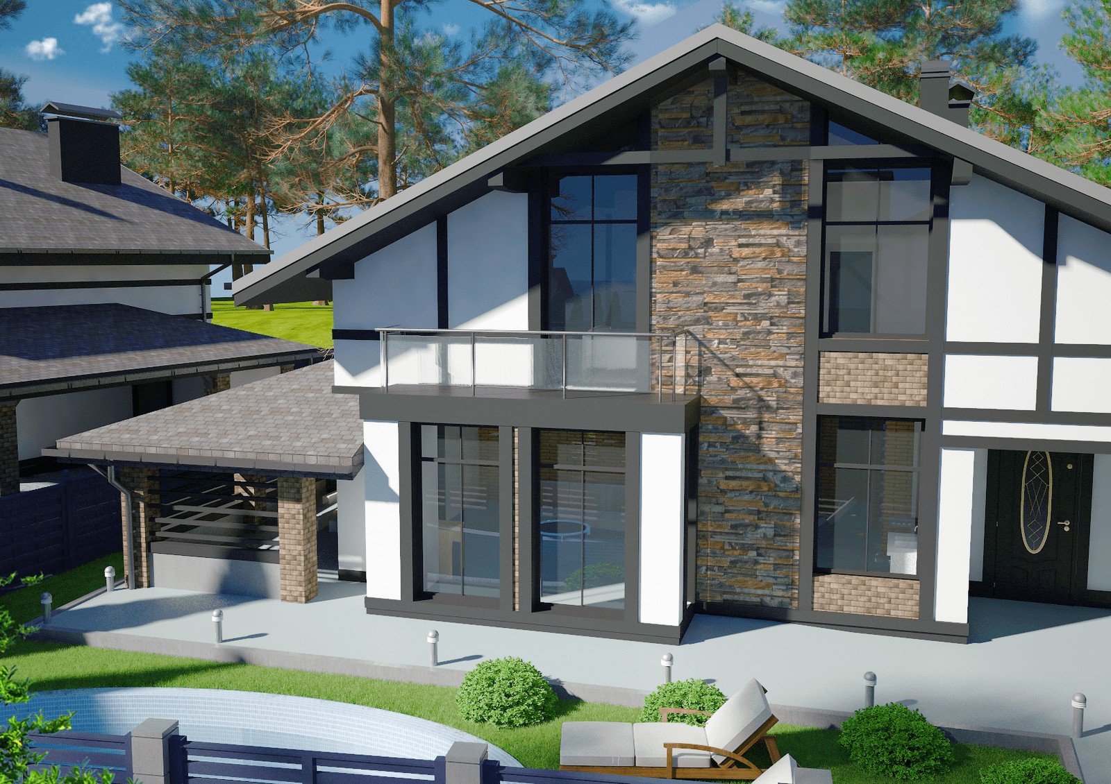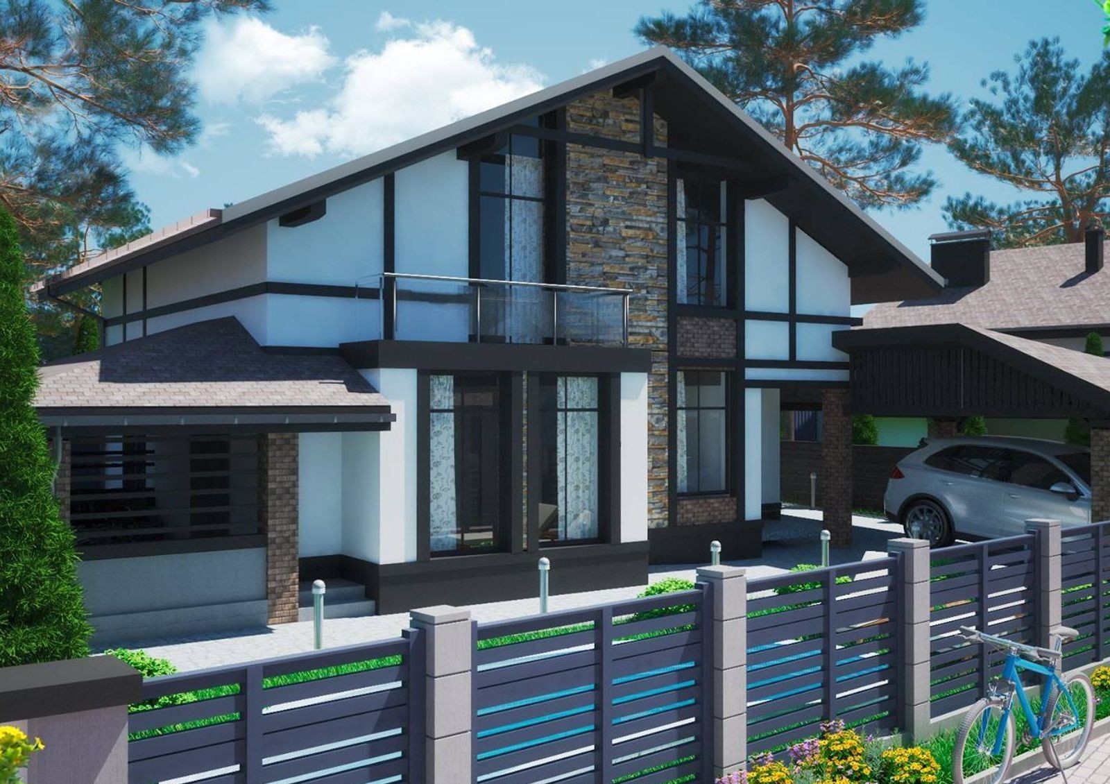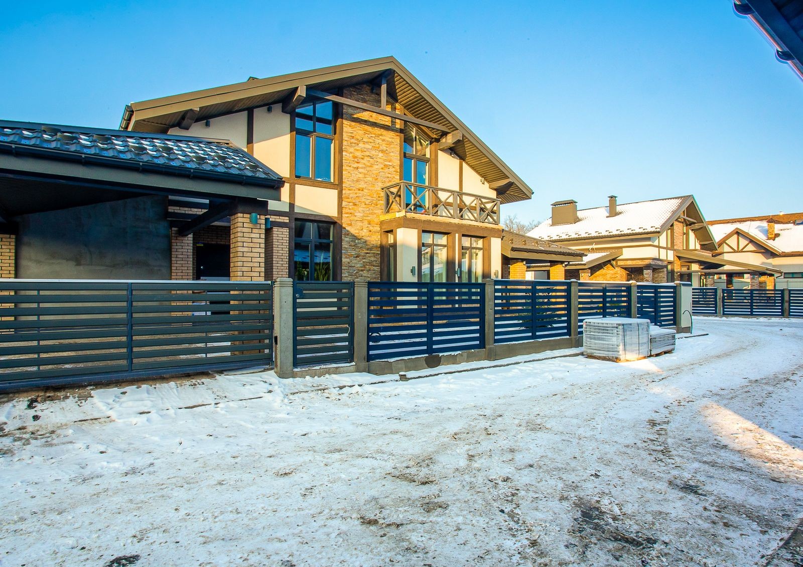 фасады отделаны декоративной штукатуркой и клинкерной плиткой