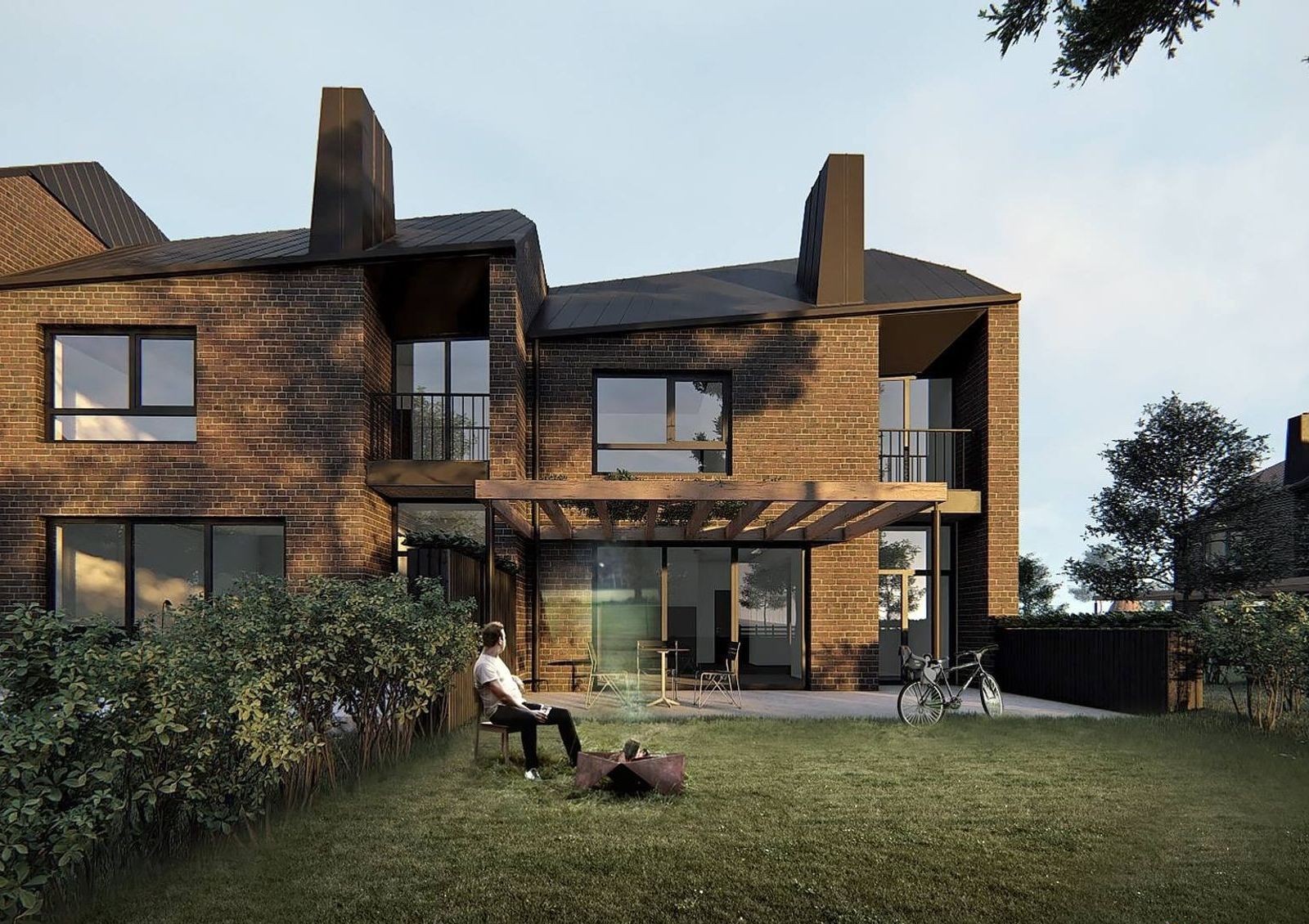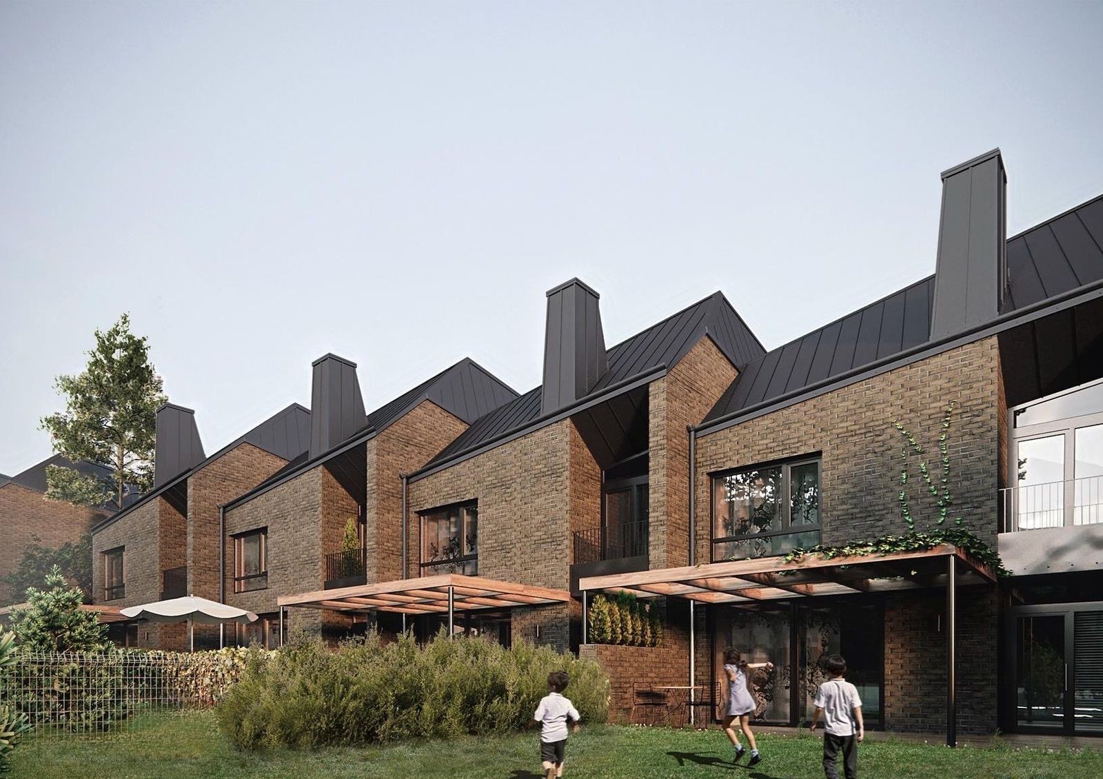 Внешний фасад таунхаусов выполнен из клинкерного кирпича, что обеспечивает эстетичный и современный вид. Застройщик спроектировал эргономичные планировки — все дома типовые площадью 155,8 кв. м. с просторной кухней-гостиной, тремя спальнями, гардеробными, гаражным боксом и террасой. На собственном земельном участке можно будет обустроить лаунж-зону с барбекю и бассейном или установить детскую площадку.