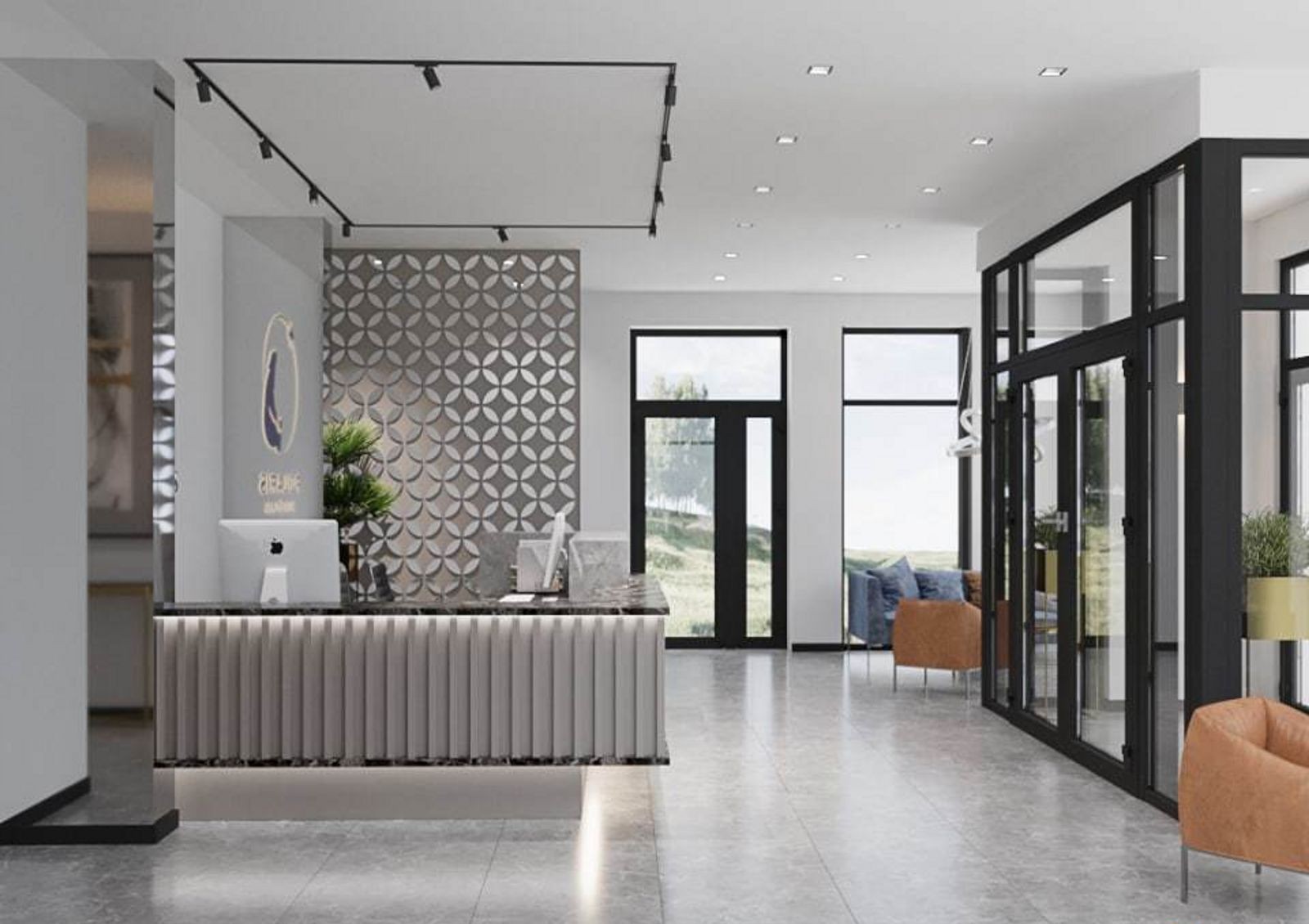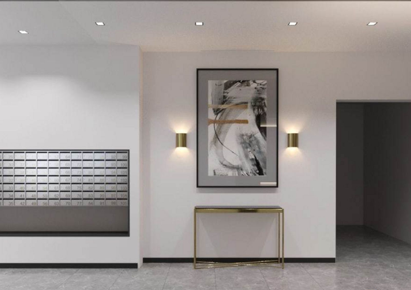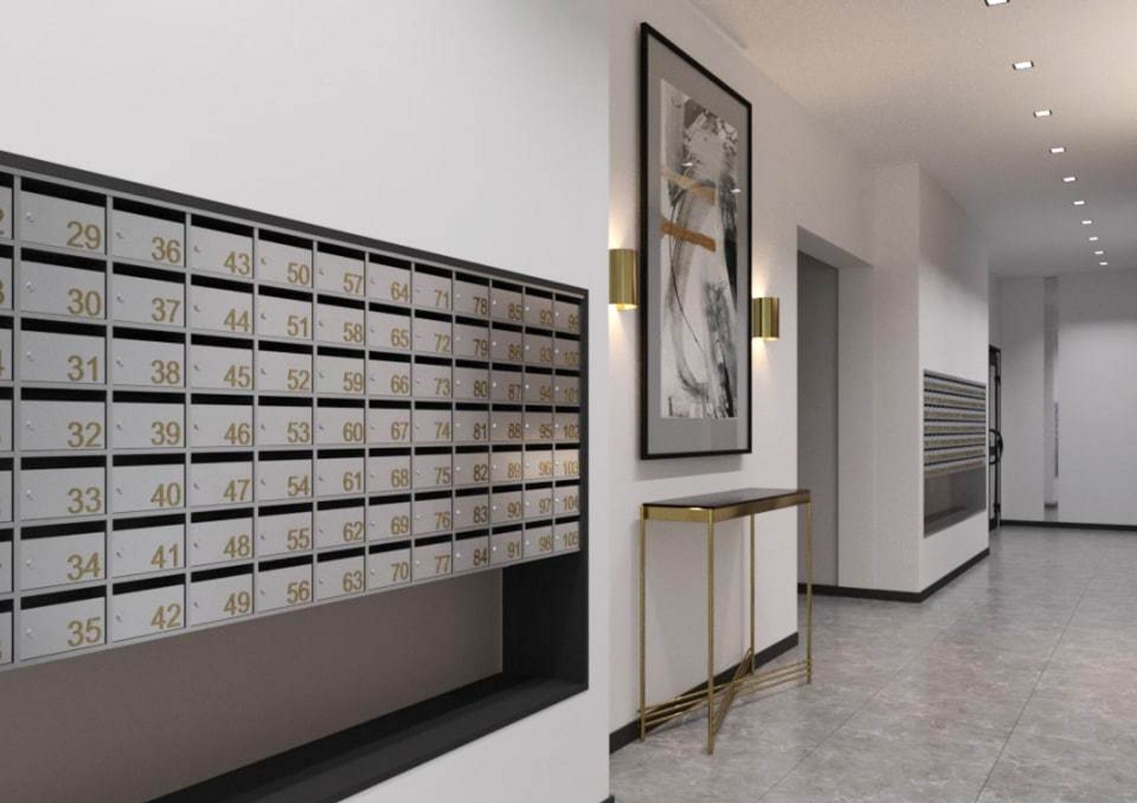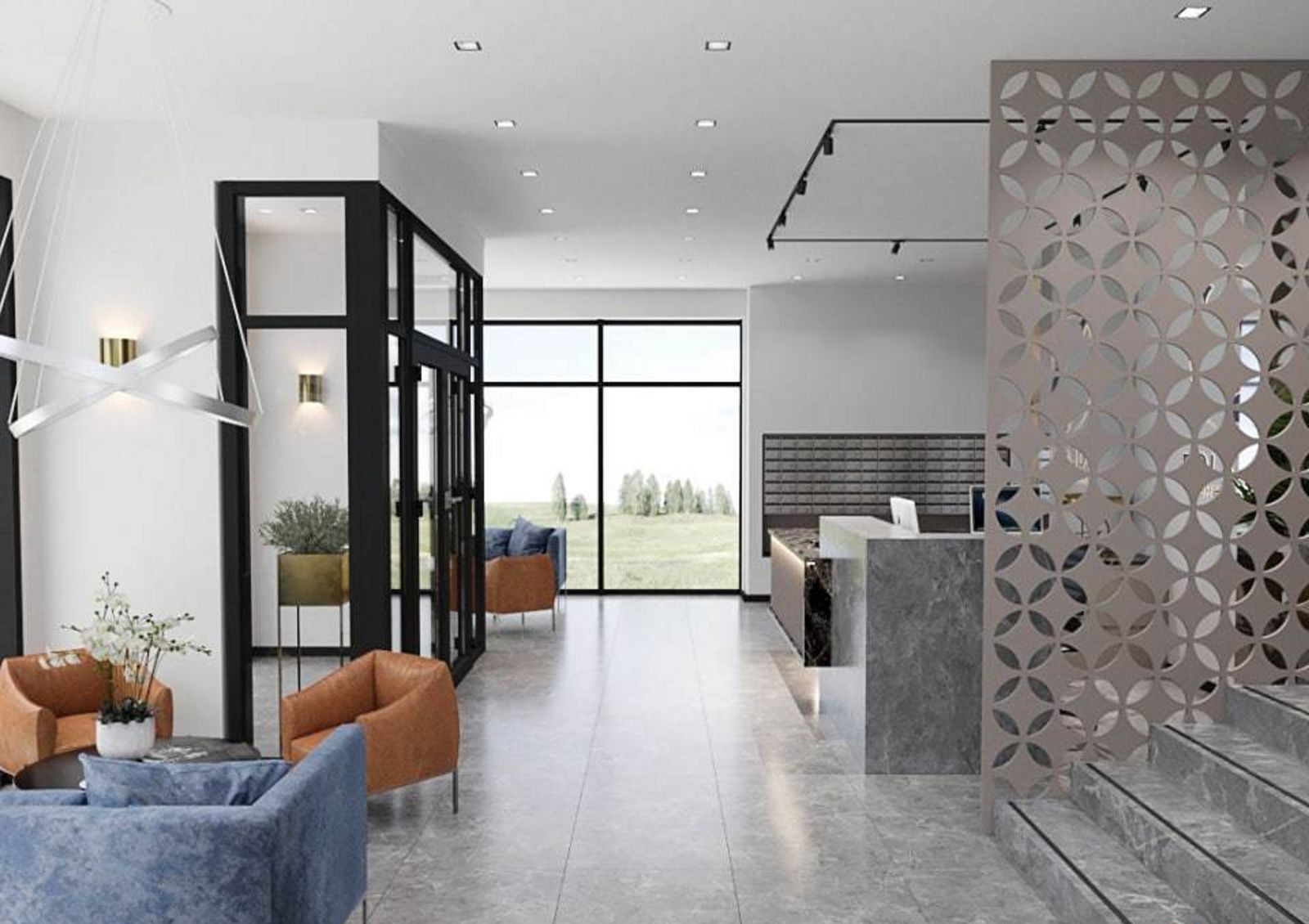 лобби на первом этаже и дизайнерская отделка внутренних общих пространств — лестничных маршей и холлов