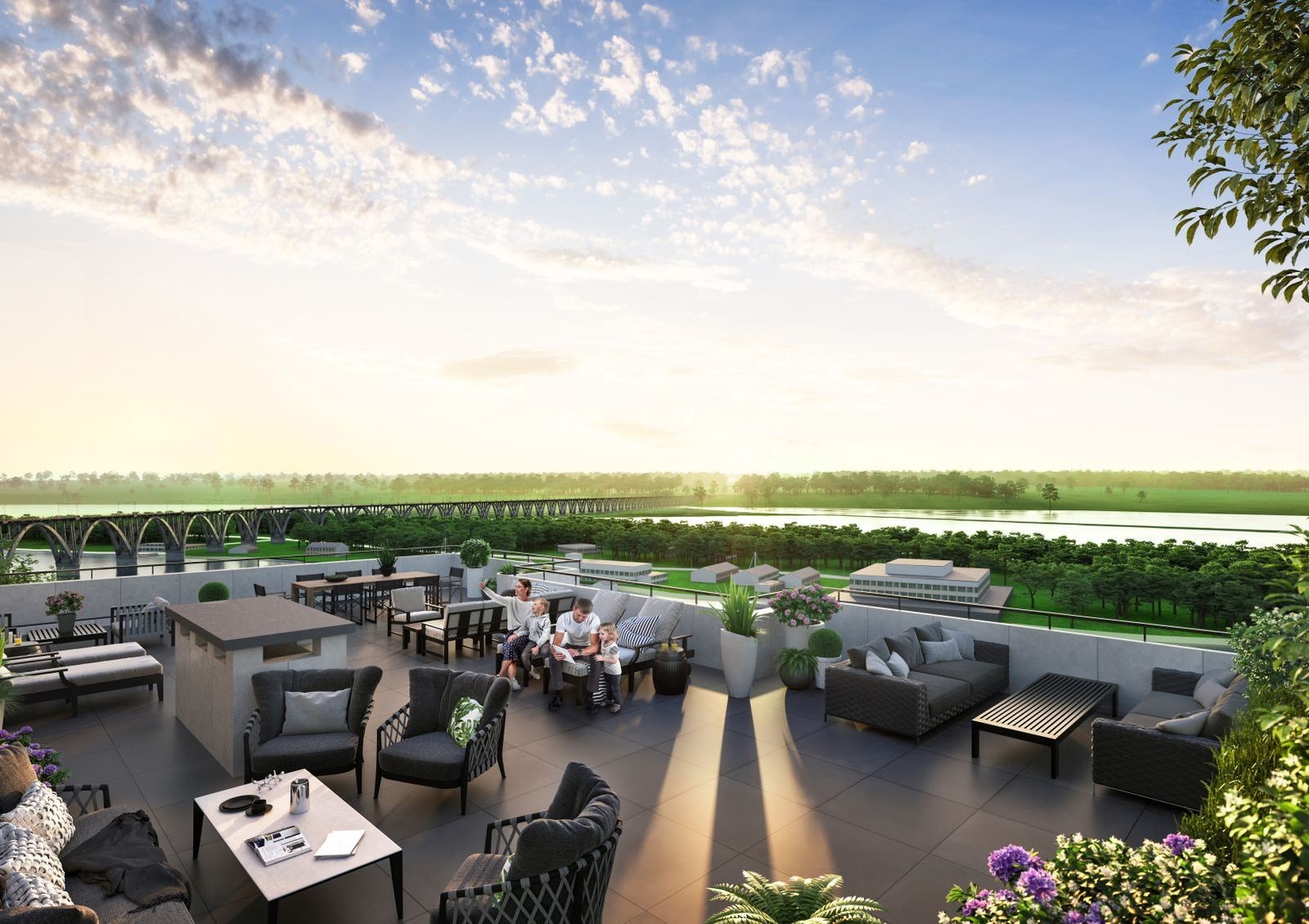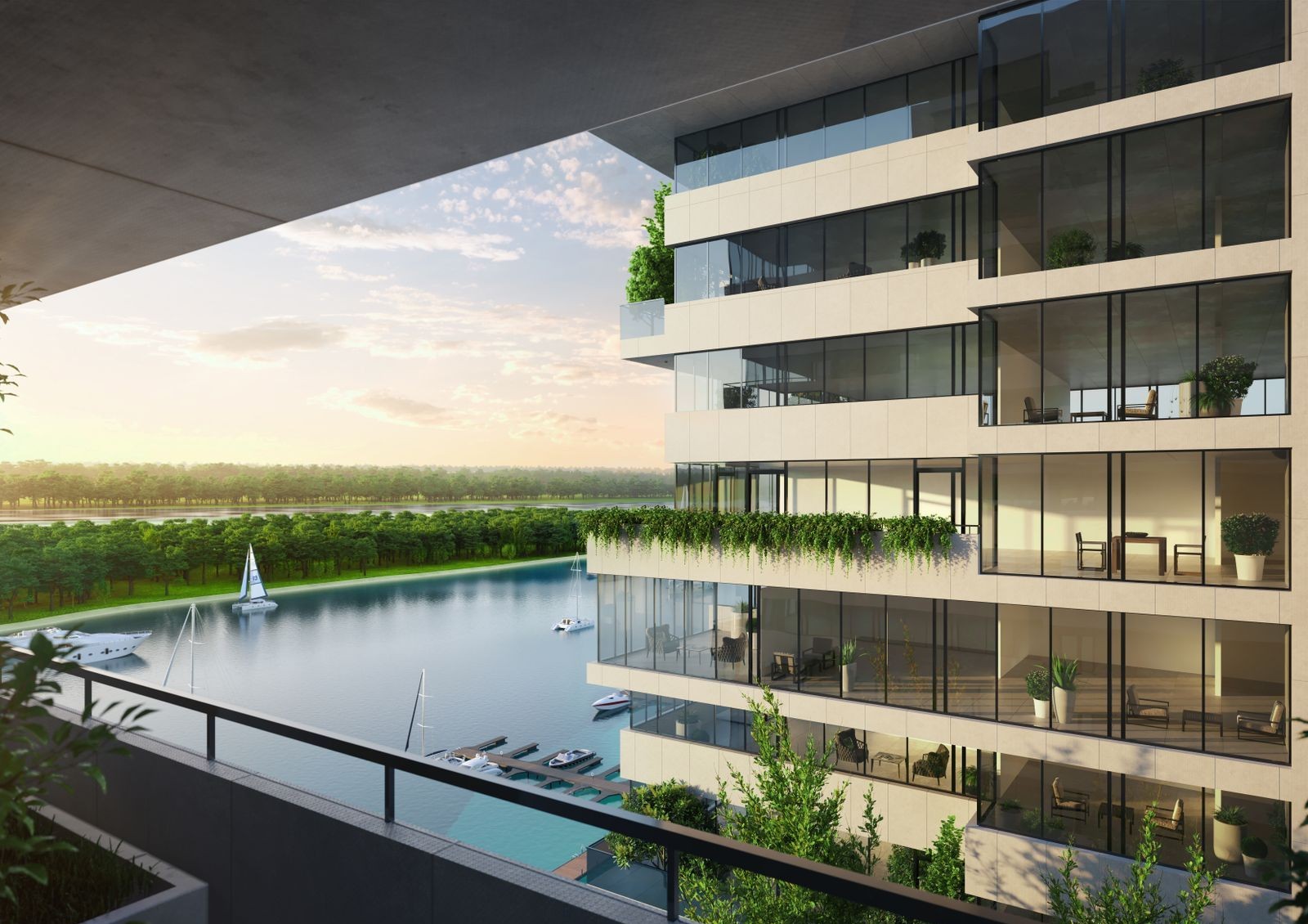 У Port City будет открыта парковая зона с озеленением на берегу реки, открытая для прогулок горожан и гостей города.