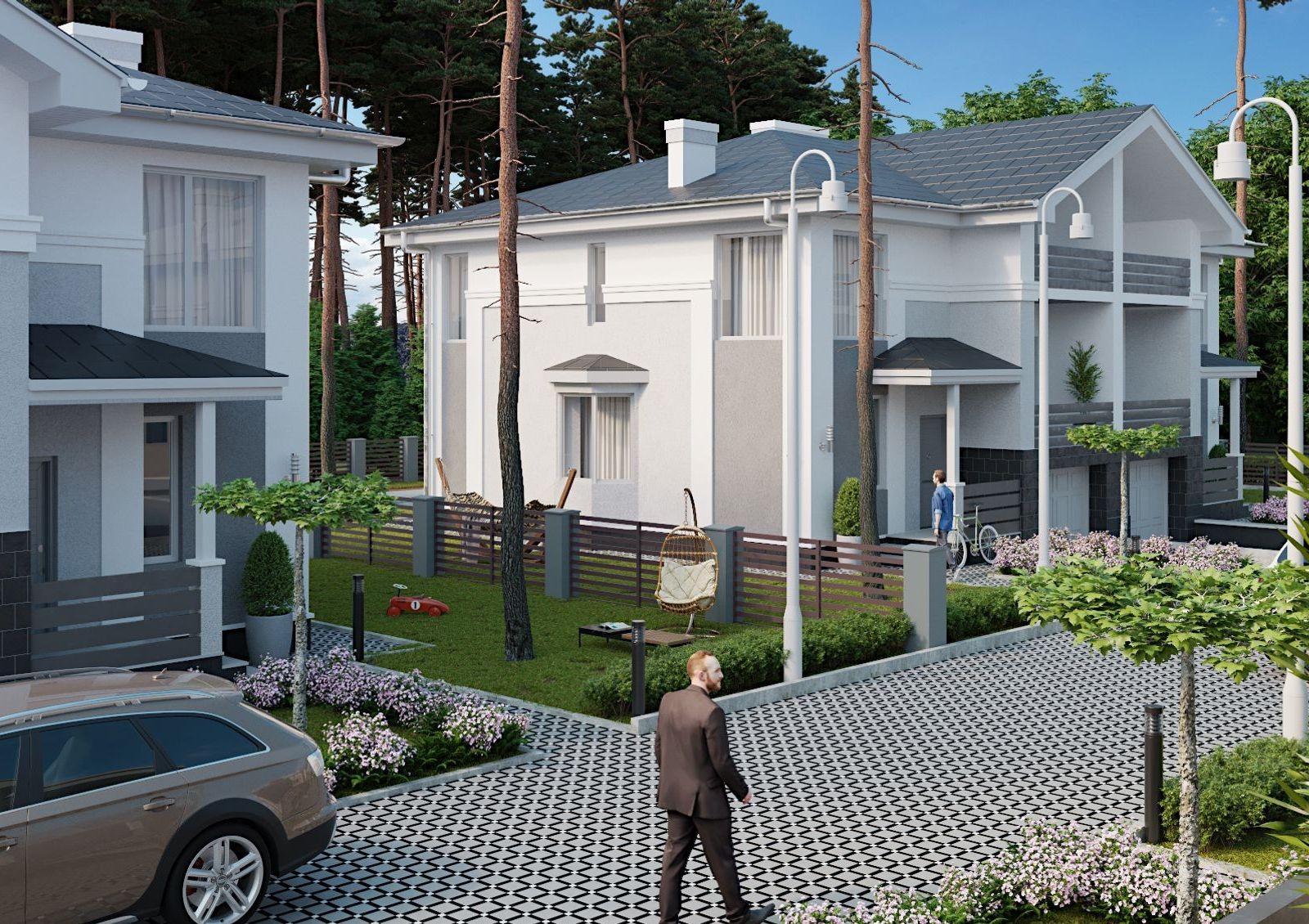 NEW Cottage Residence 5 — новая очередь двухэтажных коттеджей с собственными приусадебными участками в Гатном, в стороне от шумных магистралей и промышленных предприятий. В этом месте можно устраивать пикники на свежем воздухе, ловить рыбу, собирать грибы и ягоды: рядом с дуплексами парк, лес и озеро. Устроить уютный уголок для отдыха с бассейном и барбекю можно и рядом с домом. В каждом коттедже есть встроенный гараж и паркоместо рядом с домом.